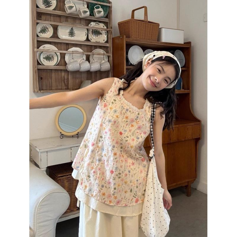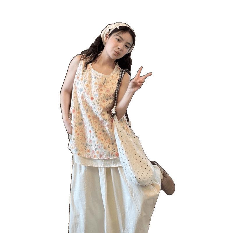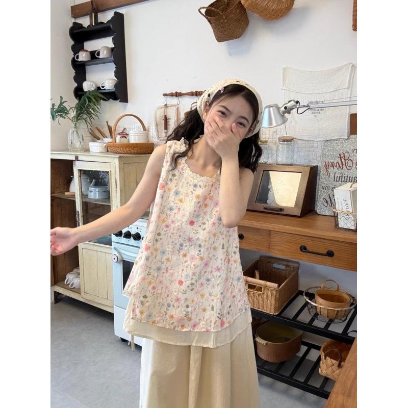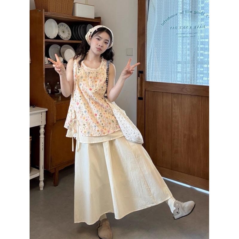 Traje de dos piezas de chaleco bordado floral dulce y fresco y falda de talle alto 2025 Verano Nueva Moda