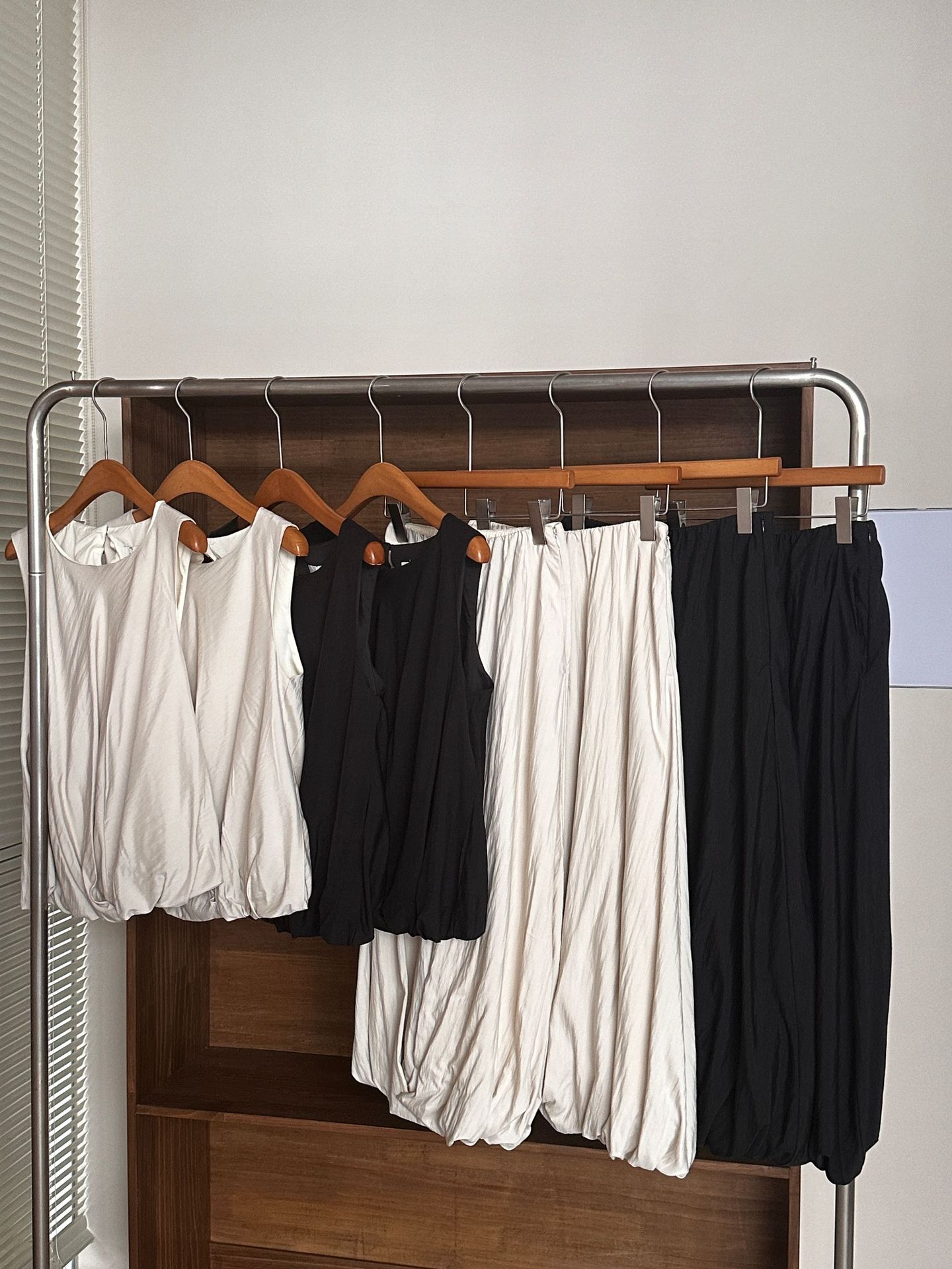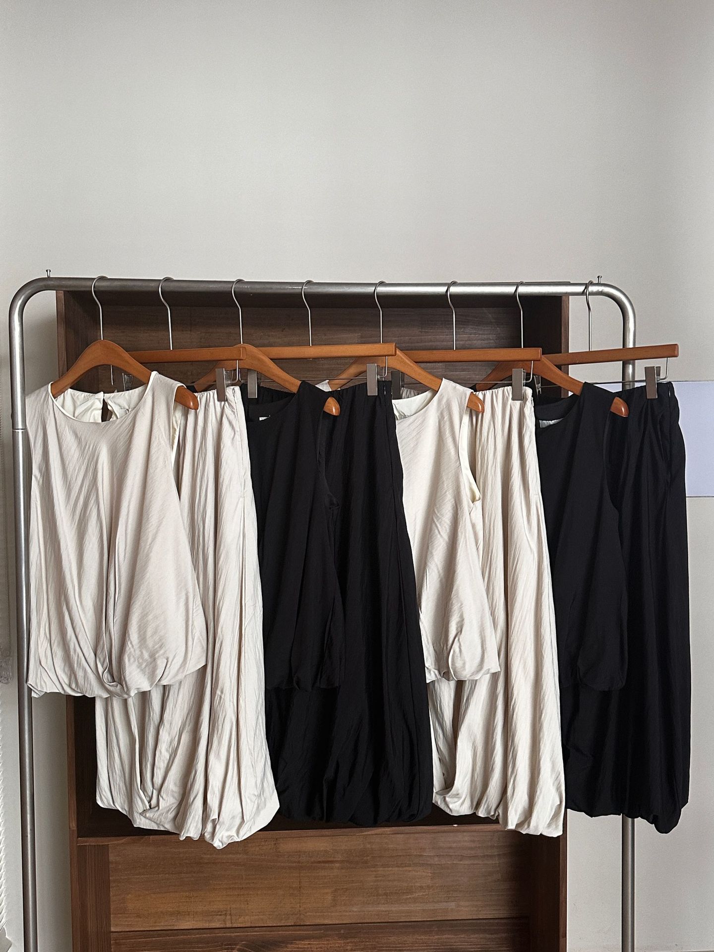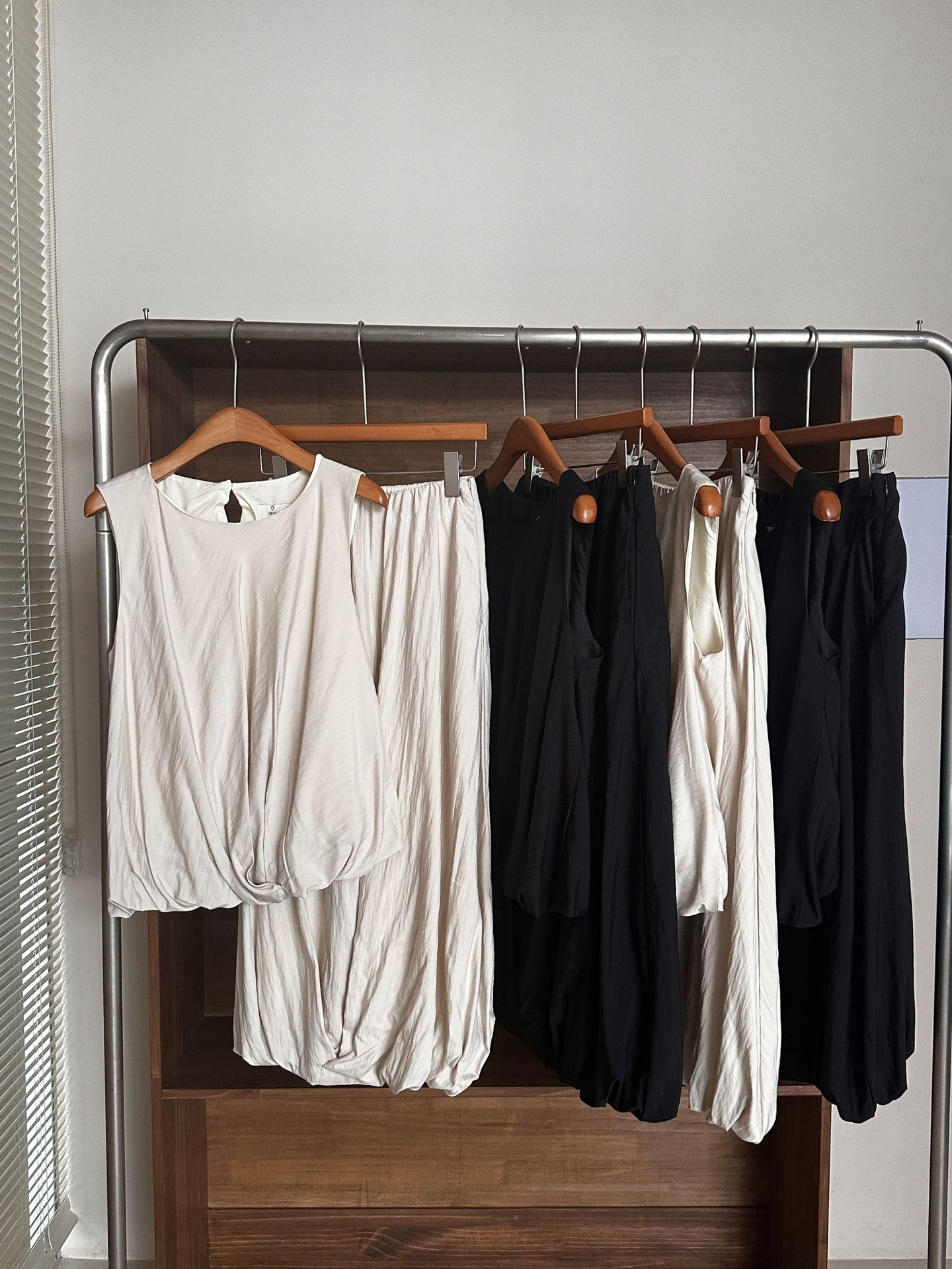 White-vest, Black-vest, White-skirt, Black-skirt, White suit (white vest + white skirt), Black suit (black vest + black skirt)