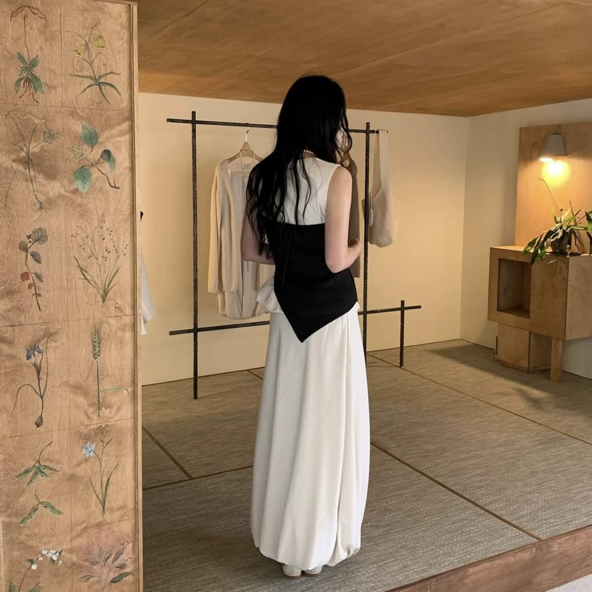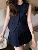 En Stock Traje de Falda Coreano de Color Puro 2025 Verano para Mujer Chaleco sin Mangas Falda Plisada Dos Piezas Conjunto Mo*A