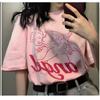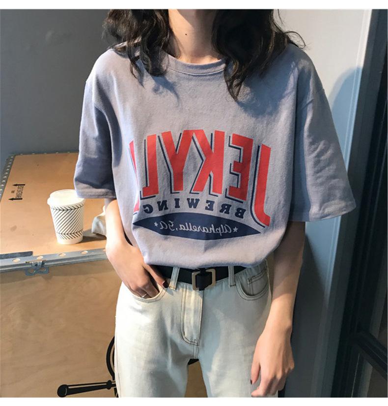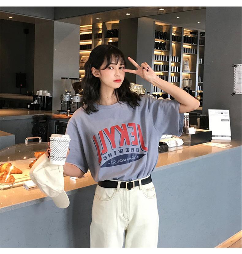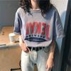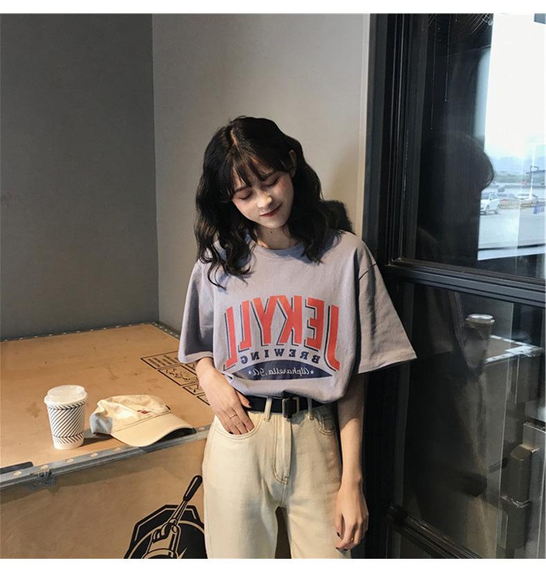 2025 Verano Nuevo Estilo Coreano Camiseta de Manga Corta Holgada de Talla Grande con Estampado de Letras para Mujer Tops de Estudiante Dropshipping