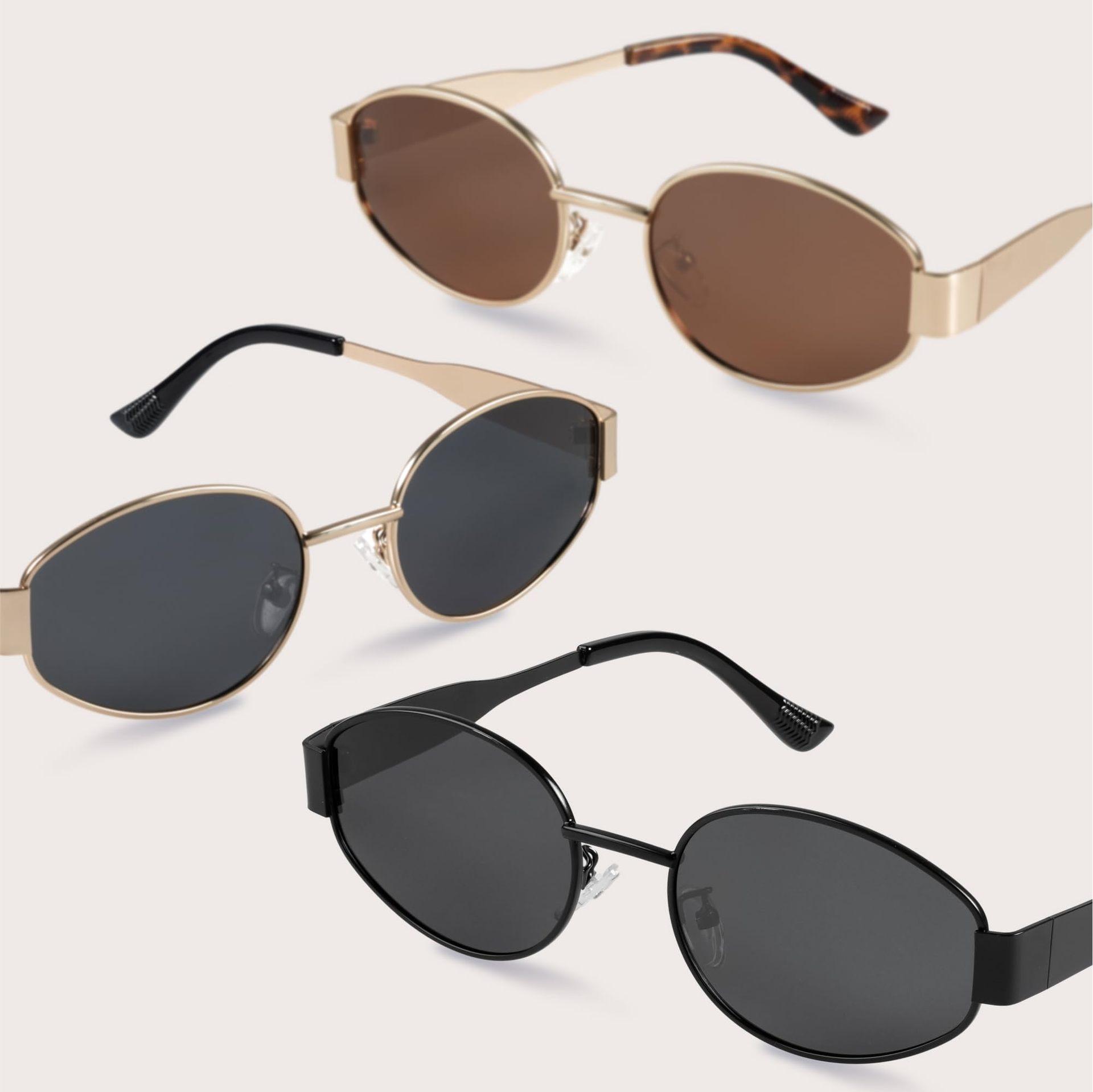 Lentes de Sol Ovalados Vintage para Hombre y Mujer Moda Dorado Lentes de Sol Modernos Metal Protector Solar Clásicos Lentes de Sol