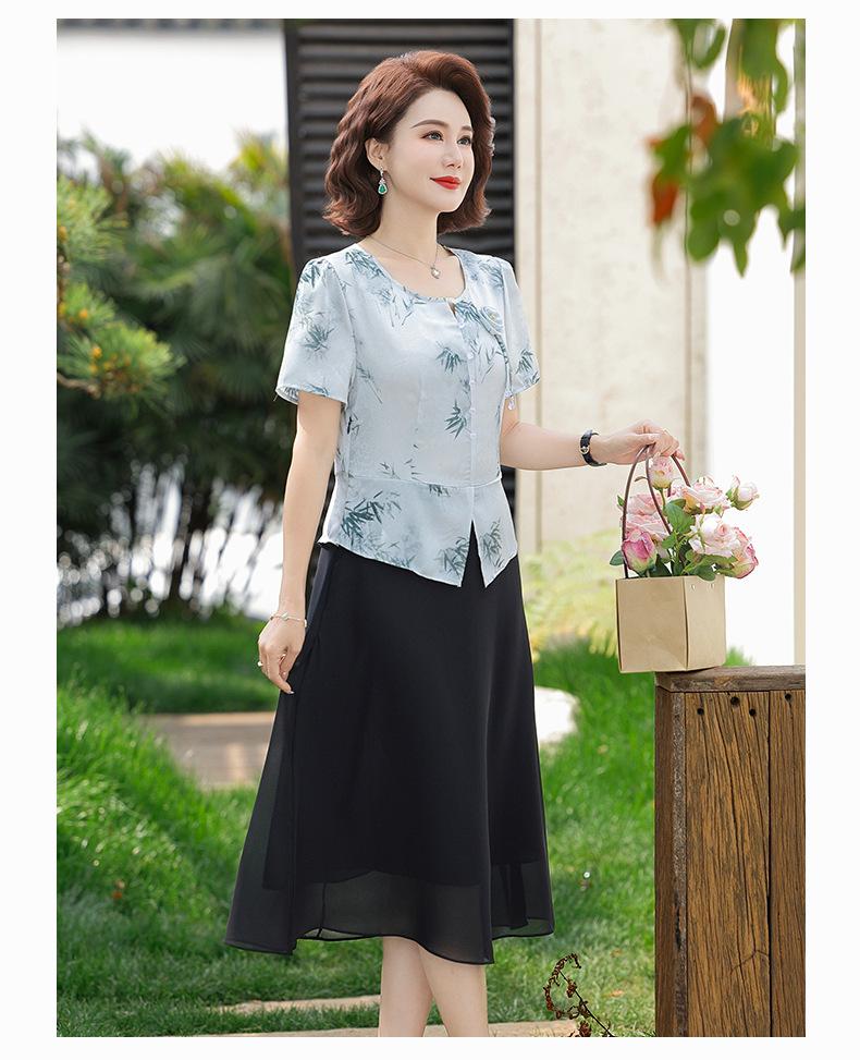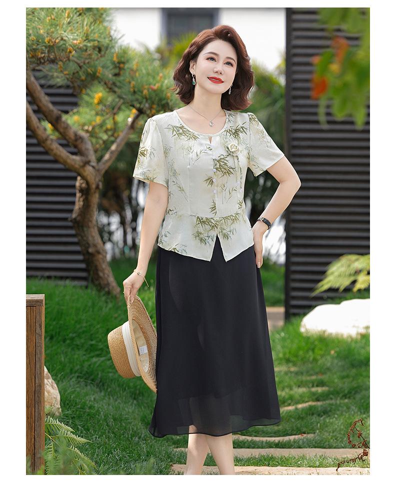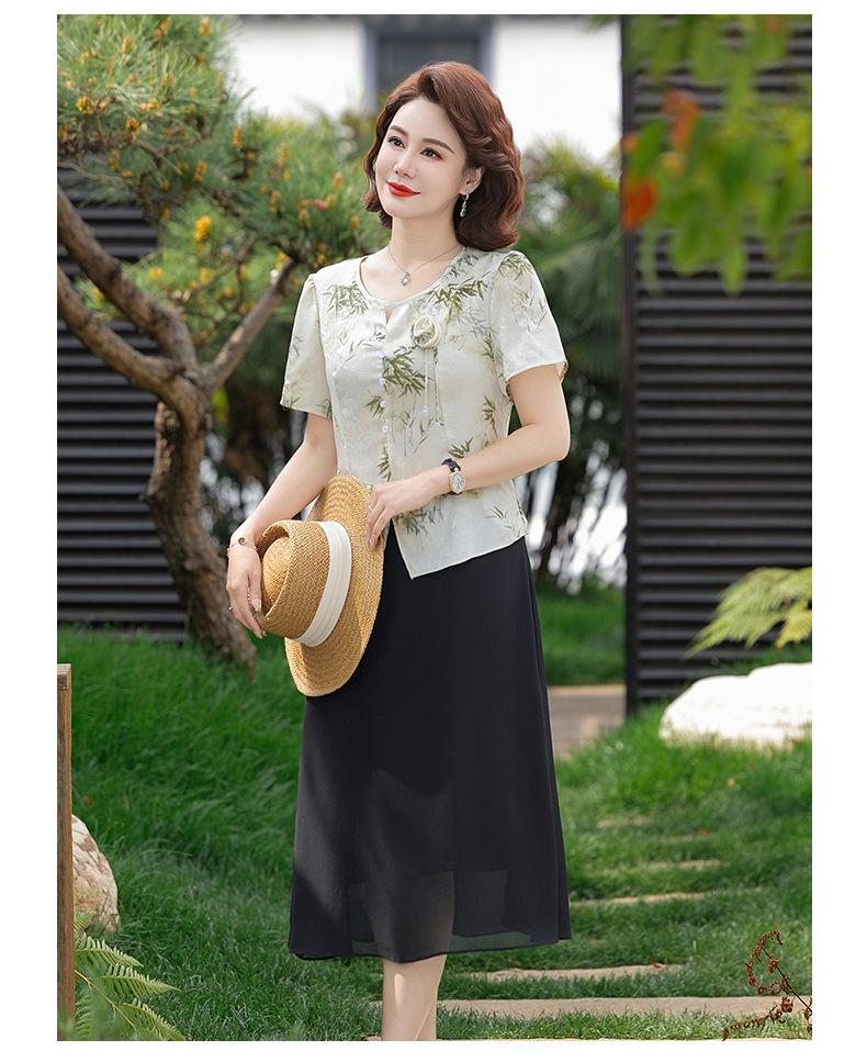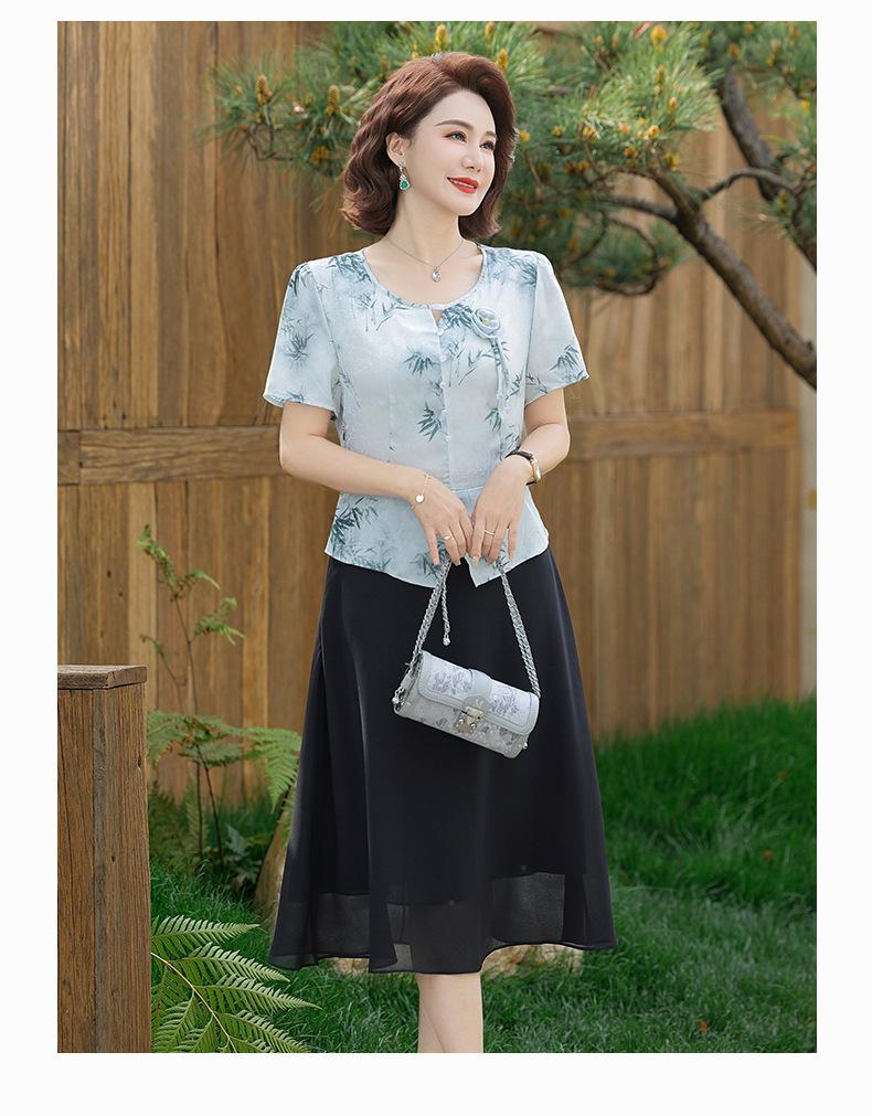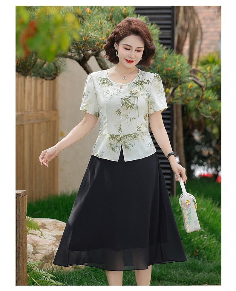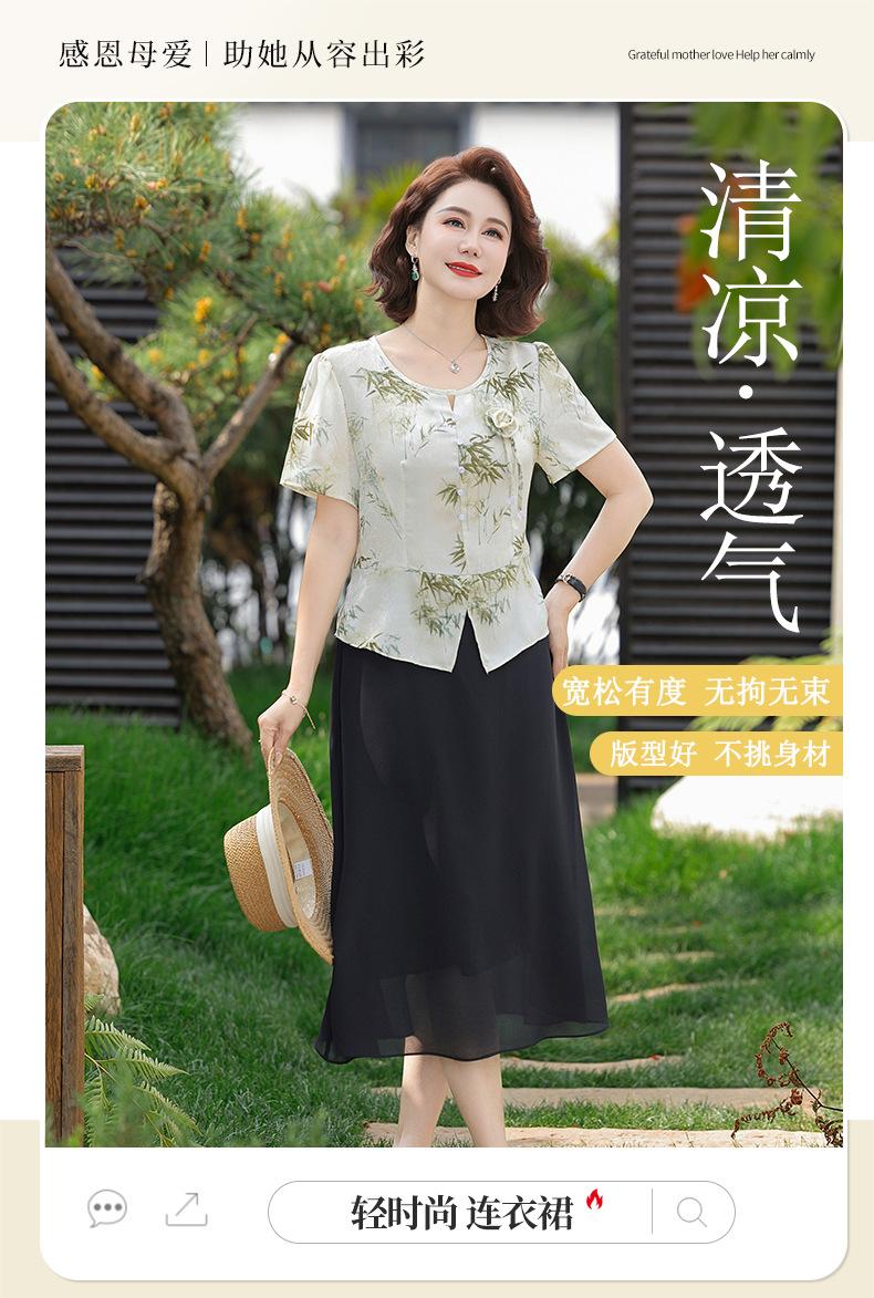 Vestido de Manga Corta Estilo Mamá para Personas de Mediana Edad y Mayores en Verano Nuevo Estilo Nueva Moda China Casual Falda Slim