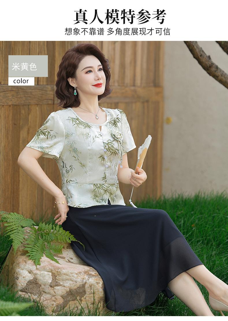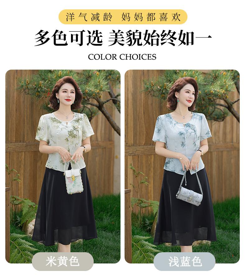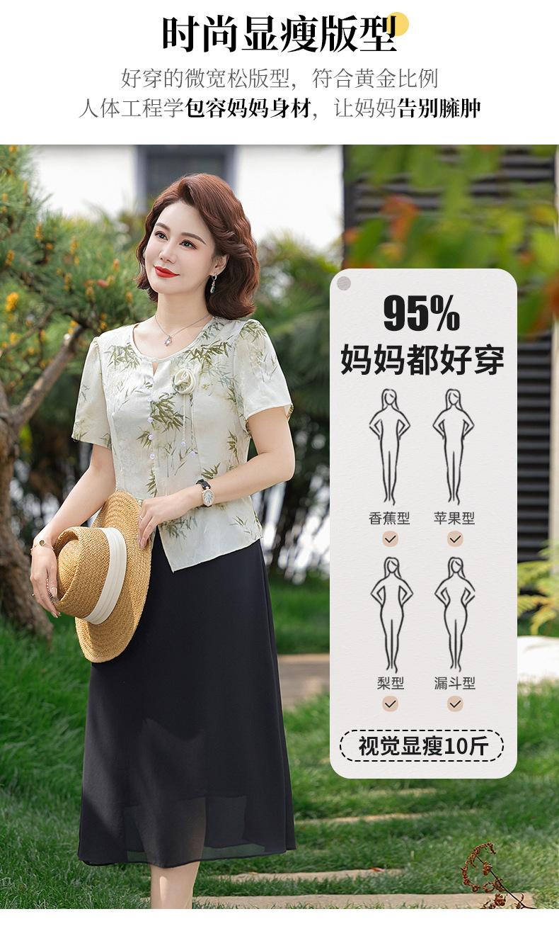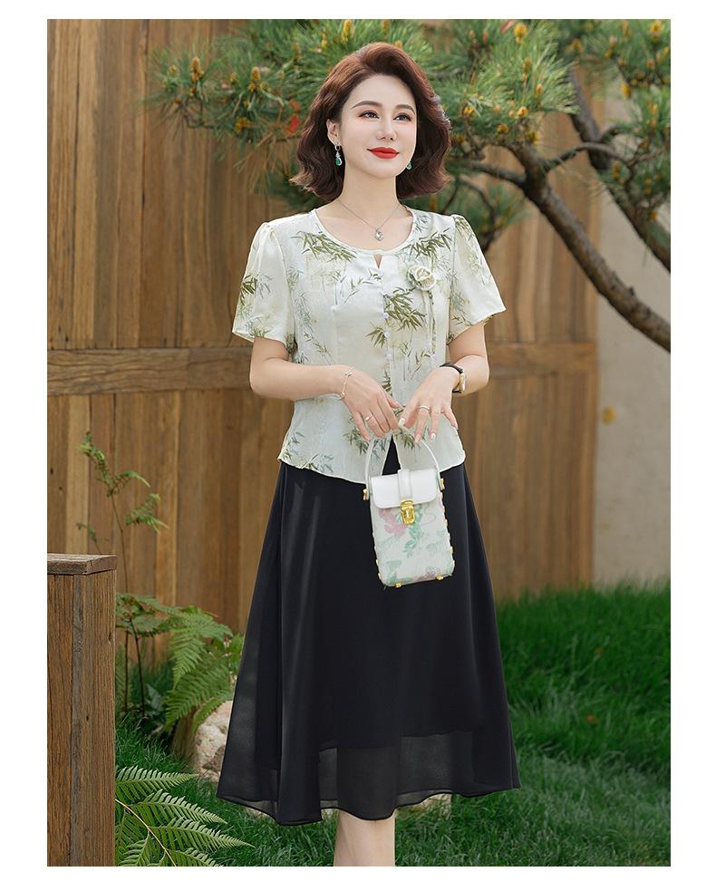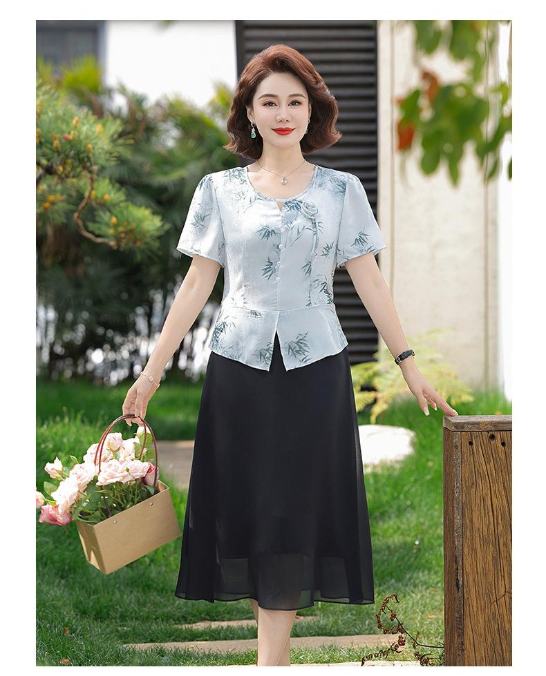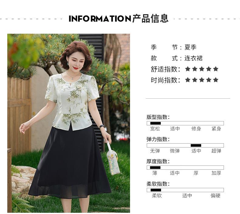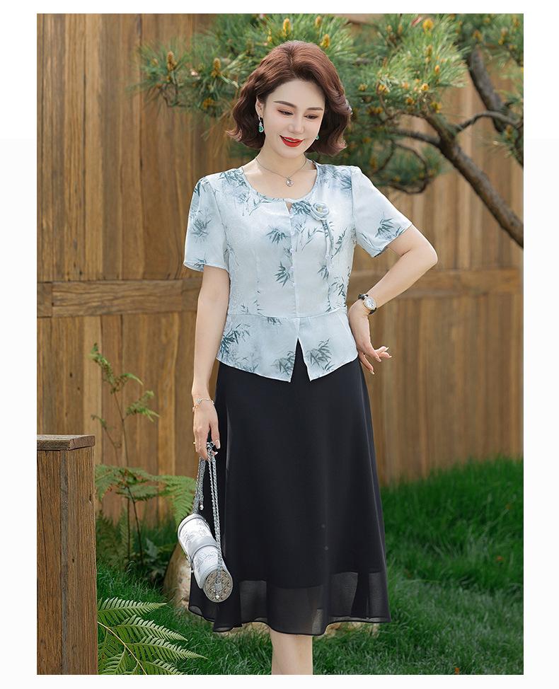 Vestido de Manga Corta Estilo Mamá para Personas de Mediana Edad y Mayores en Verano Nuevo Estilo Nueva Moda China Casual Falda Slim