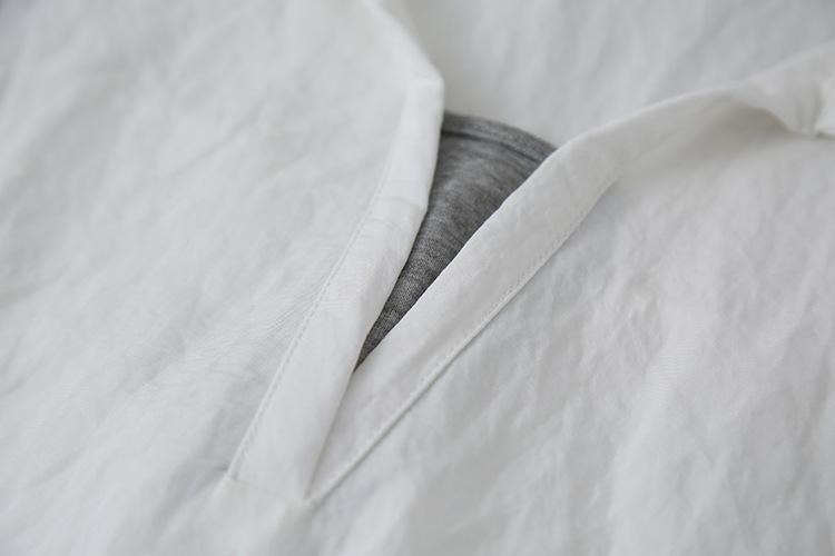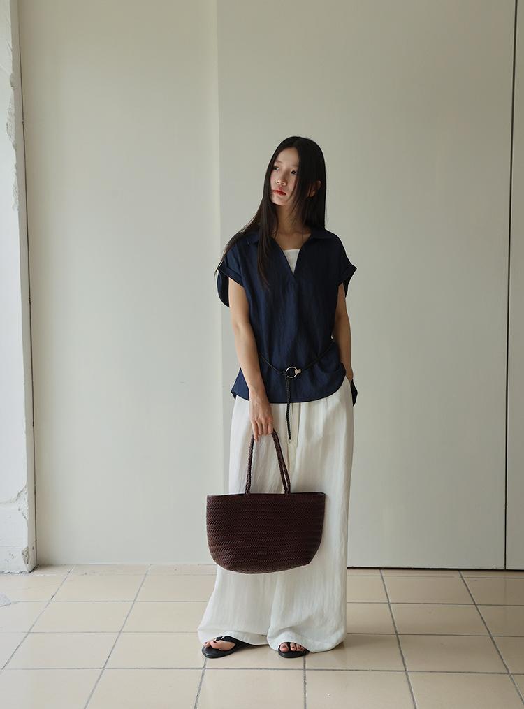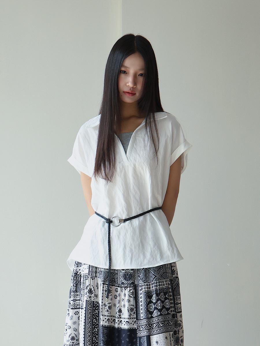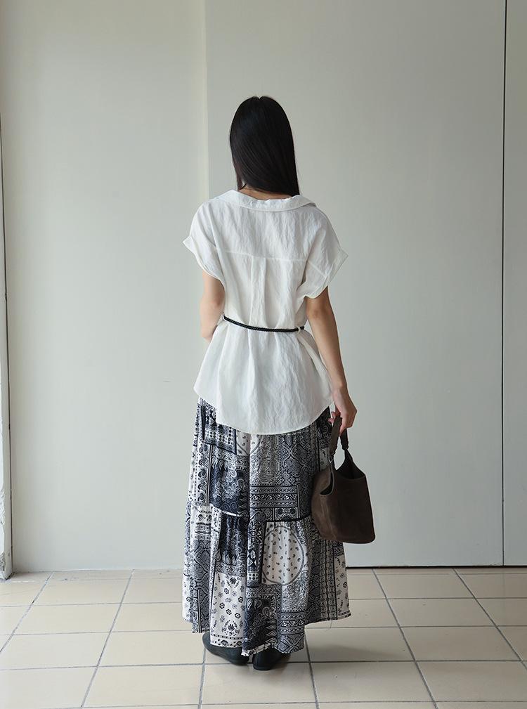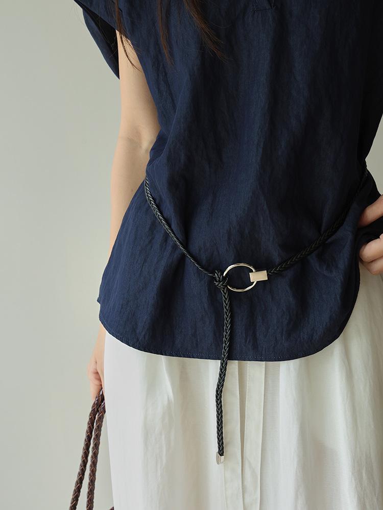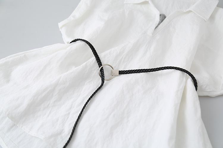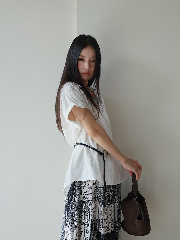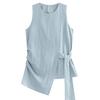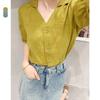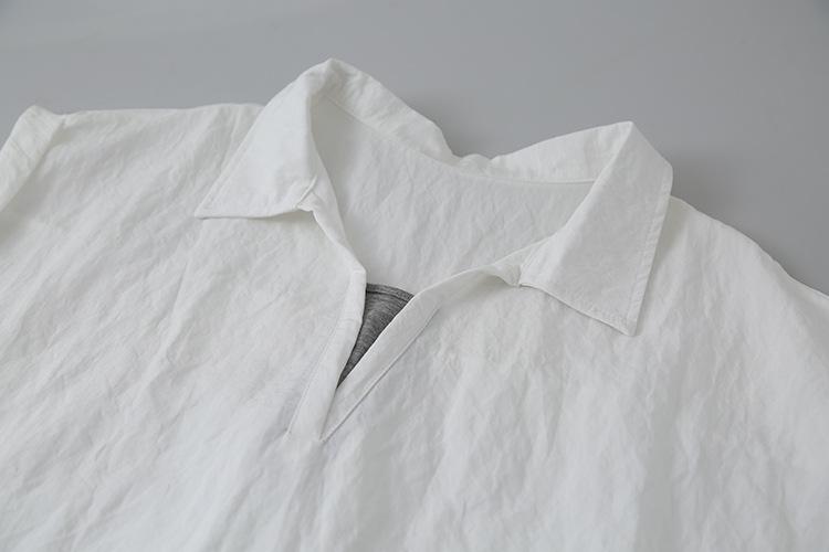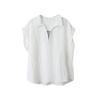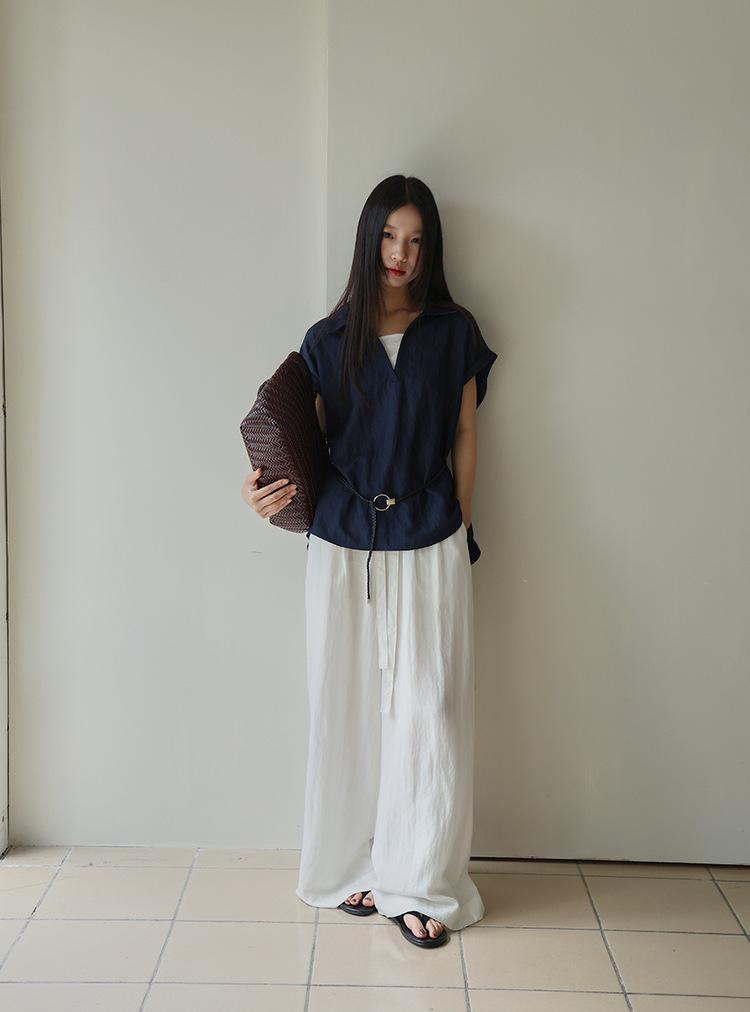 [Oufan] Camisa de Manga Corta con Cuello en V y Diseño de Falso Dos Piezas que Ciñe la Cintura para Mujer Verano Nueva Silueta Adelgazante Camisa Elegante sin Mangas 2995
