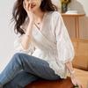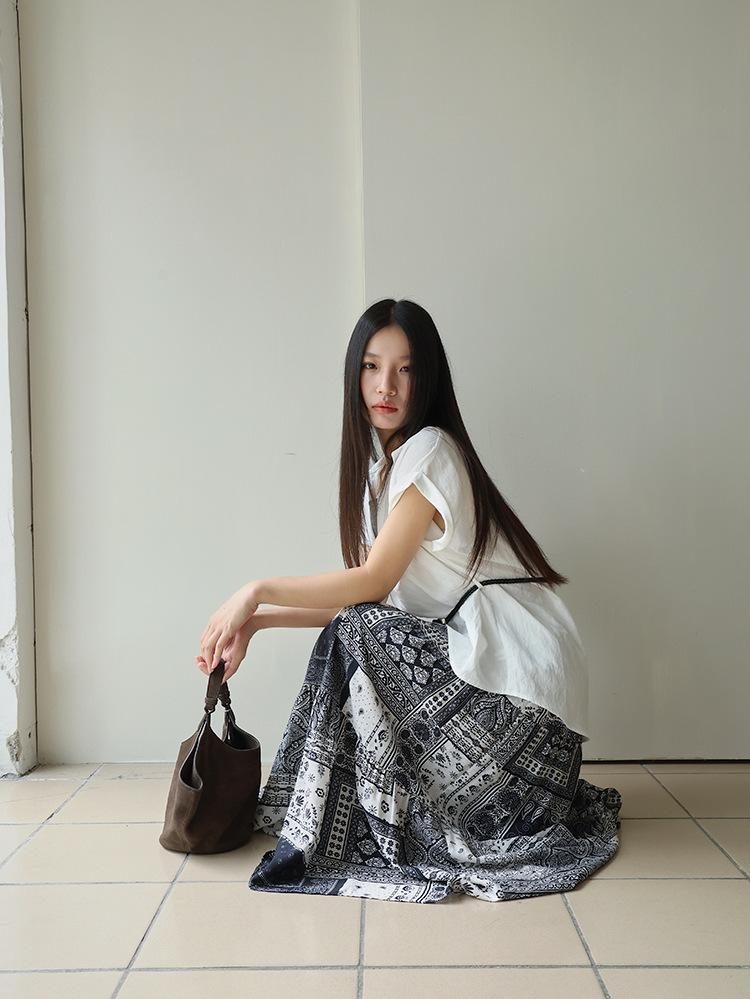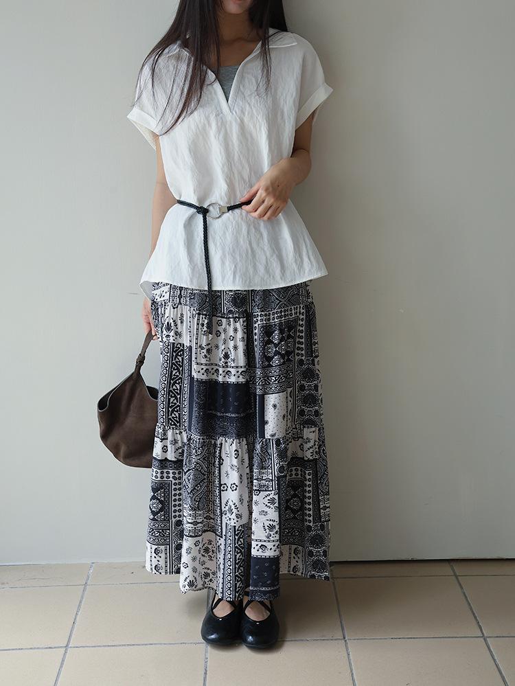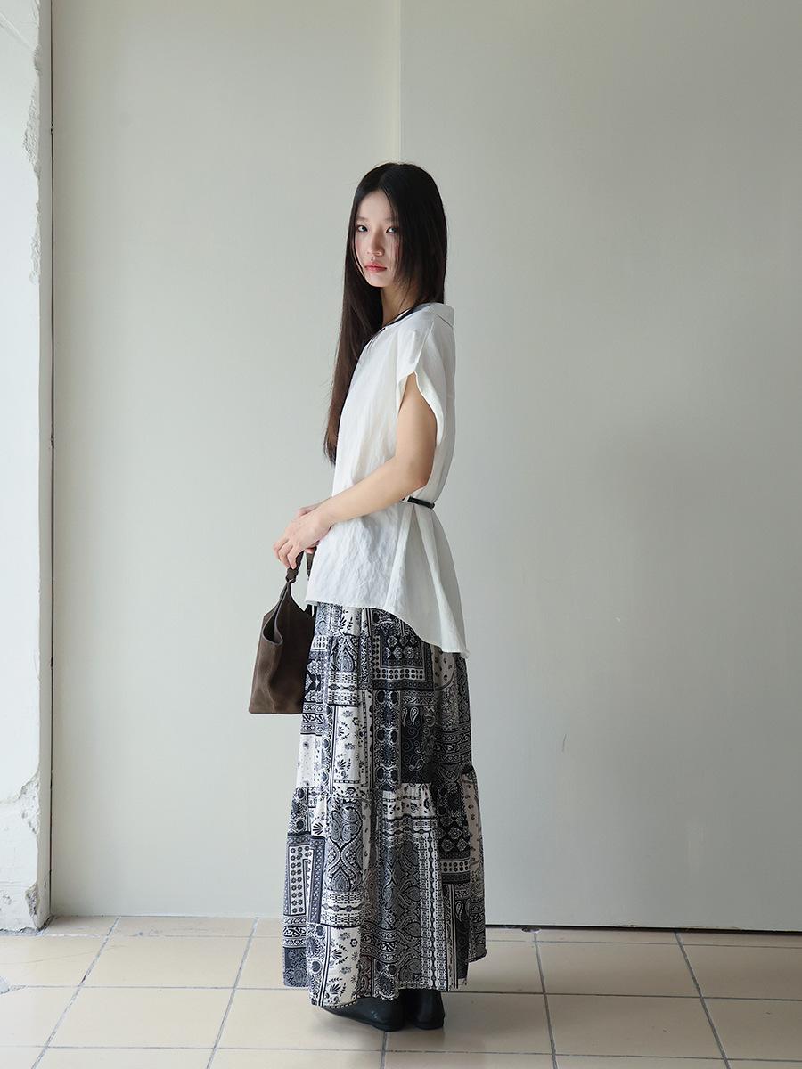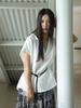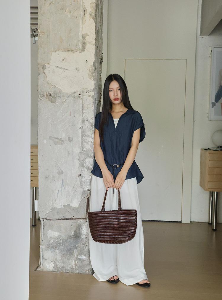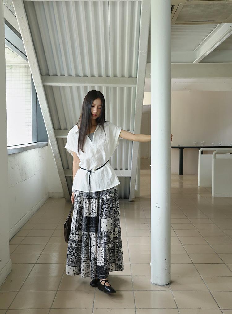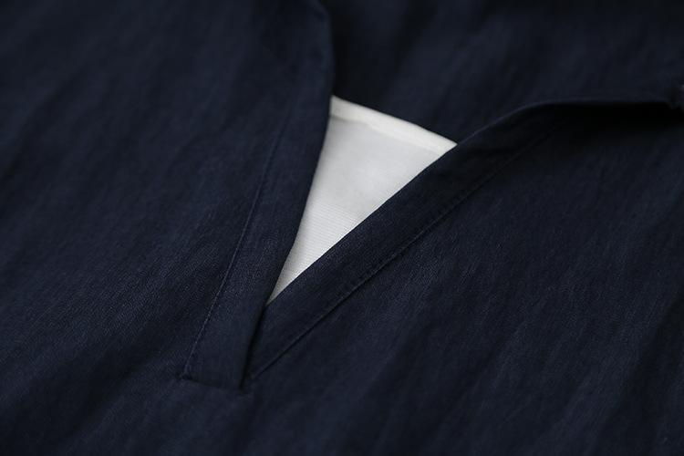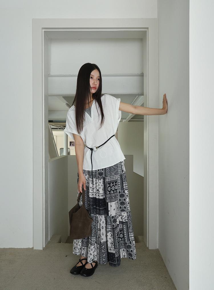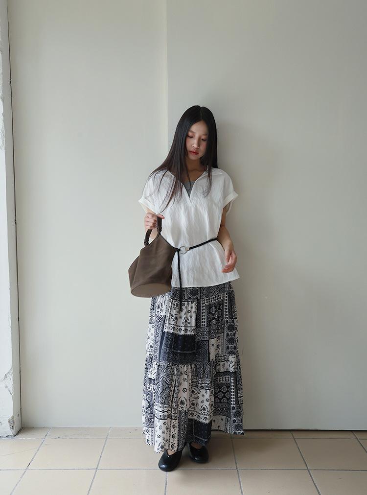[Oufan] Camisa de Manga Corta con Cuello en V y Diseño de Falso Dos Piezas que Ciñe la Cintura para Mujer Verano Nueva Silueta Adelgazante Camisa Elegante sin Mangas 2995
