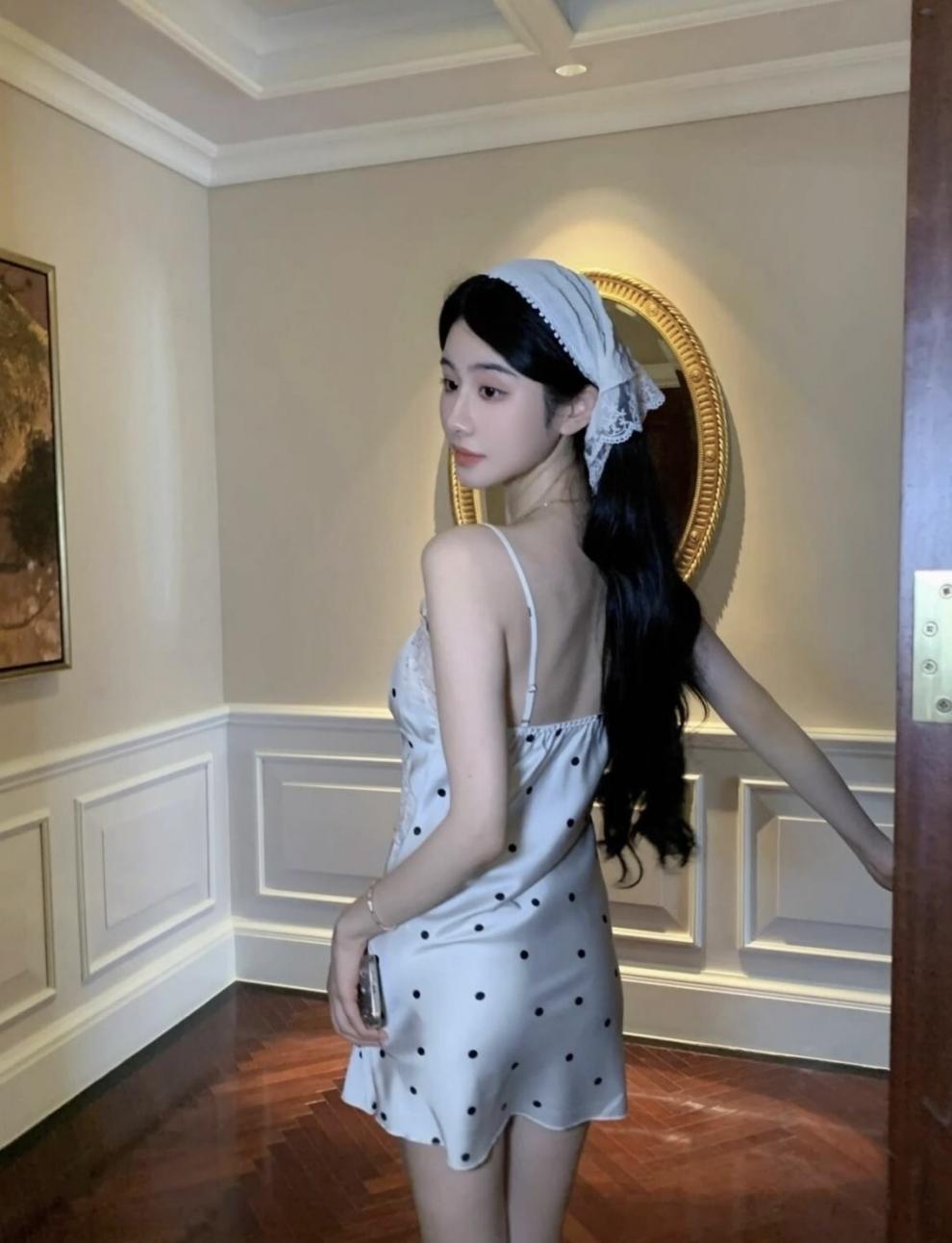 Pijama estilo coreano para mujer, verano, delgado, seda de hielo, tirantes, shorts, conjunto de shorts, camisón dulce de lunares con encaje, ropa para el hogar