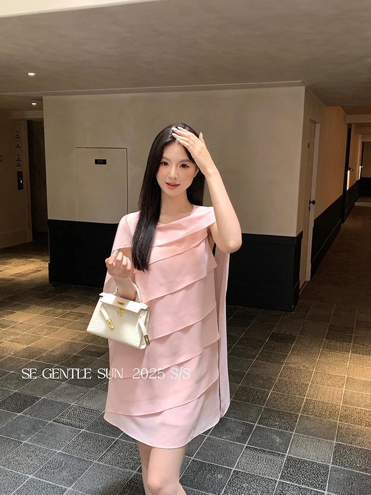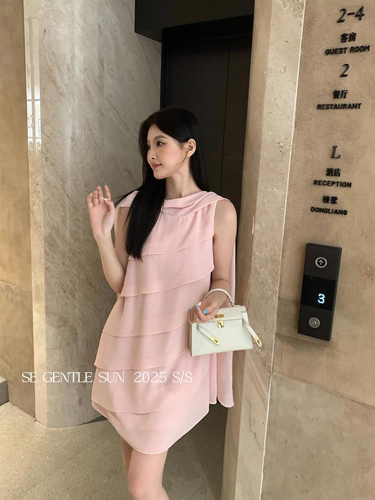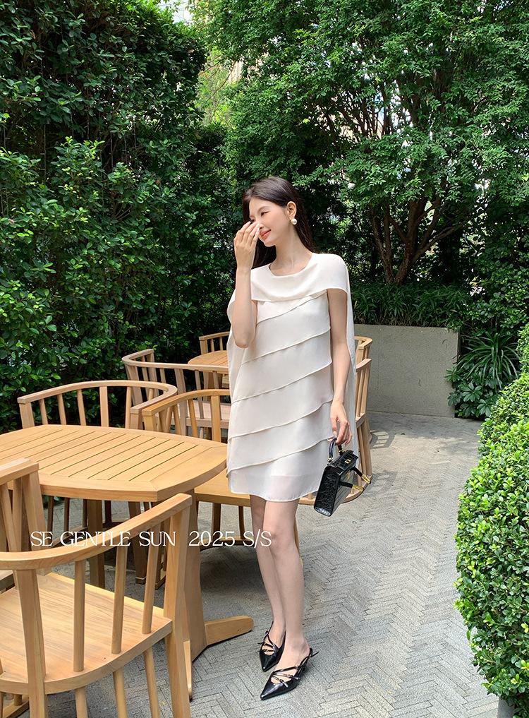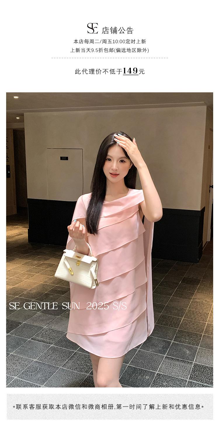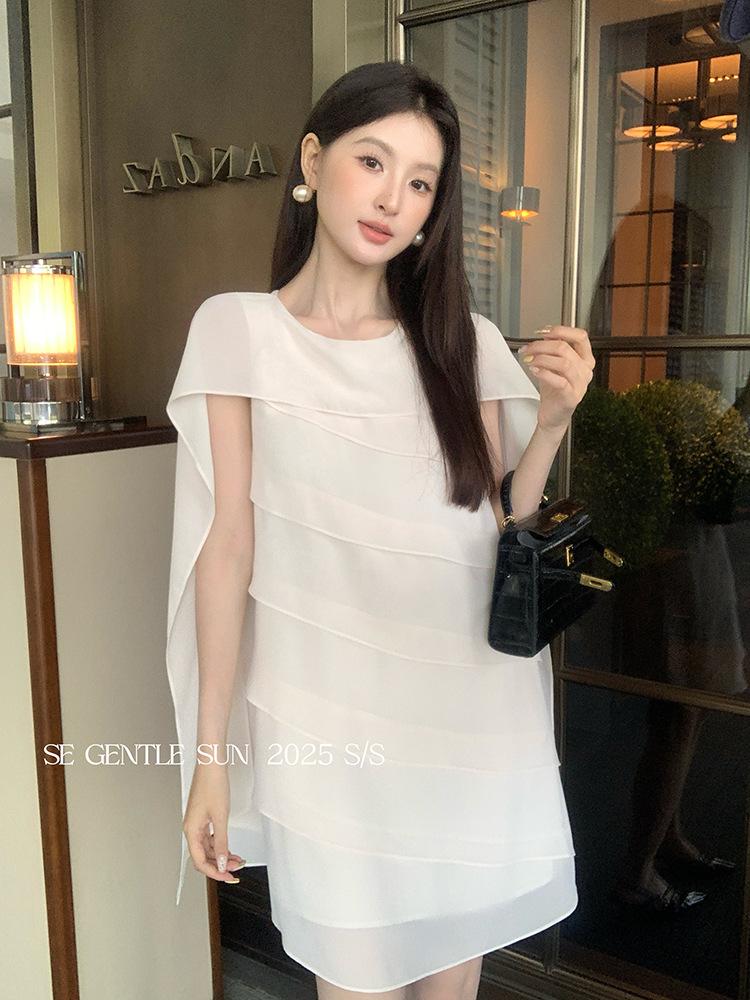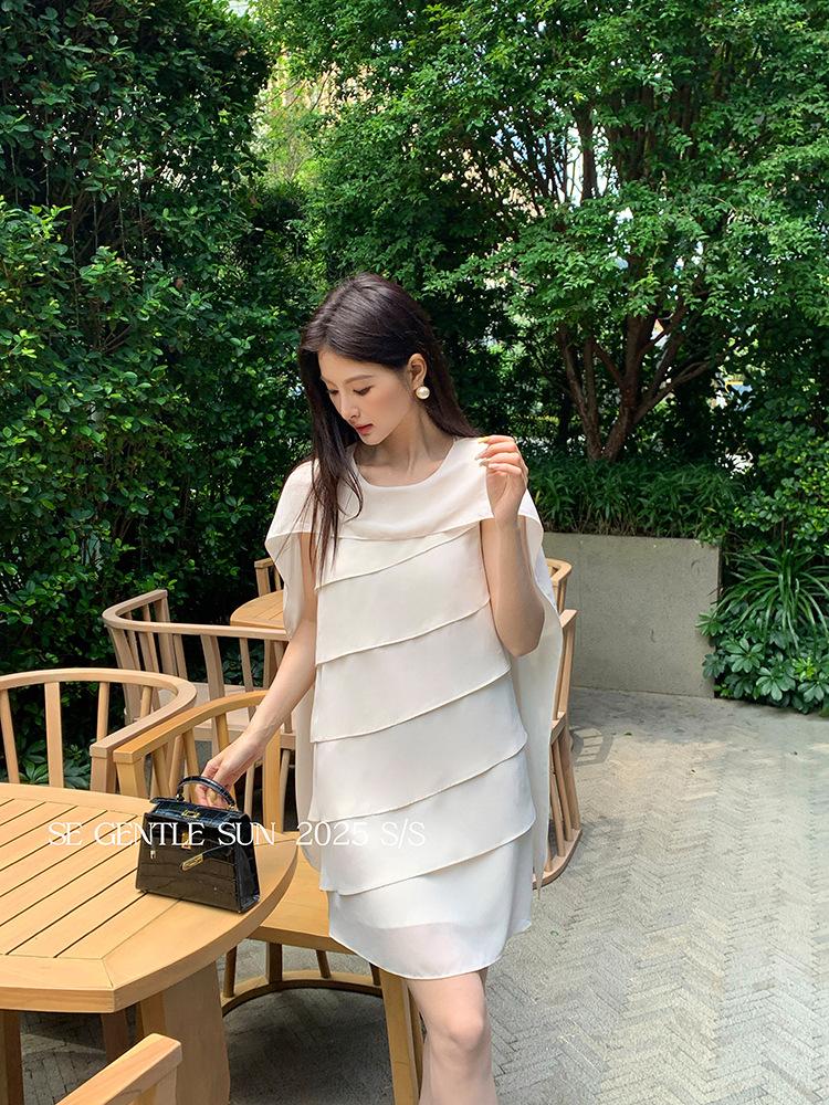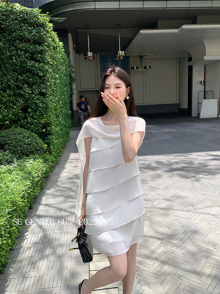Xiuxixi 2025 Nuevo Estilo de Verano Capa Elegante Chic Vestido Ondulado Elegante Falda Corta de Alta Gama para Mujer 88342