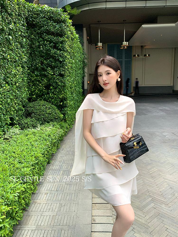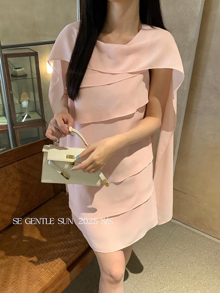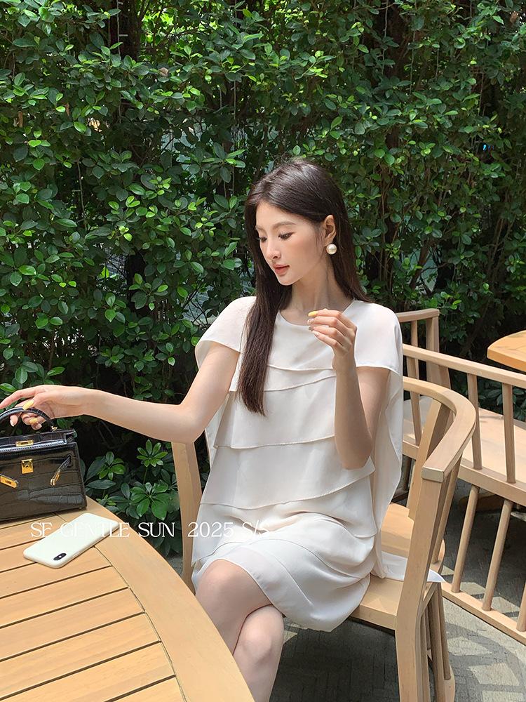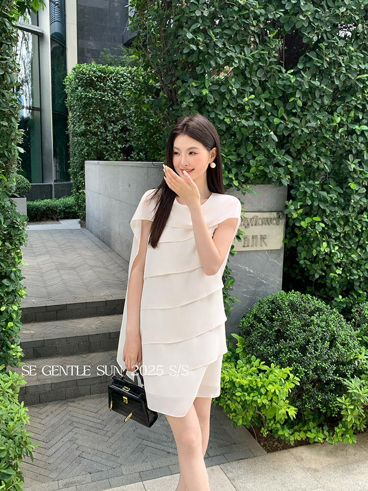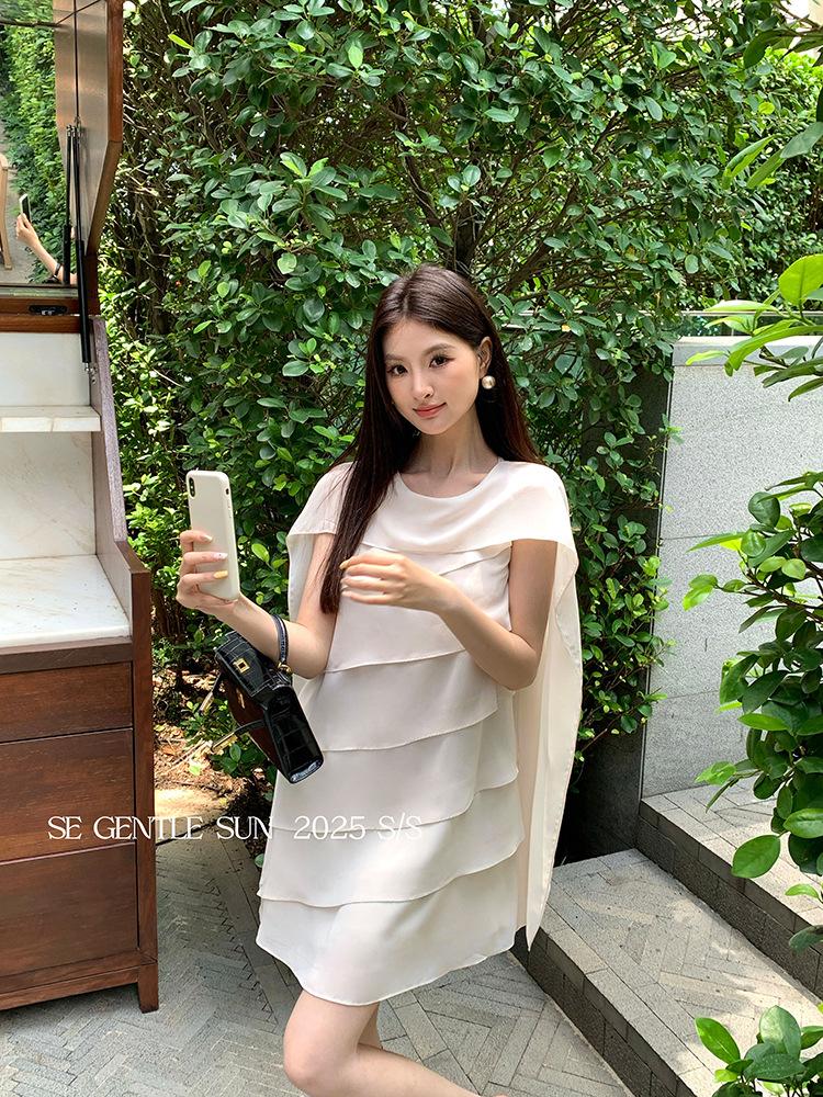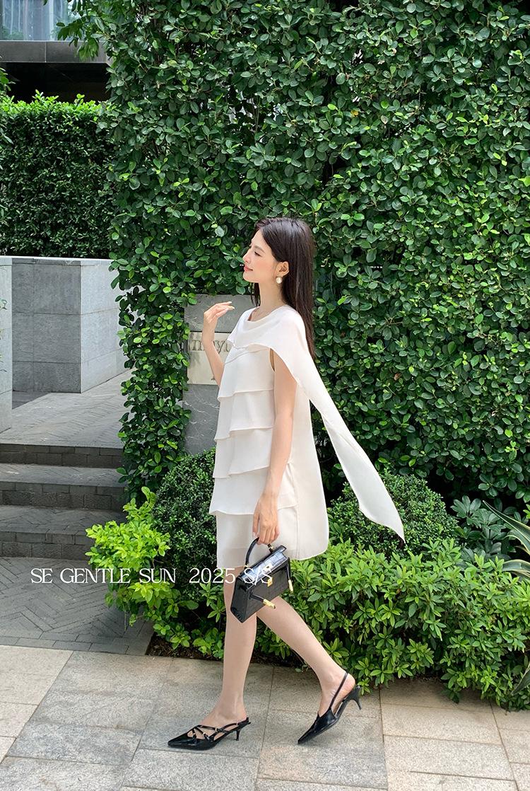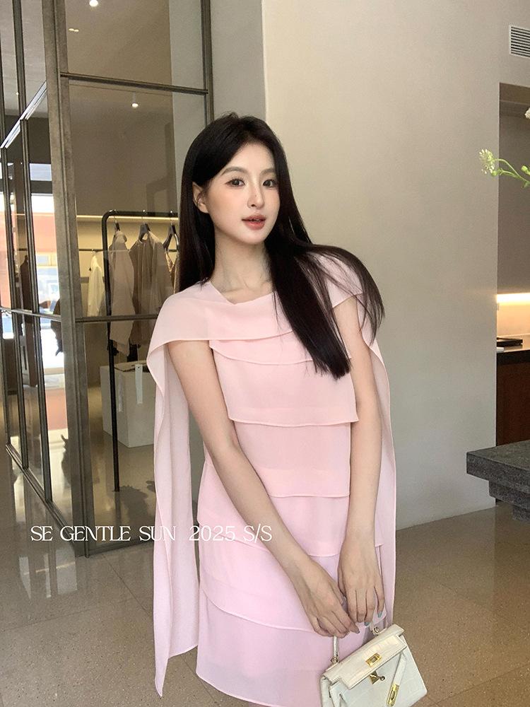 Xiuxixi 2025 Nuevo Estilo de Verano Capa Elegante Chic Vestido Ondulado Elegante Falda Corta de Alta Gama para Mujer 88342