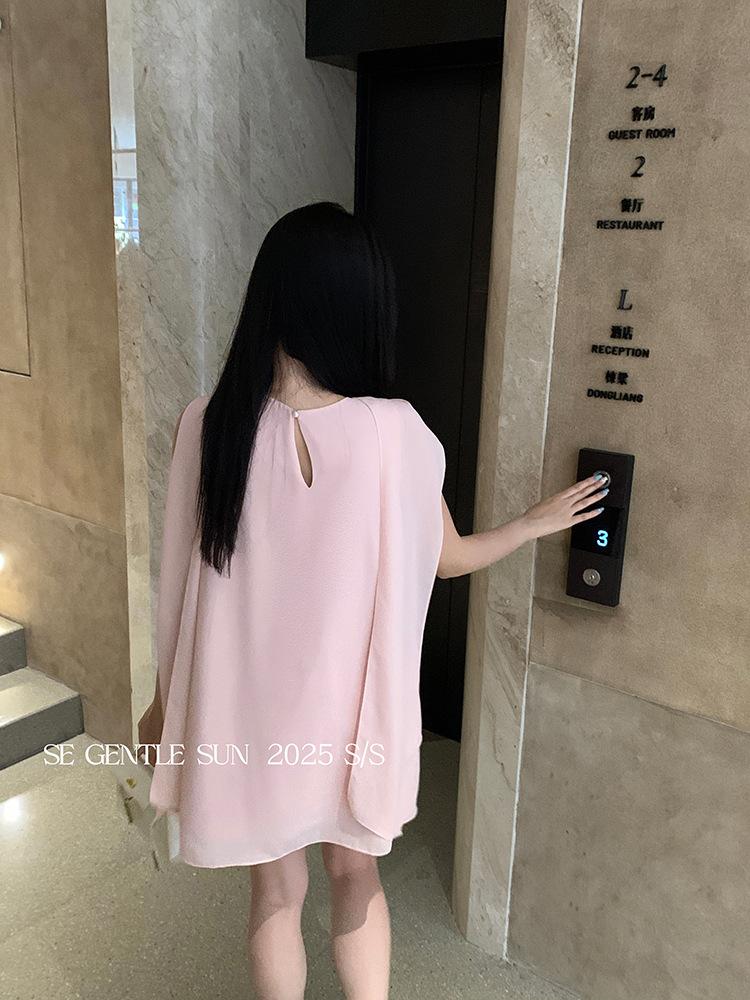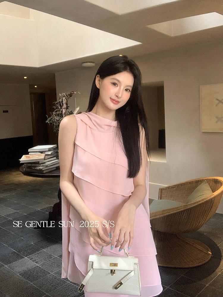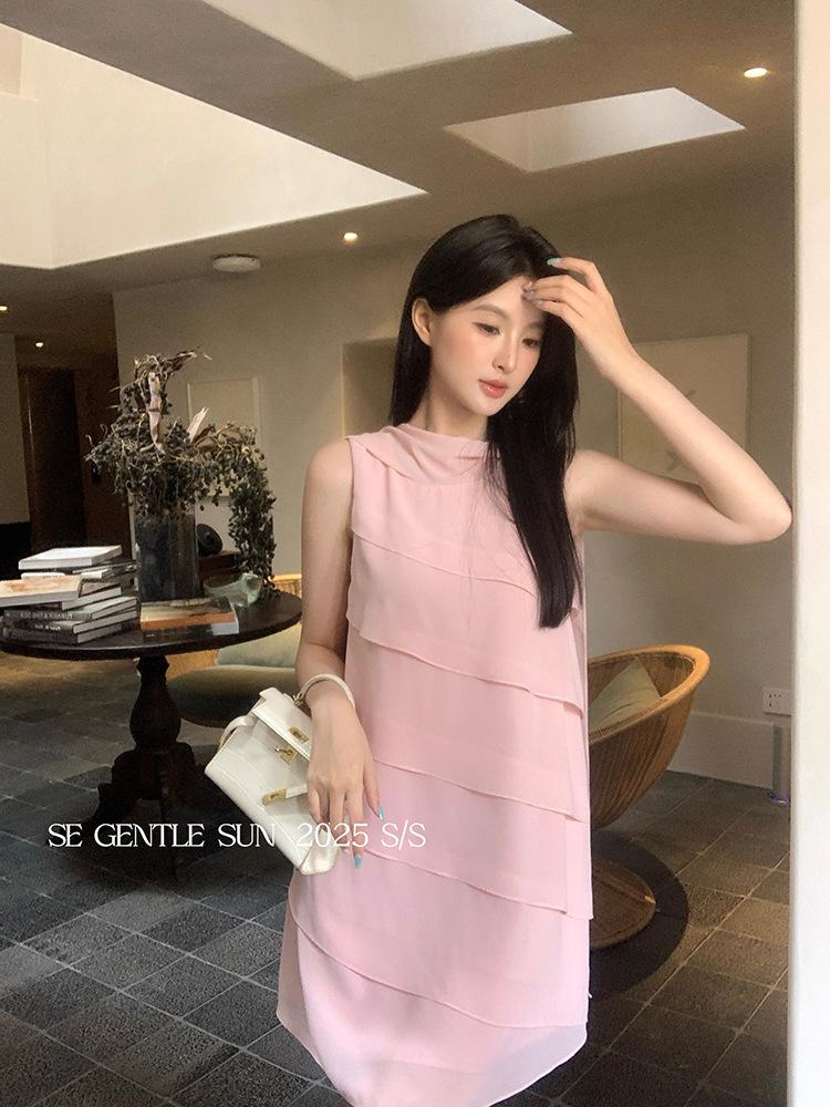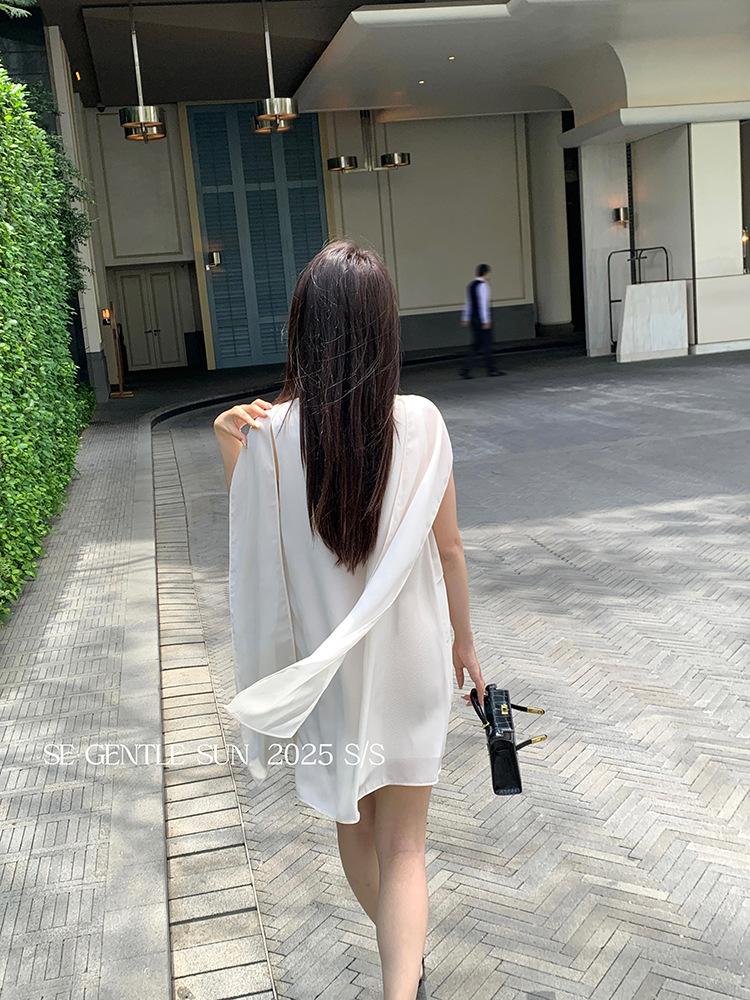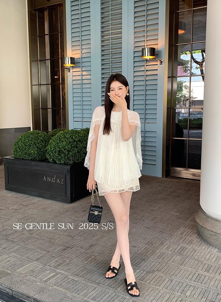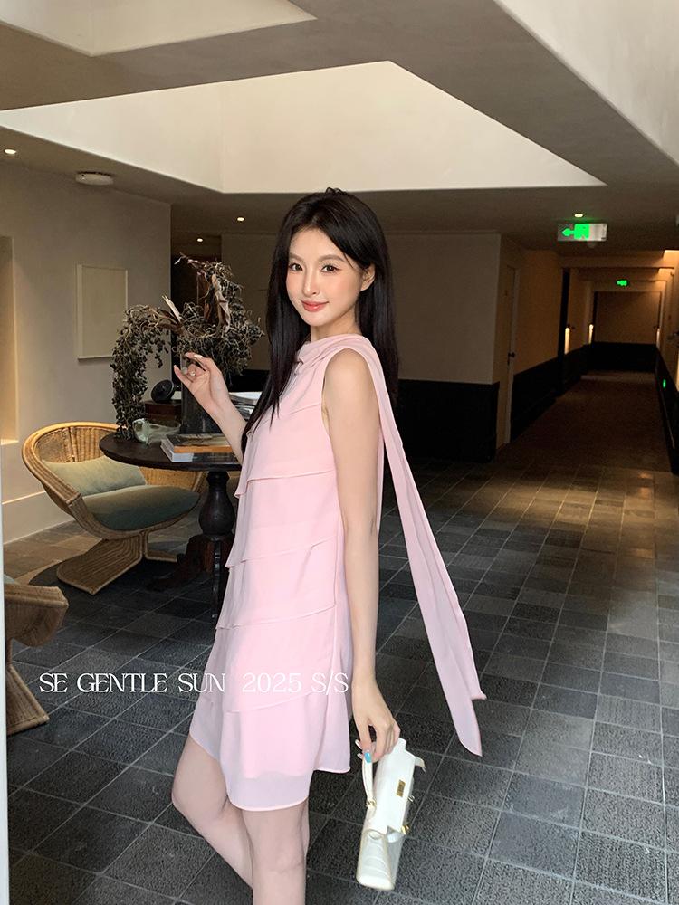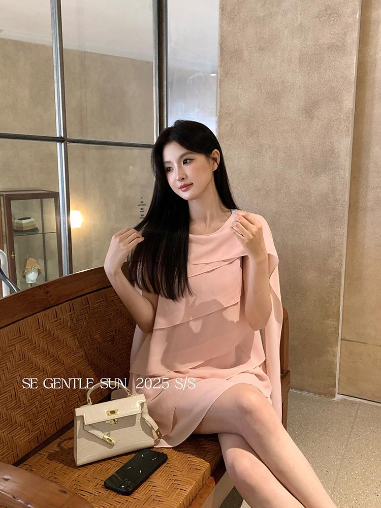 Xiuxixi 2025 Nuevo Estilo de Verano Capa Elegante Chic Vestido Ondulado Elegante Falda Corta de Alta Gama para Mujer 88342
