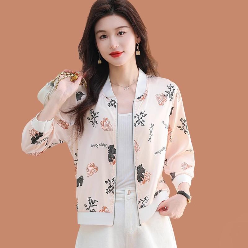 Ropa de Protección Solar para Mujer Moderna y Elegante para el Verano, Tops Cortos Estampados Anti-UV, Chaquetas Casuales Delgadas de Talla Grande