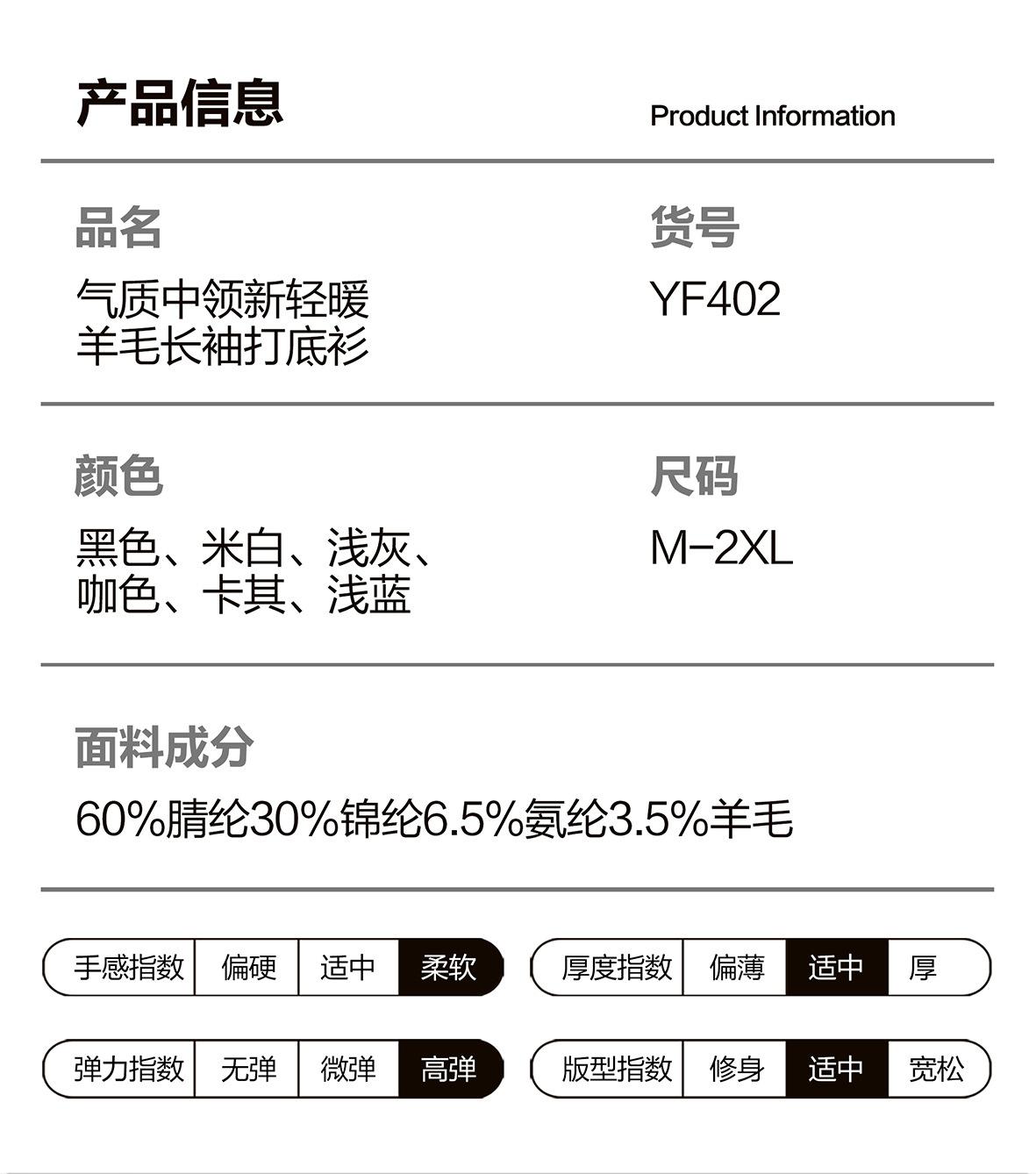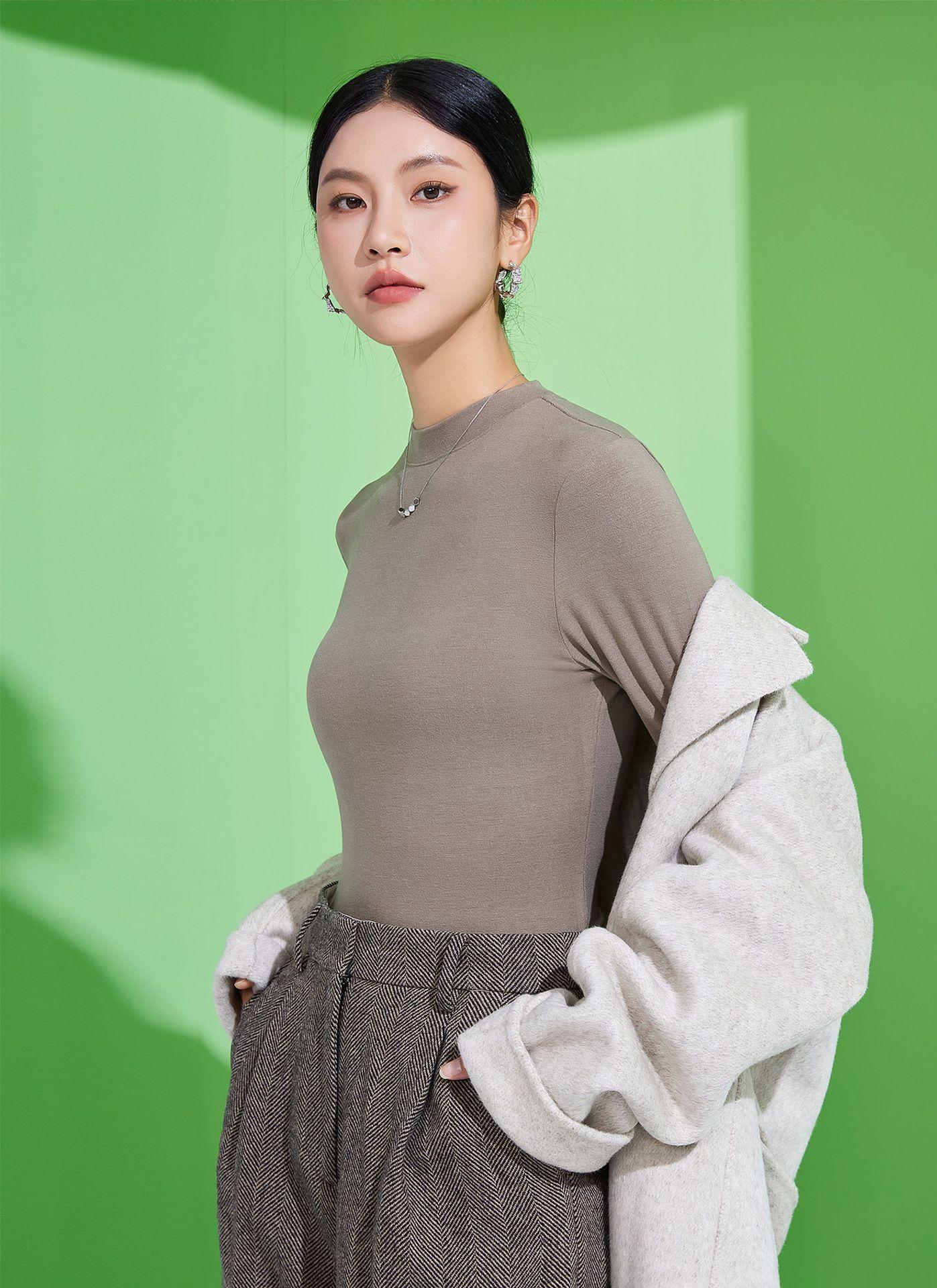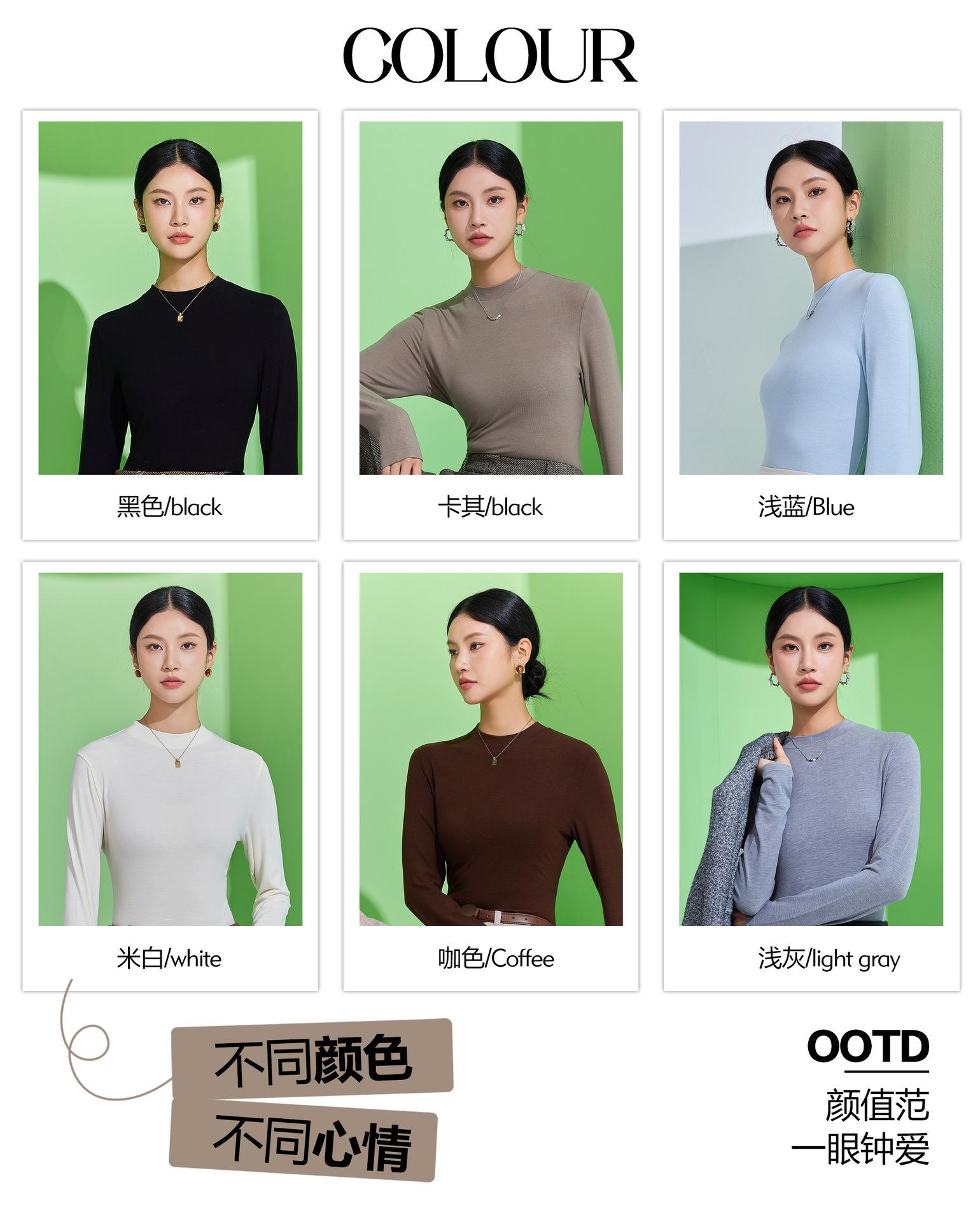 Camiseta Básica de Lana de Cuello Alto para Otoño e Invierno, Ropa Interior de Alta Gama de Color Sólido para Primavera y Otoño, Top de Punto Fino de Manga Larga y Corte Slim para Mujer
