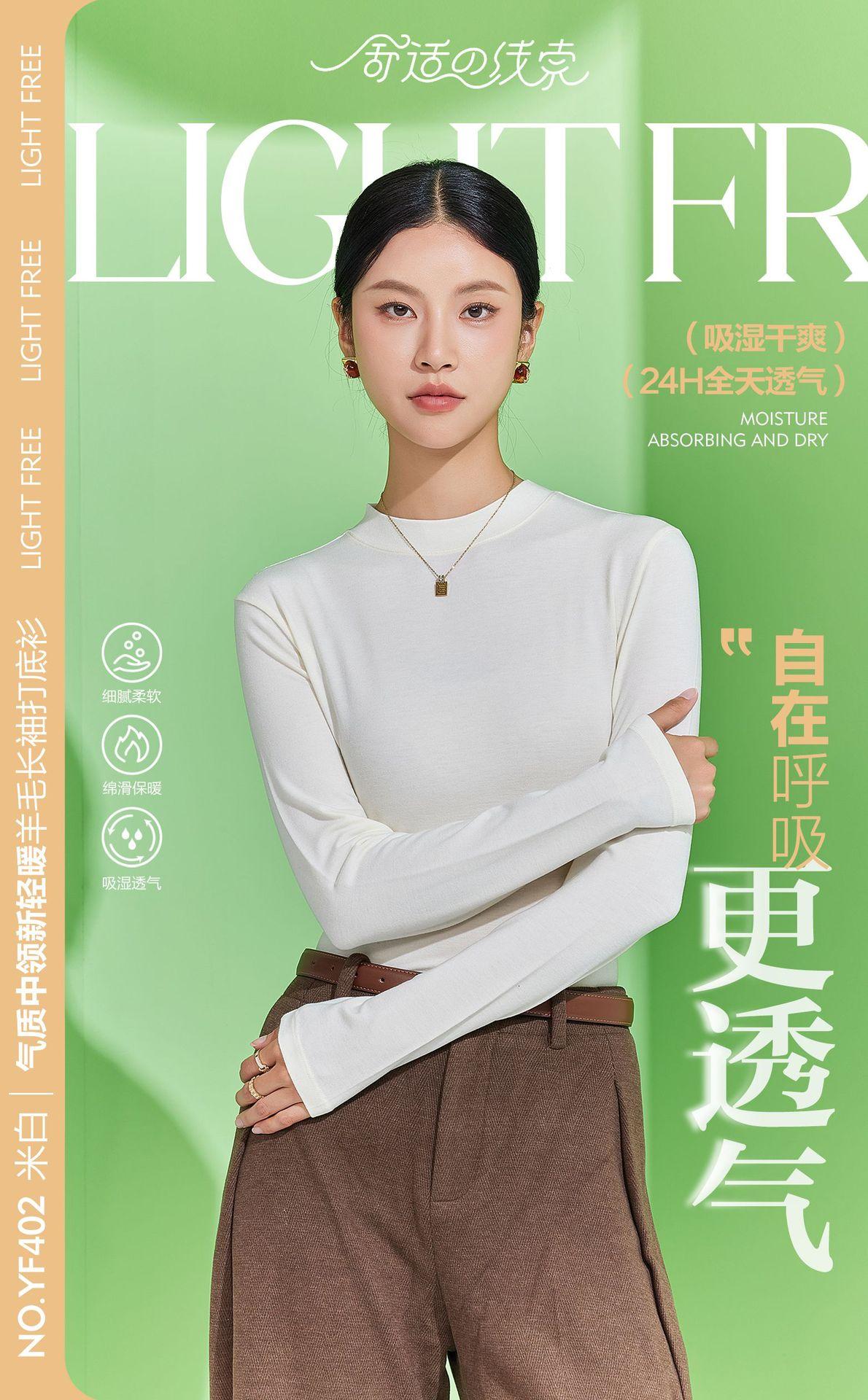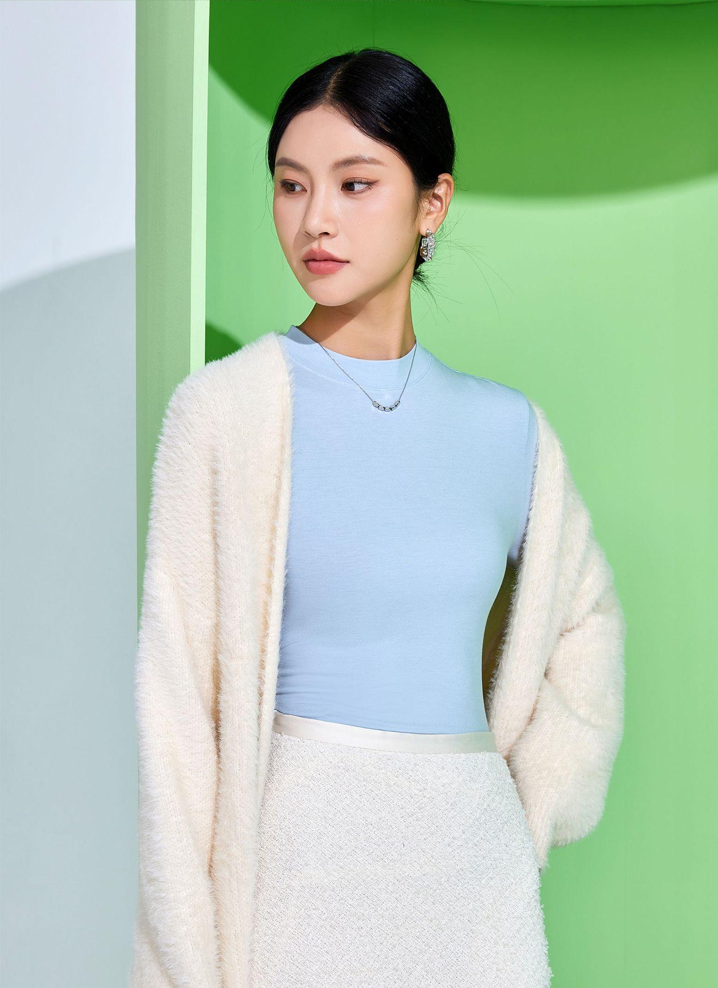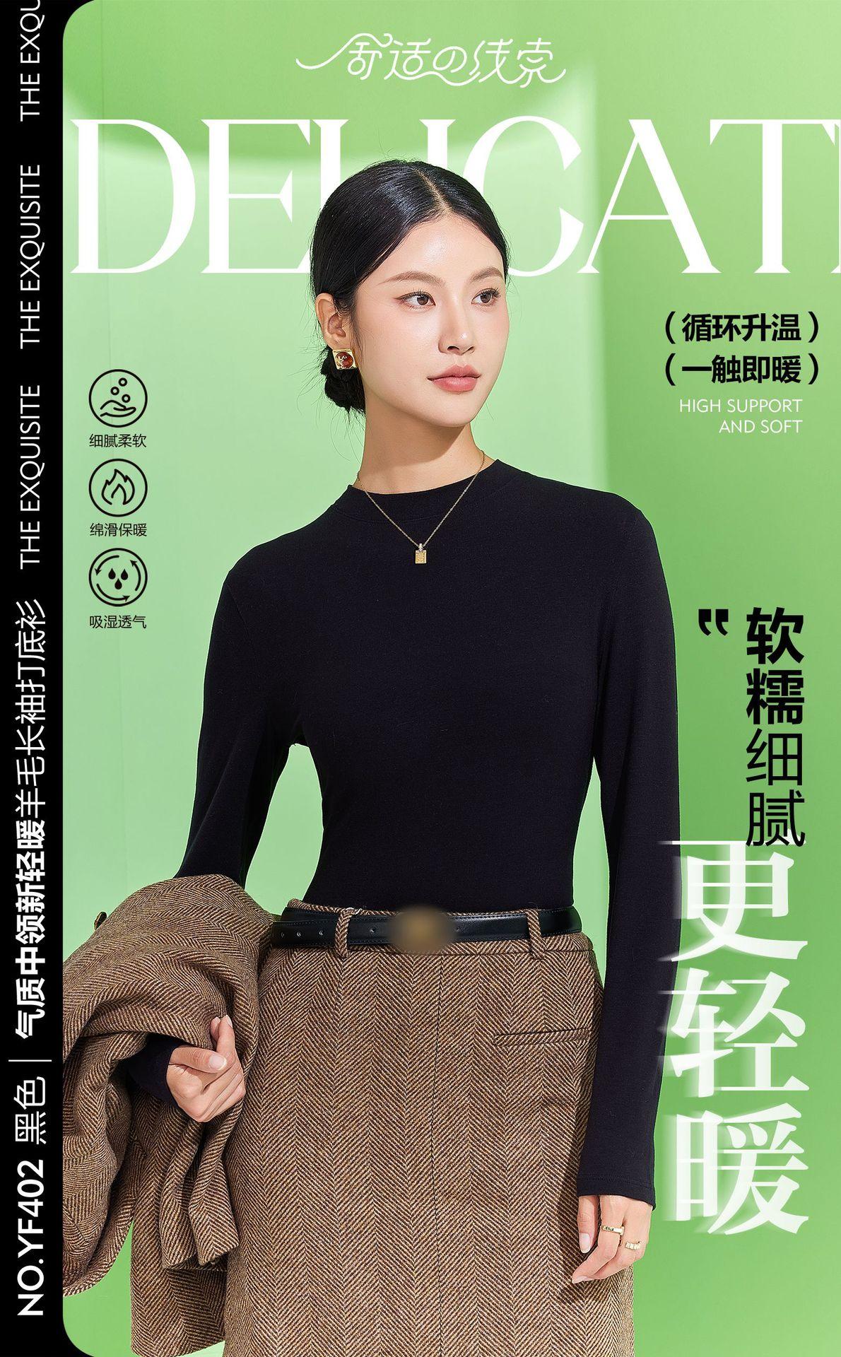 Camiseta Básica de Lana de Cuello Alto para Otoño e Invierno, Ropa Interior de Alta Gama de Color Sólido para Primavera y Otoño, Top de Punto Fino de Manga Larga y Corte Slim para Mujer