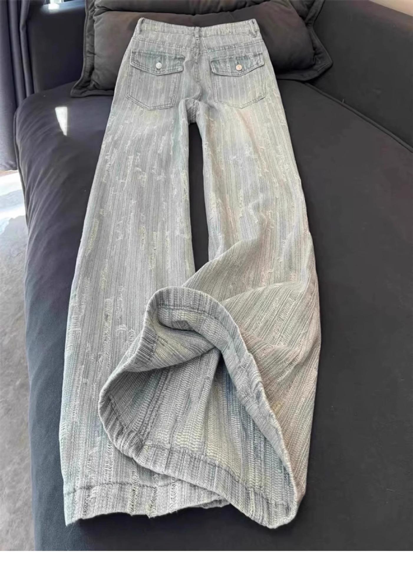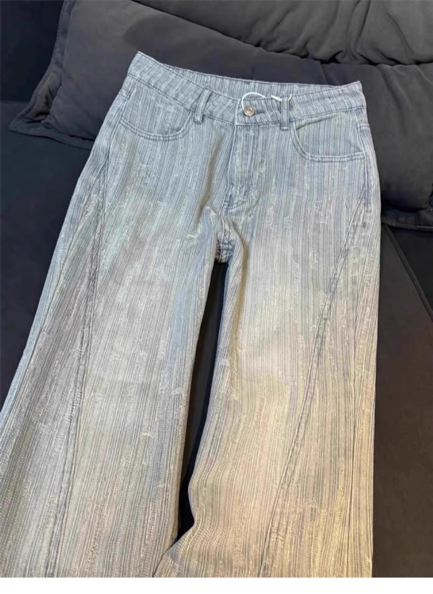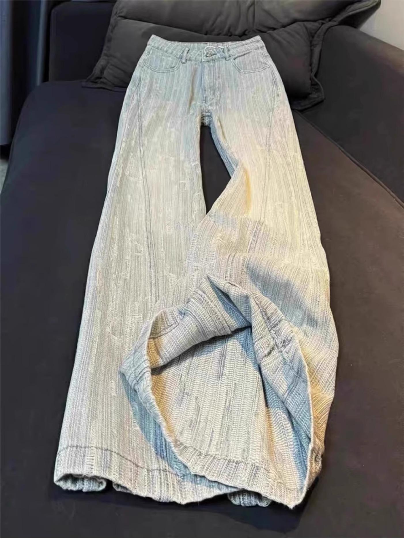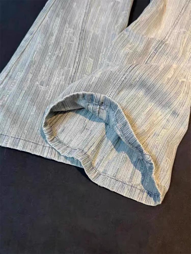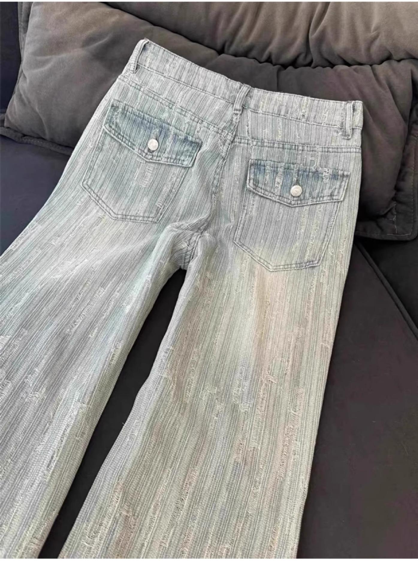 Compra Jeans Acampanados de Color Claro de Talla Grande para Mujer, Verano Nuevo Cintura Alta Ajustados Petite Jacquard Bota al por mayor en Joom.pro