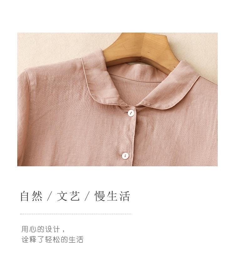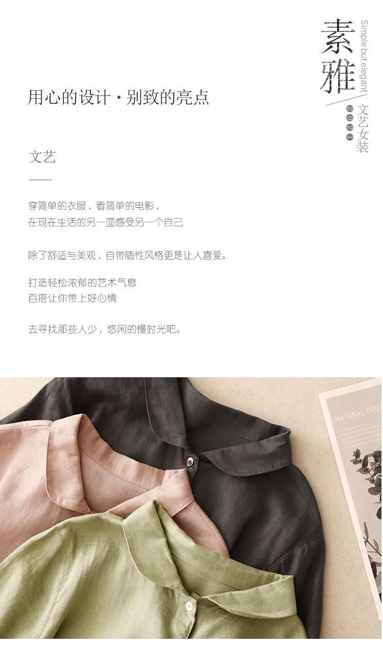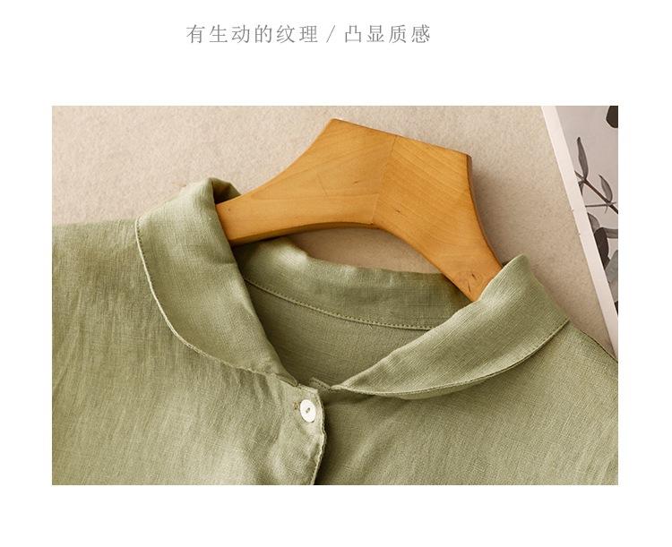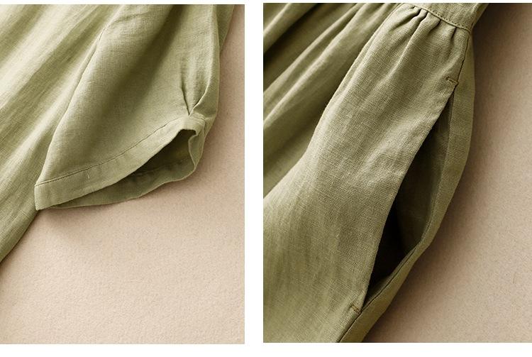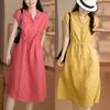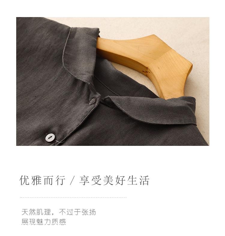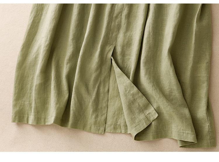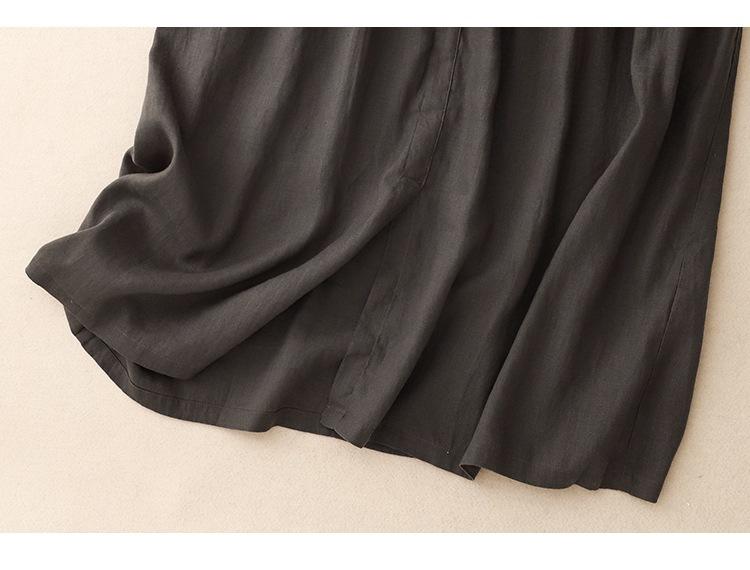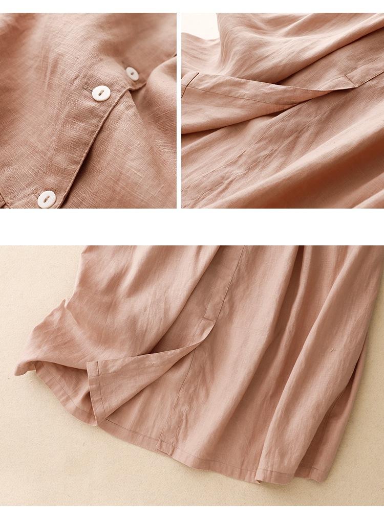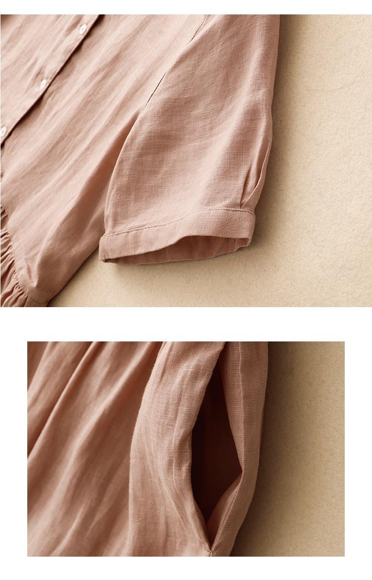 2025 Nuevo Vestido de Verano de Algodón y Lino de Manga Corta Vestido Camisero con Solapa Suelto Artístico Bajo Ancho Largo Medio