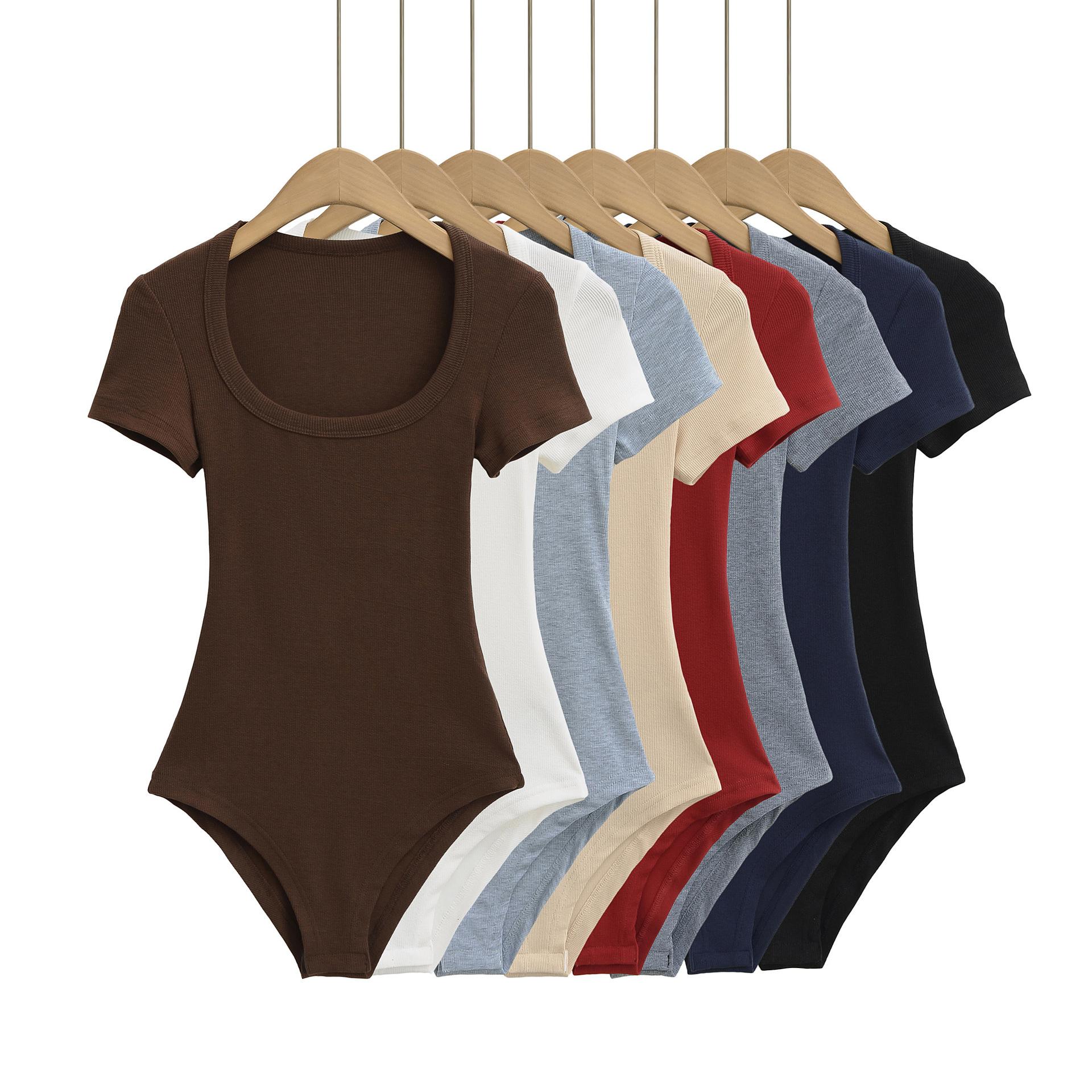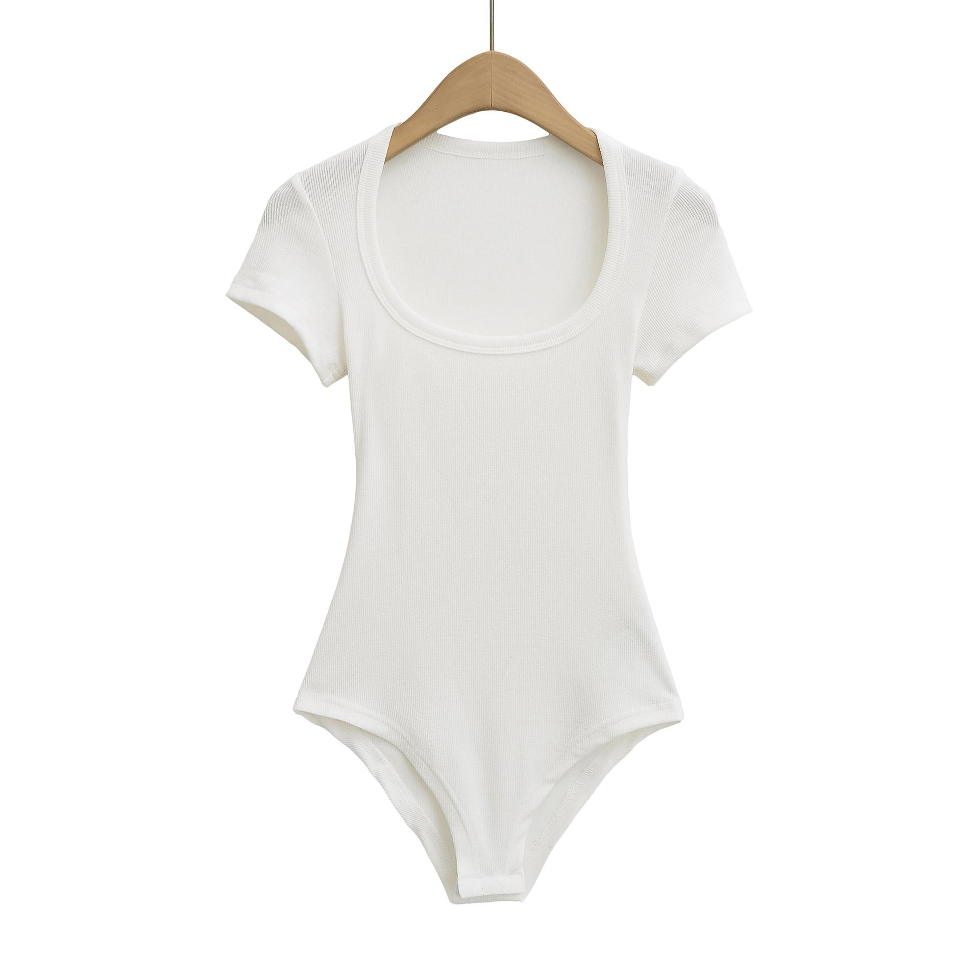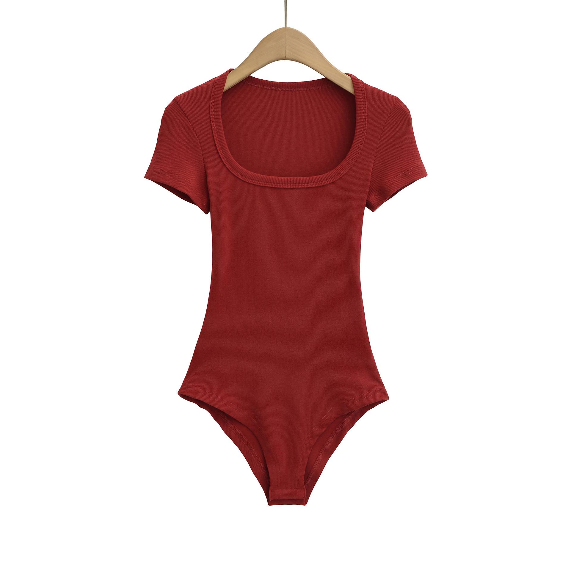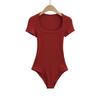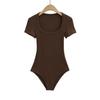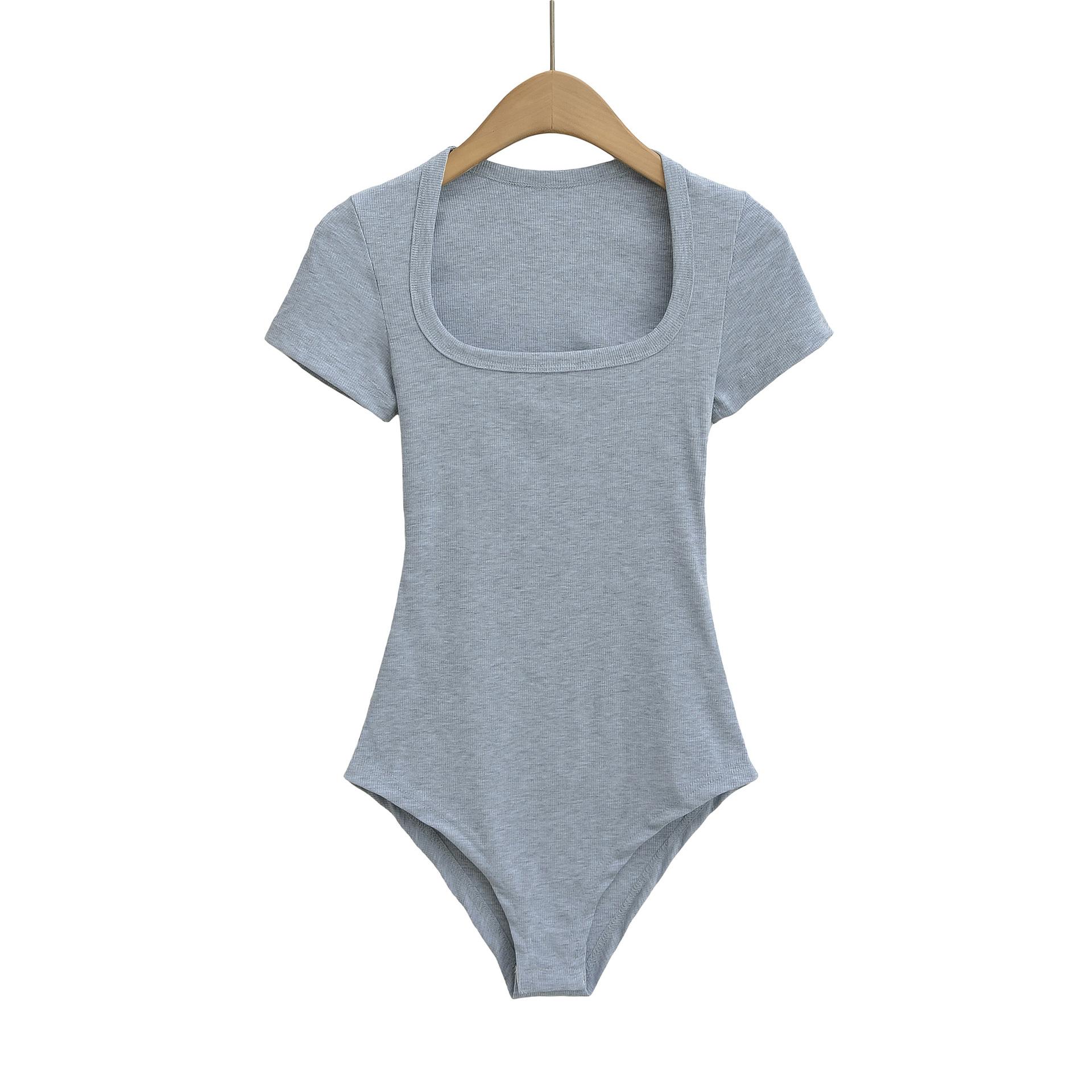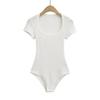 4259-Mono ajustado de estilo europeo y americano para mujer 2025 Nuevo Sexy Sexy de manga corta con cuello cuadrado Camiseta básica