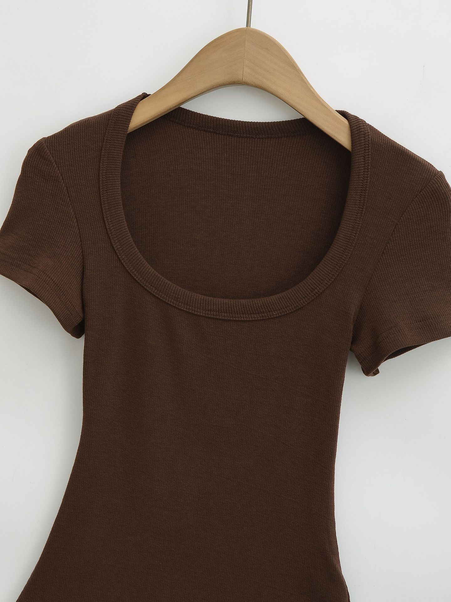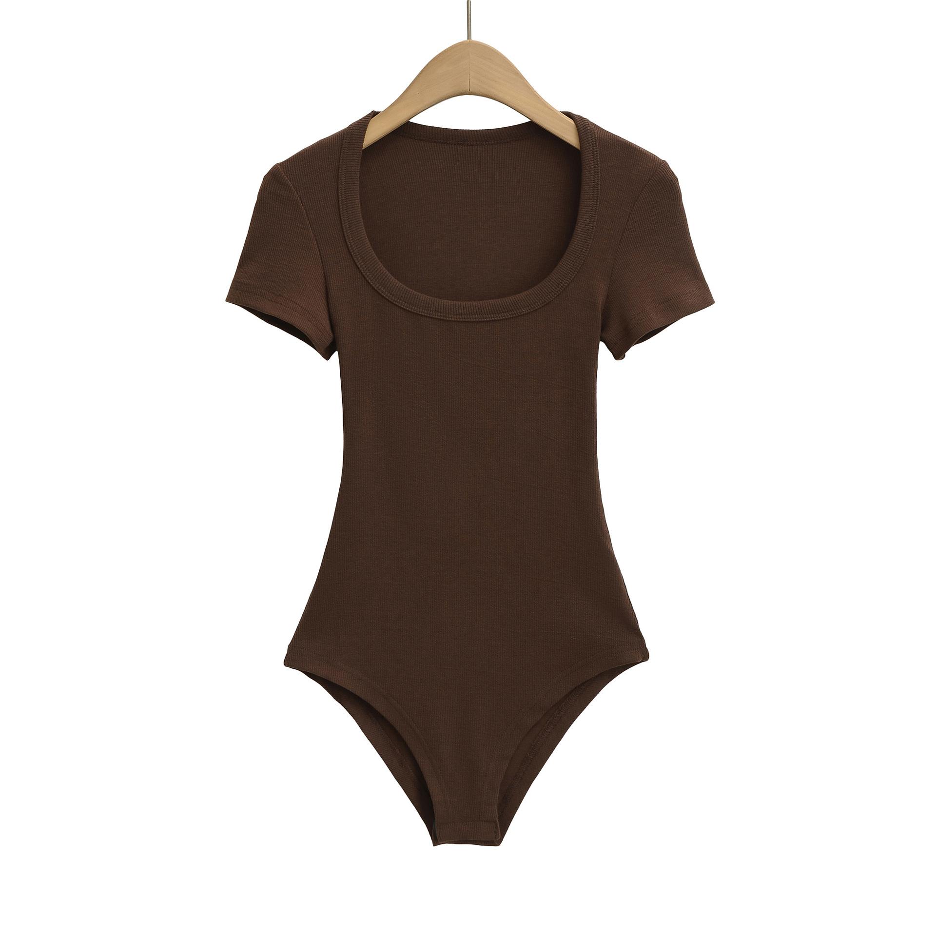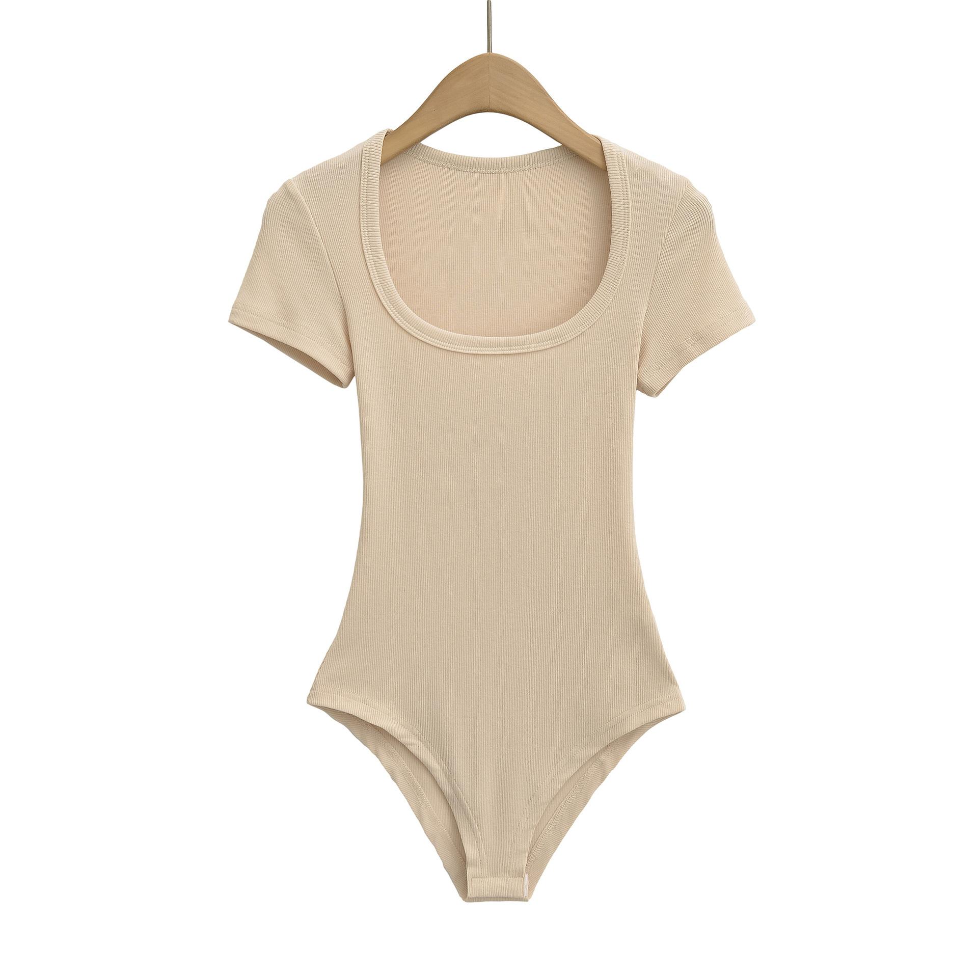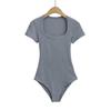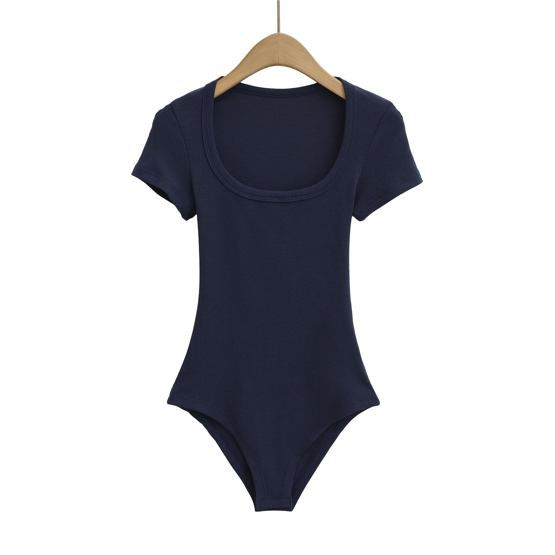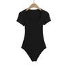 4259-Mono ajustado de estilo europeo y americano para mujer 2025 Nuevo Sexy Sexy de manga corta con cuello cuadrado Camiseta básica