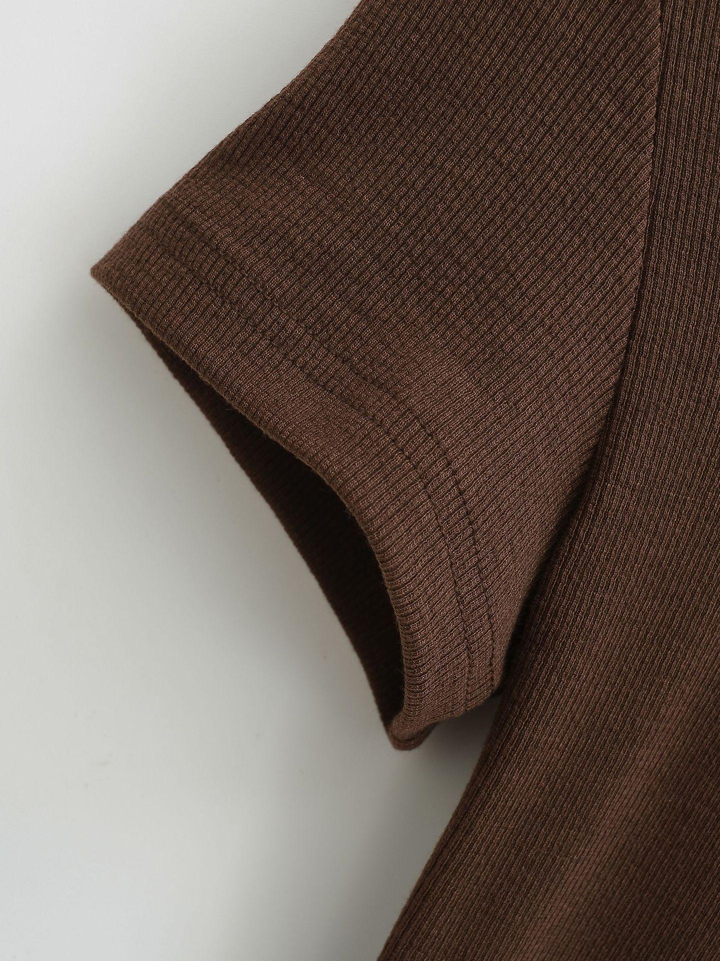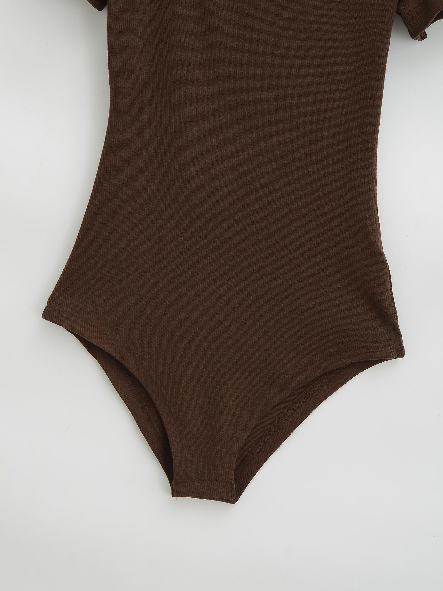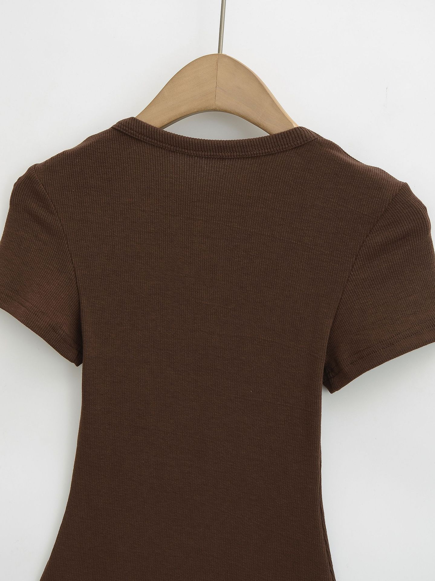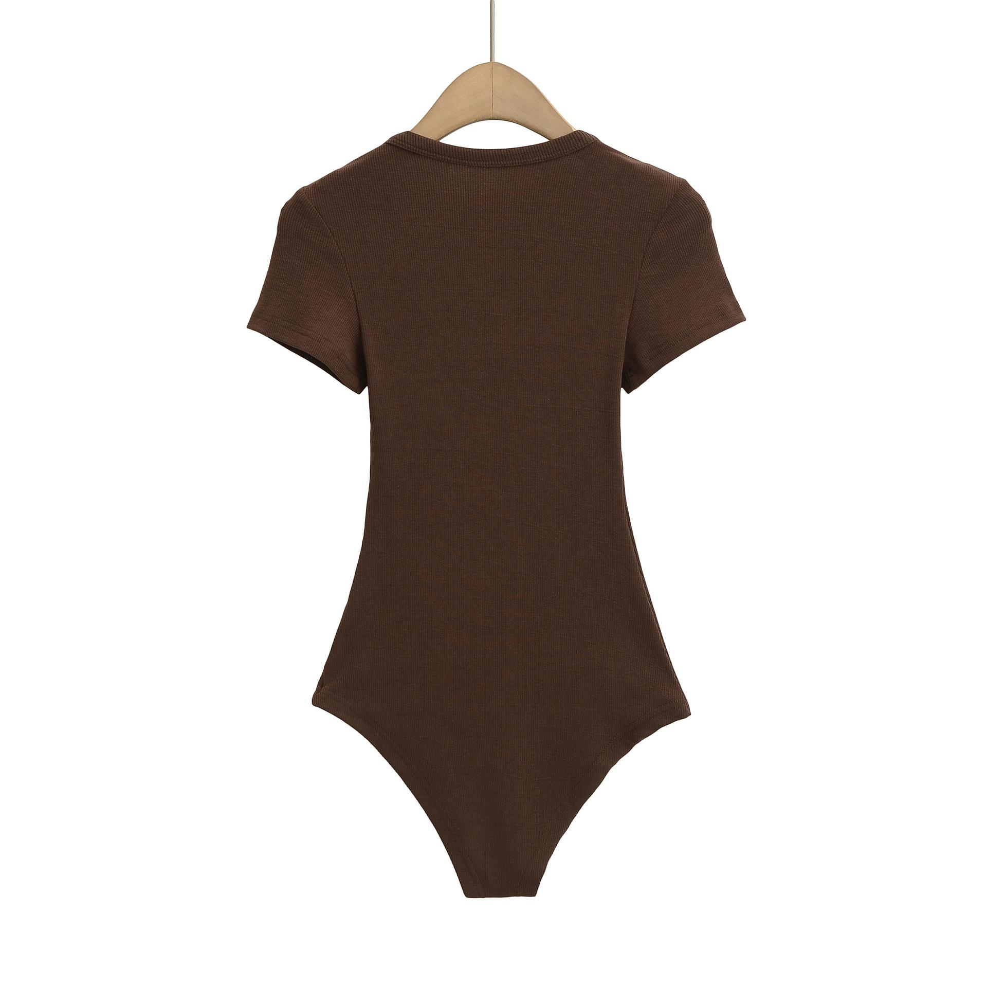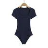 4259-Mono ajustado de estilo europeo y americano para mujer 2025 Nuevo Sexy Sexy de manga corta con cuello cuadrado Camiseta básica