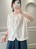 Camisa Bordada Diseño para Mujer Nicho Top de Manga Corta Verano 2025 Nuevo Coreano Cuello Redondo Holgada Ajustada
