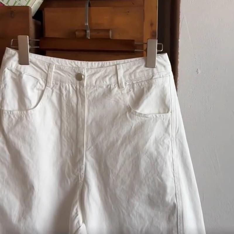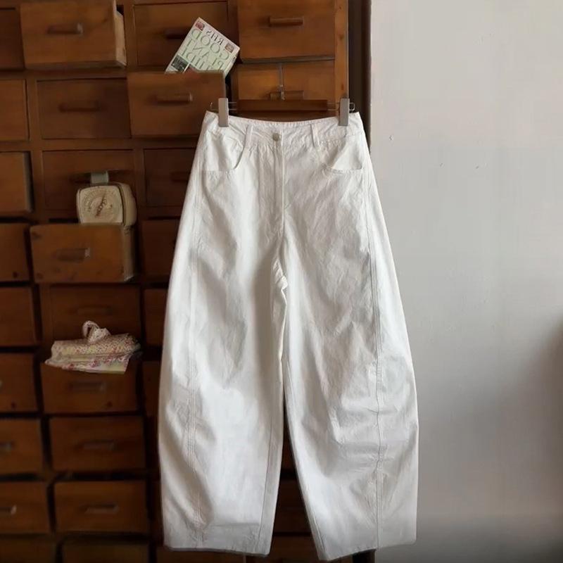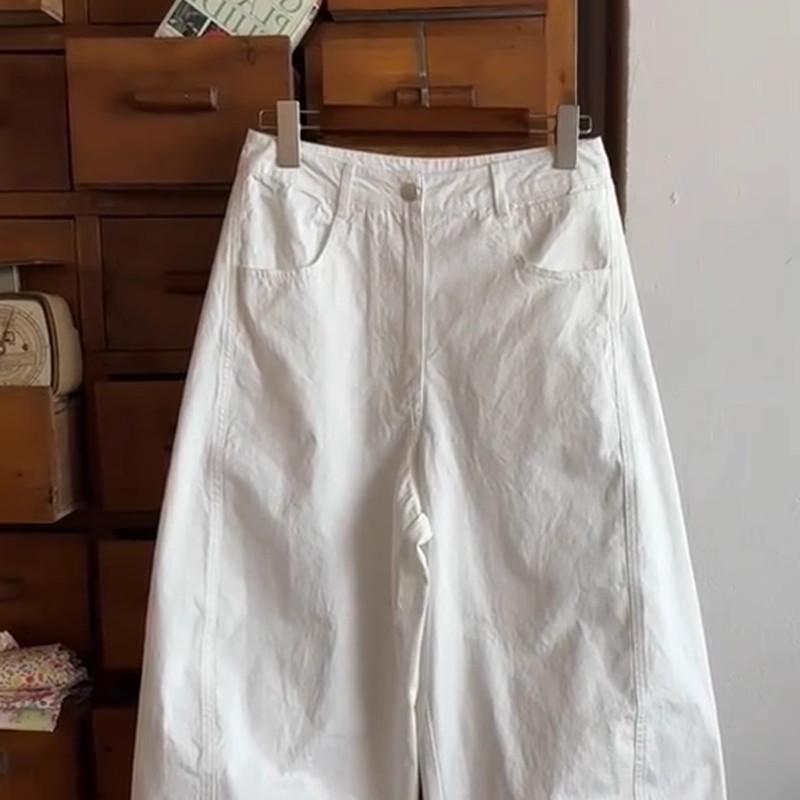 Pantalones blancos de talle alto, corte slim y casual de pierna ancha estilo coreano para mujer, verano 2025, nuevos pantalones harem holgados y relajados de nueve puntos