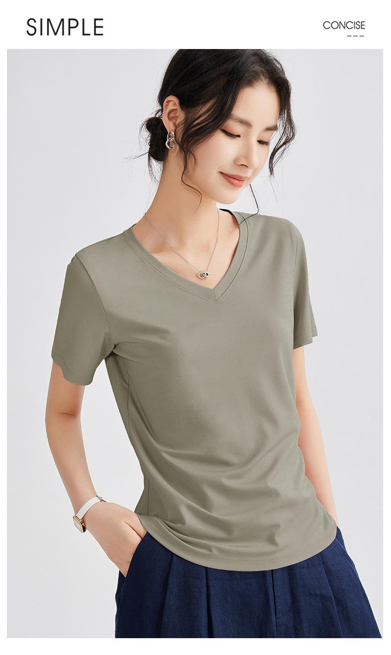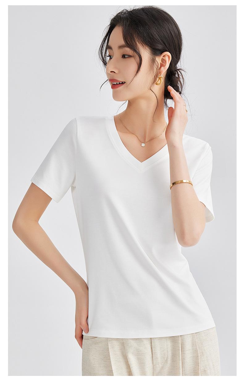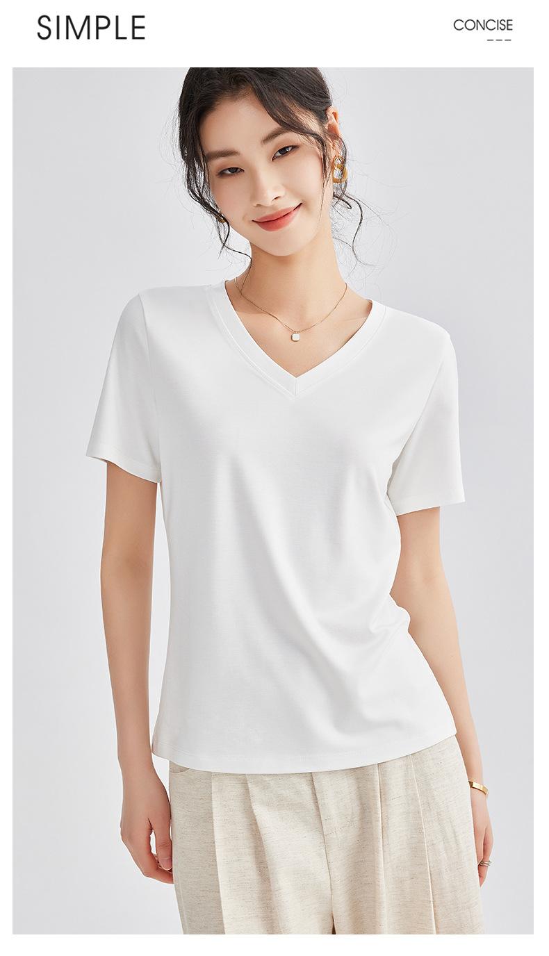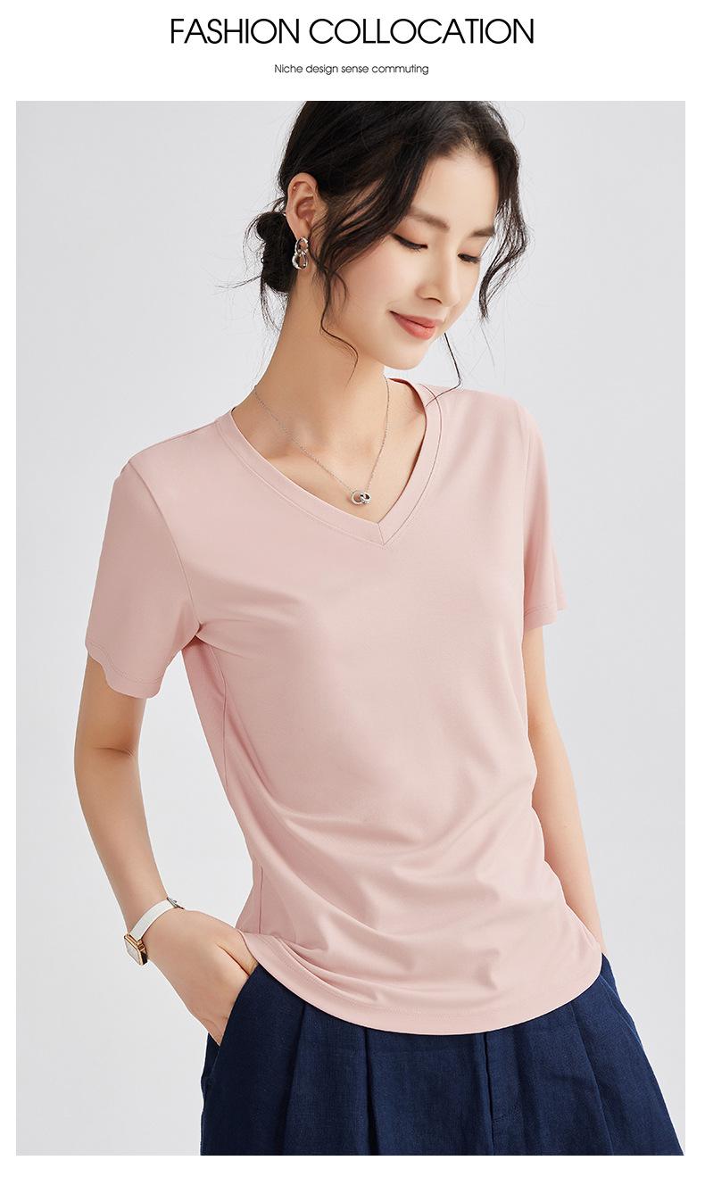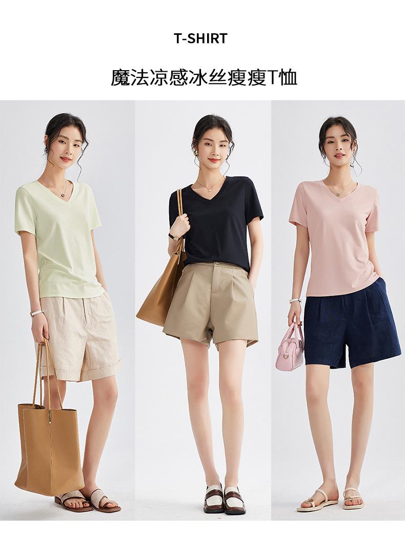 Compra Playera de Verano para Mujer de Manga Corta con Cuello en V y Hombros Descubiertos, Top Holgado y Delgado 2025 Nueva Playera Interior Básica de Seda de Hielo al por mayor en Joom.pro