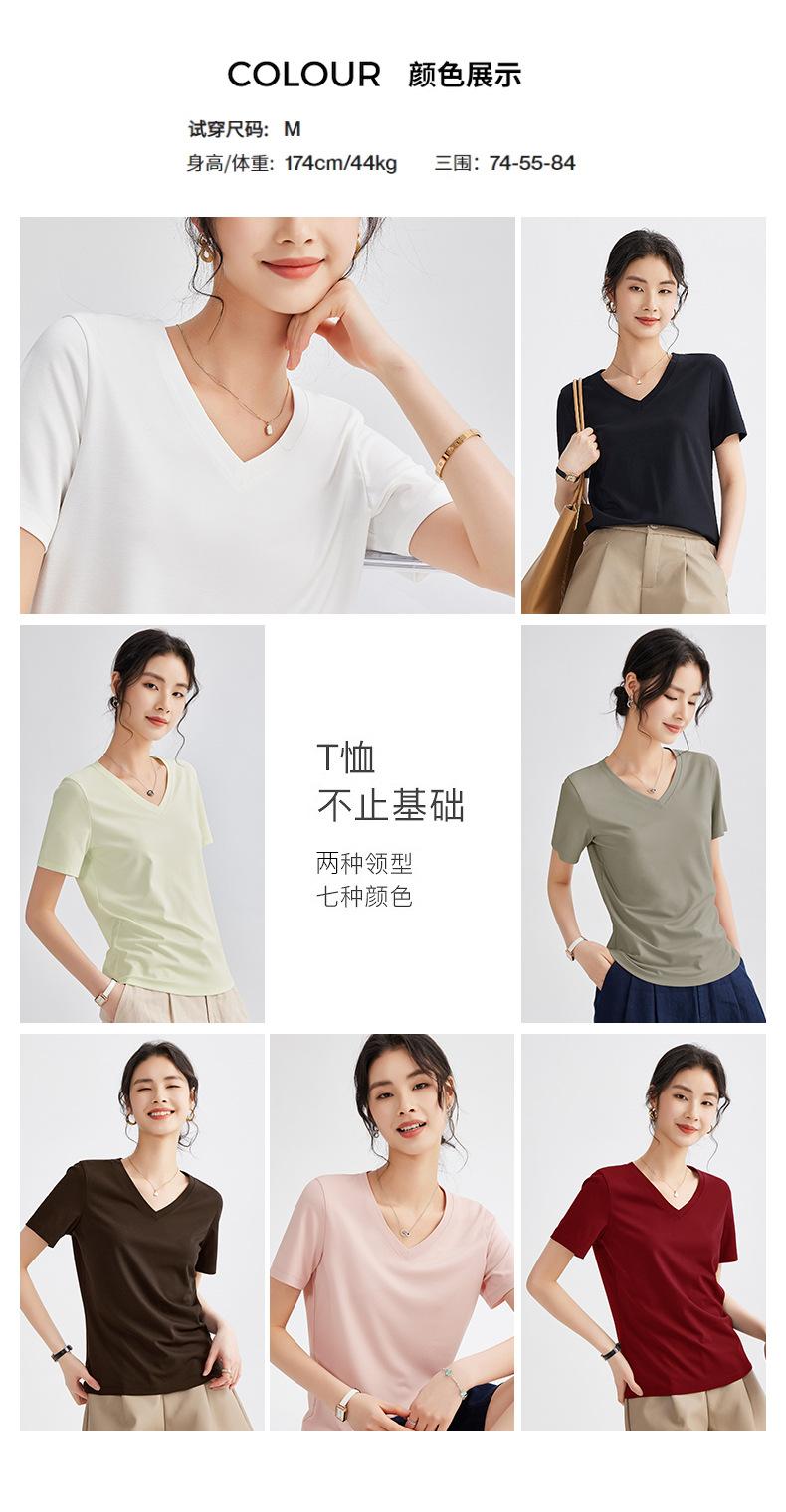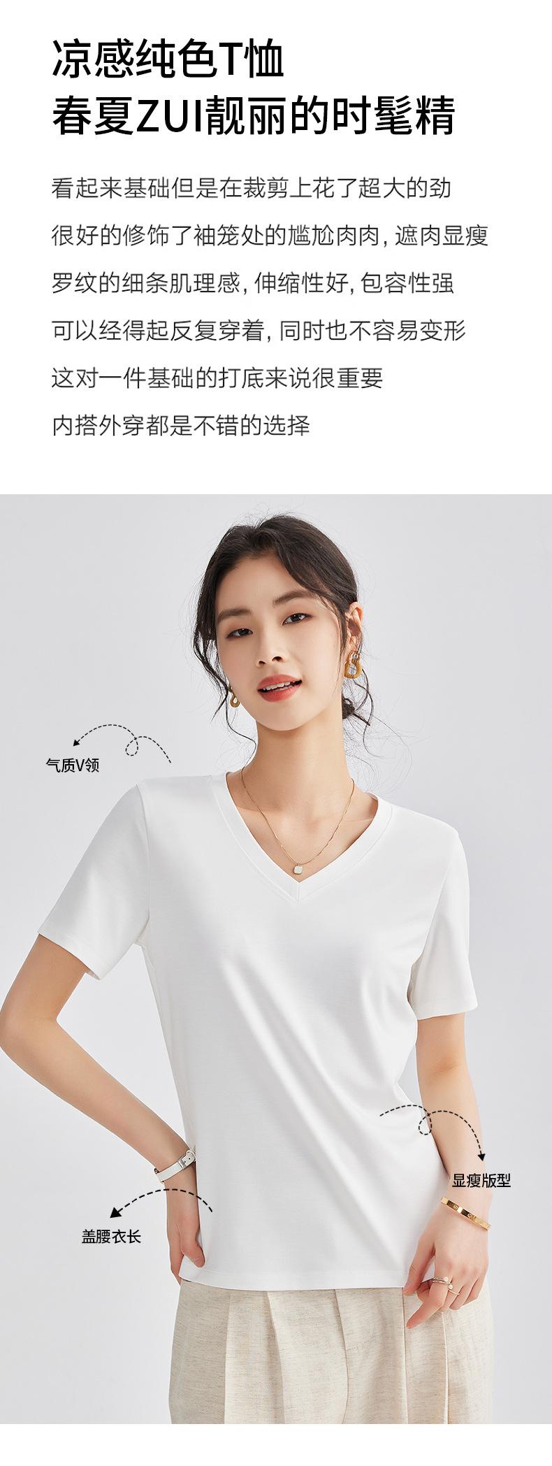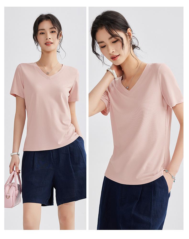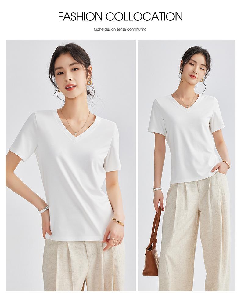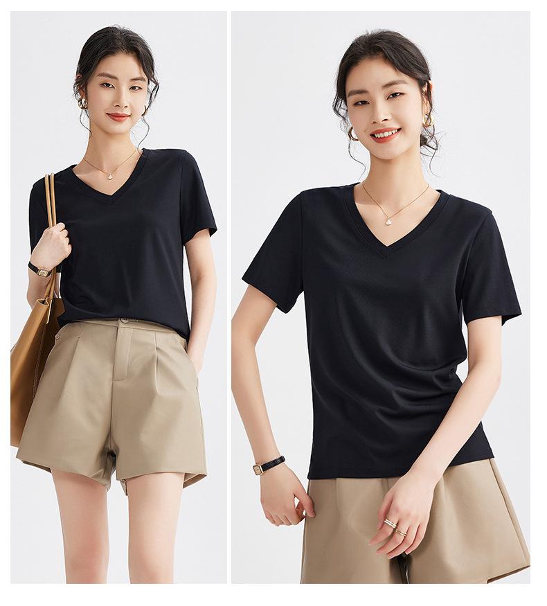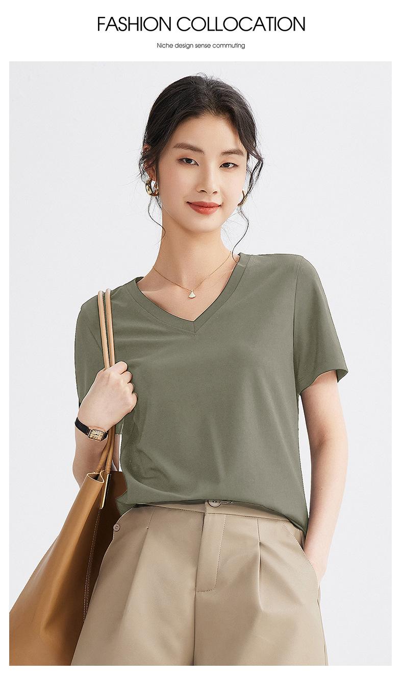 Compra Playera de Verano para Mujer de Manga Corta con Cuello en V y Hombros Descubiertos, Top Holgado y Delgado 2025 Nueva Playera Interior Básica de Seda de Hielo al por mayor en Joom.pro