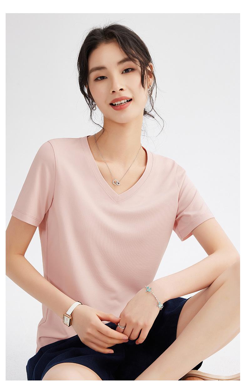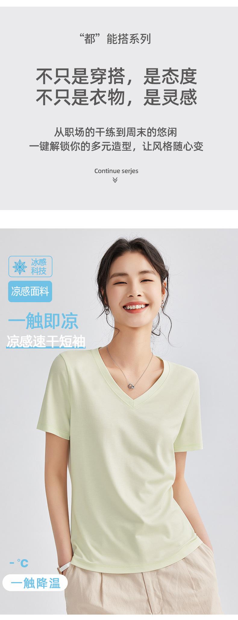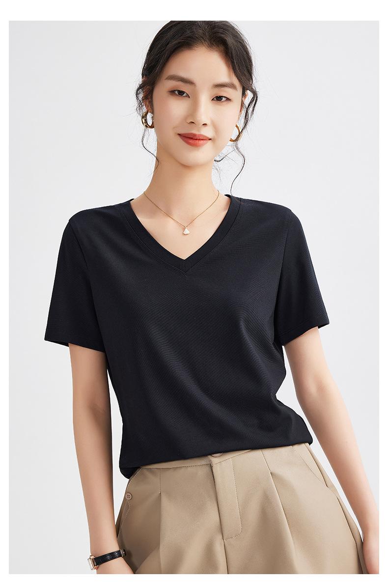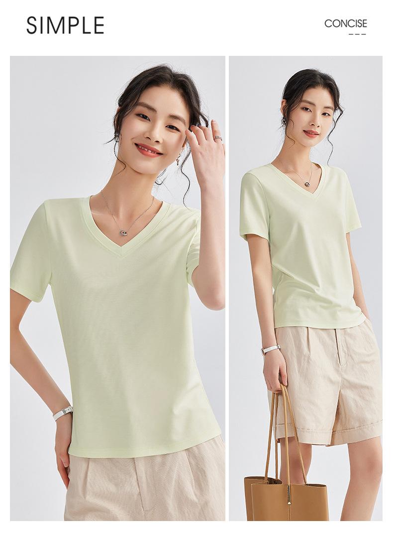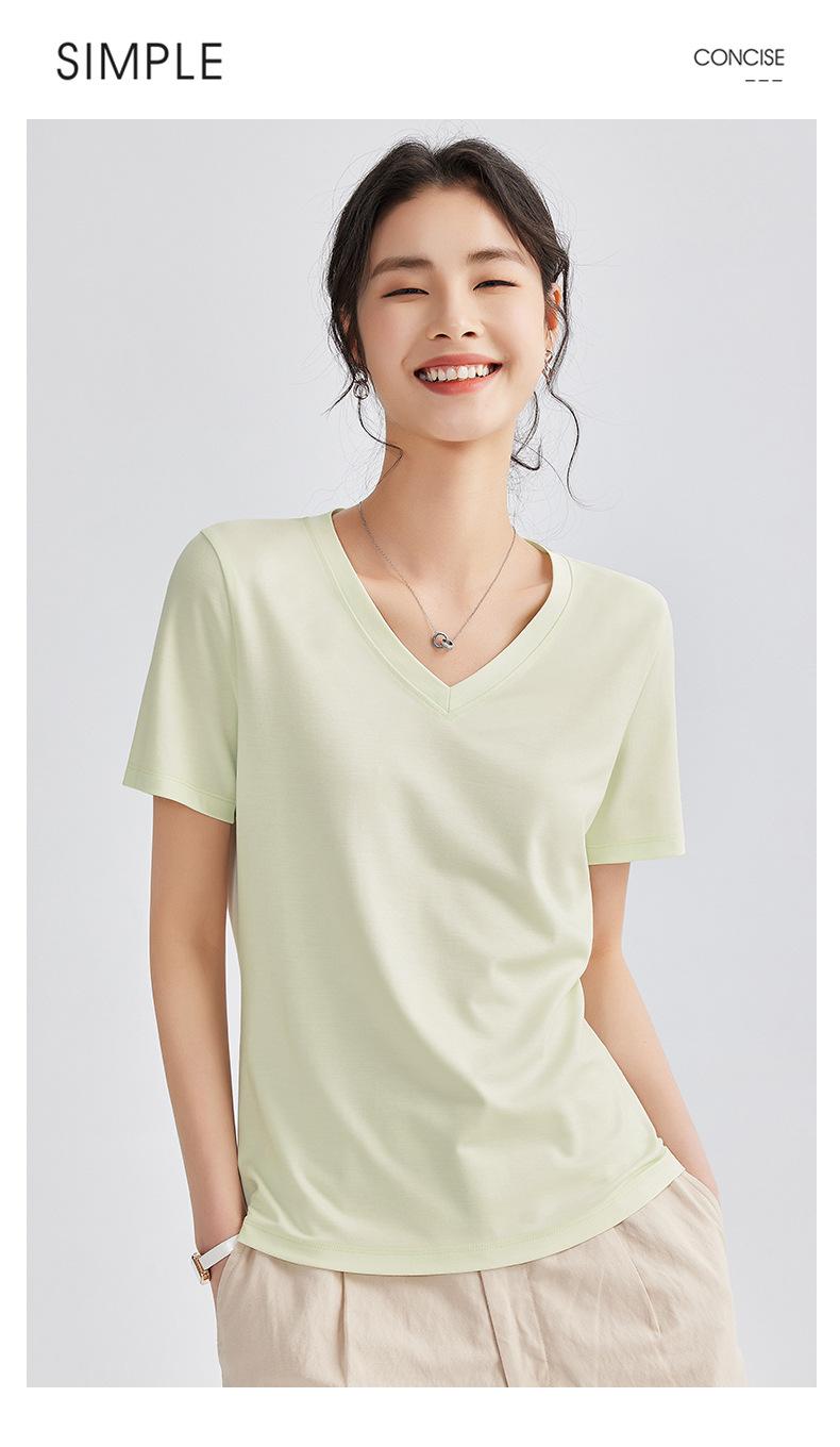 Compra Playera de Verano para Mujer de Manga Corta con Cuello en V y Hombros Descubiertos, Top Holgado y Delgado 2025 Nueva Playera Interior Básica de Seda de Hielo al por mayor en Joom.pro