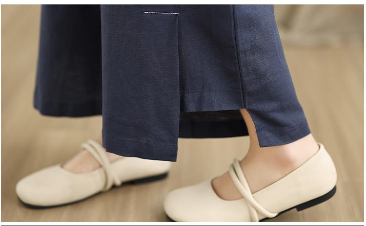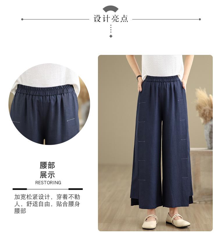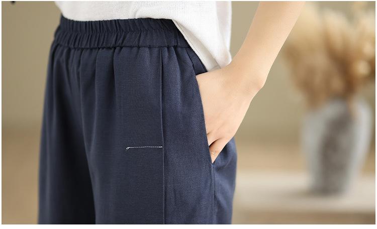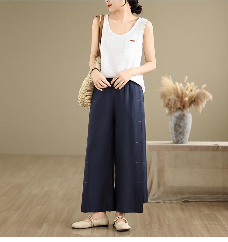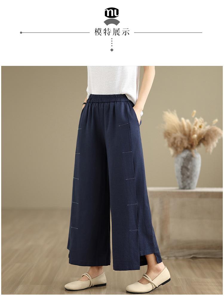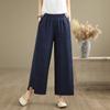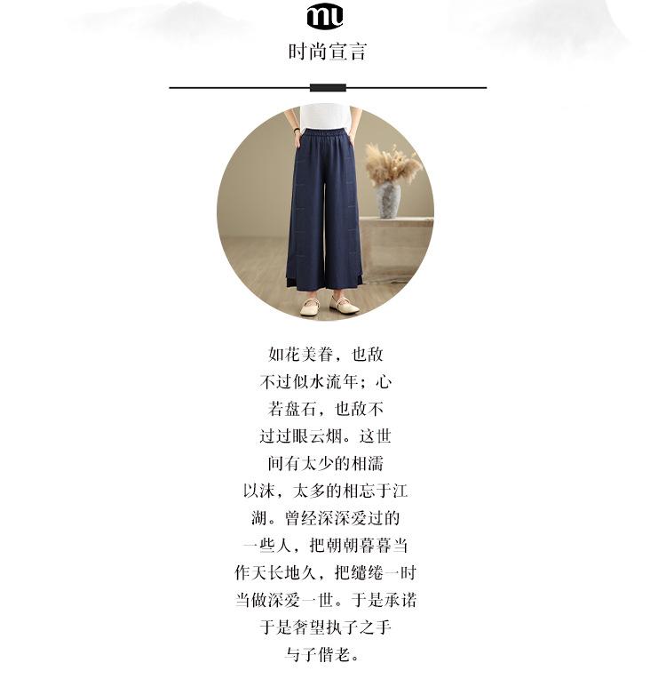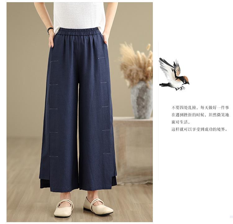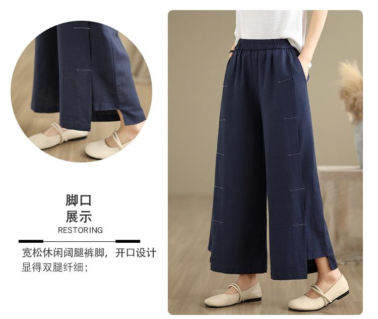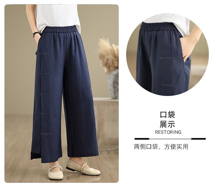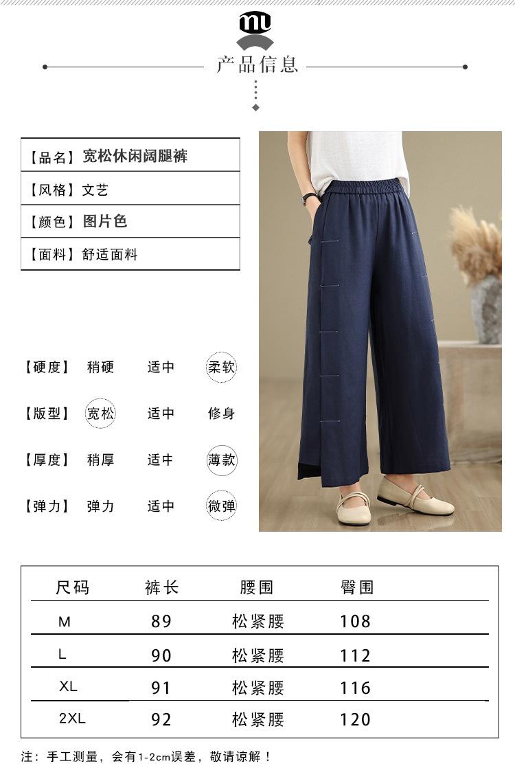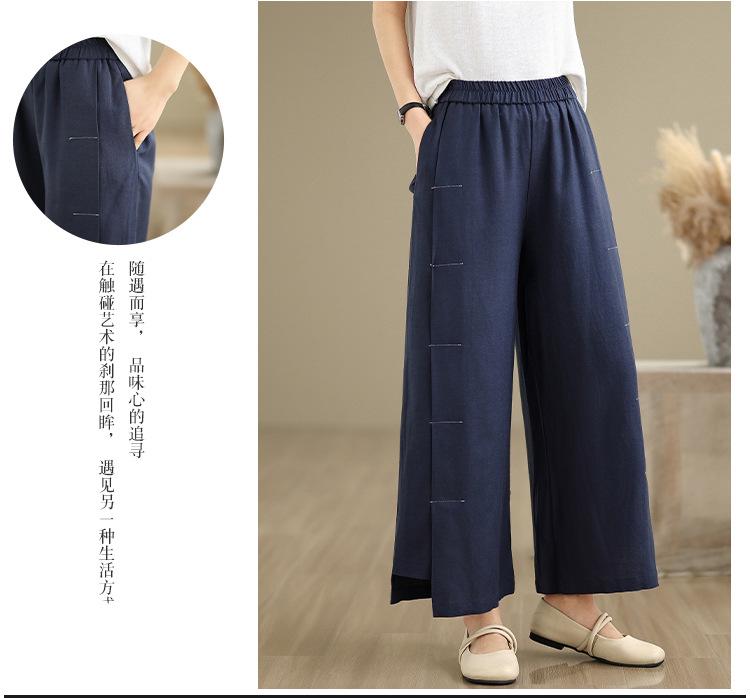 Foto real de la ropa de mujer nueva de primavera y verano 2025, talla grande personalizada, holgada, casual, literaria, de pierna ancha, versátil, pantalones retro para mujer