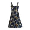 Francés 2022 Nuevo Vestido Floral con Tirantes Sexy Encaje con Cordones Cintura Adelgazante Abertura Lateral Vestido Midi por Encima de la Rodilla