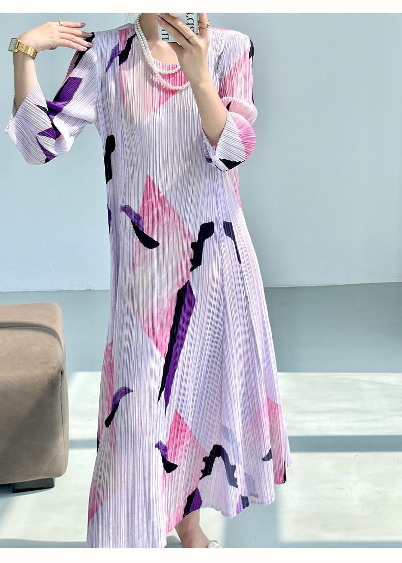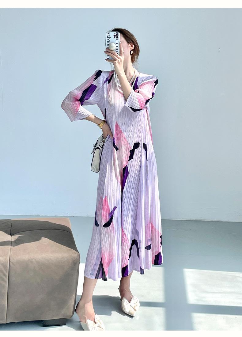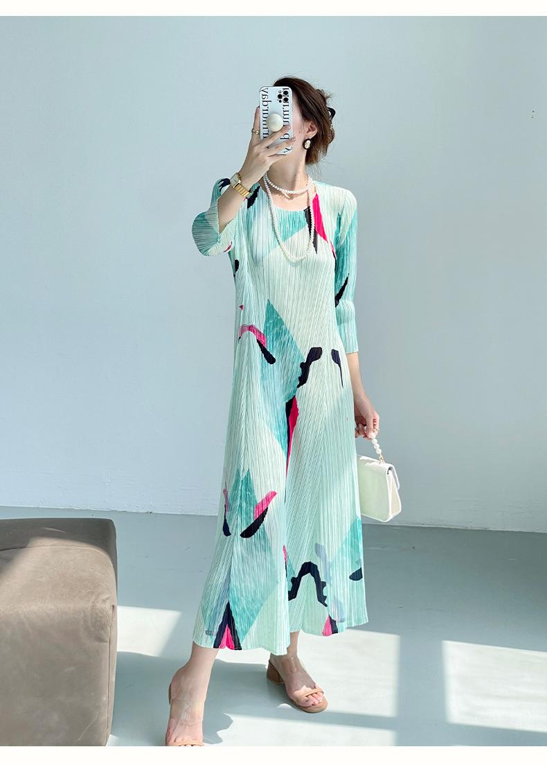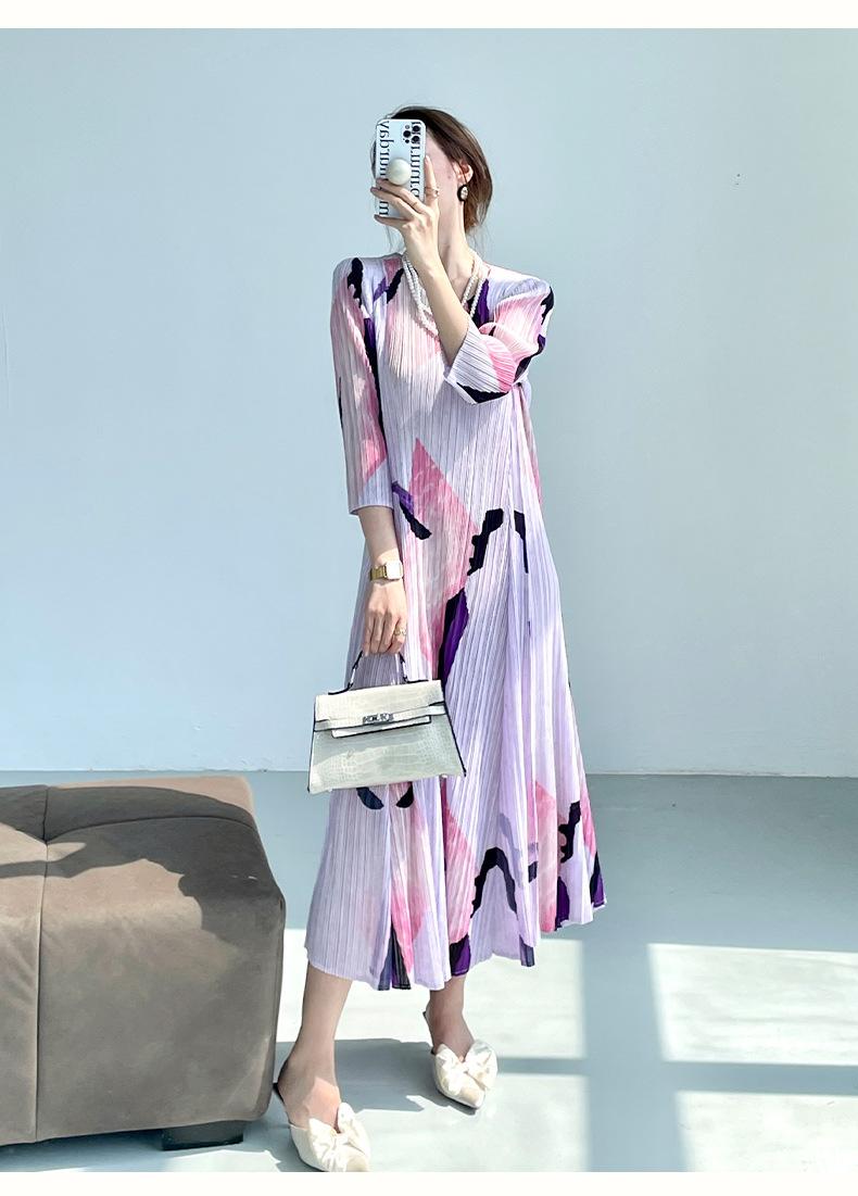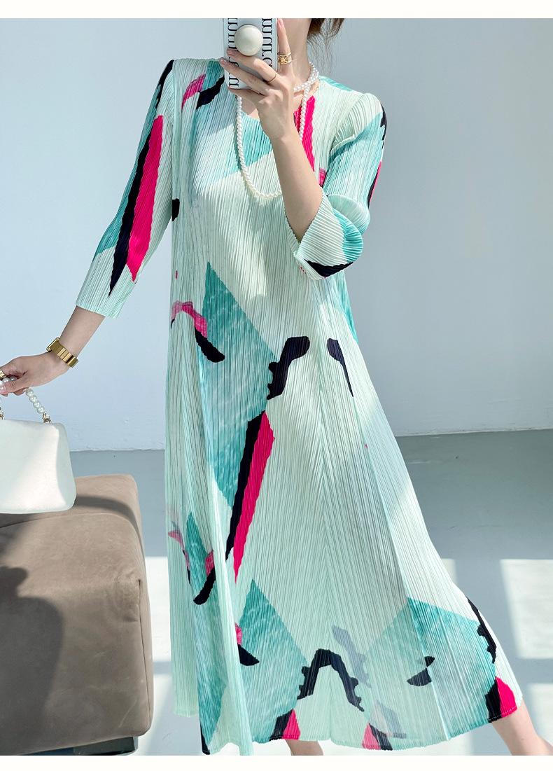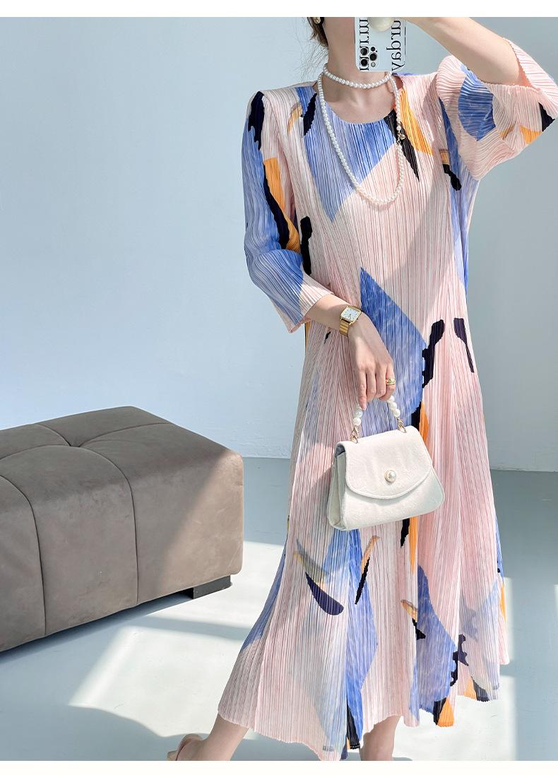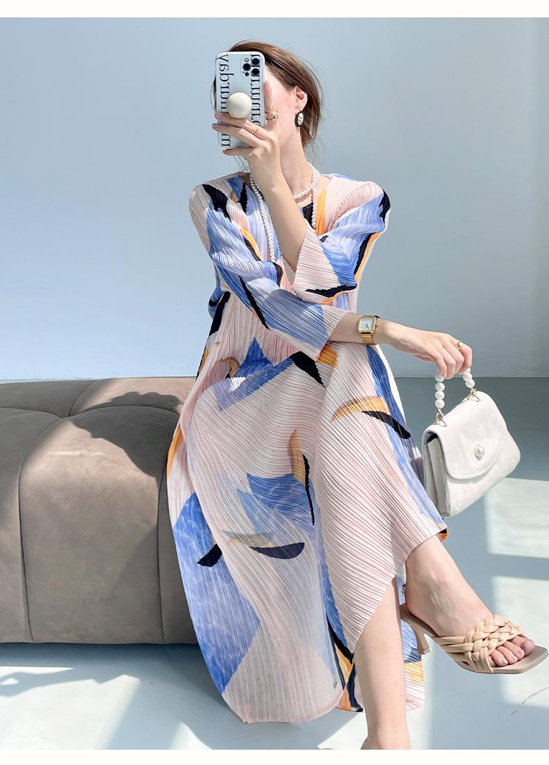 Compra Miyake 2025 Nuevo Otoño Moda Francesa Vestido Plisado Estampado Femenino Elegante Falda Midi al por mayor en Joom.pro