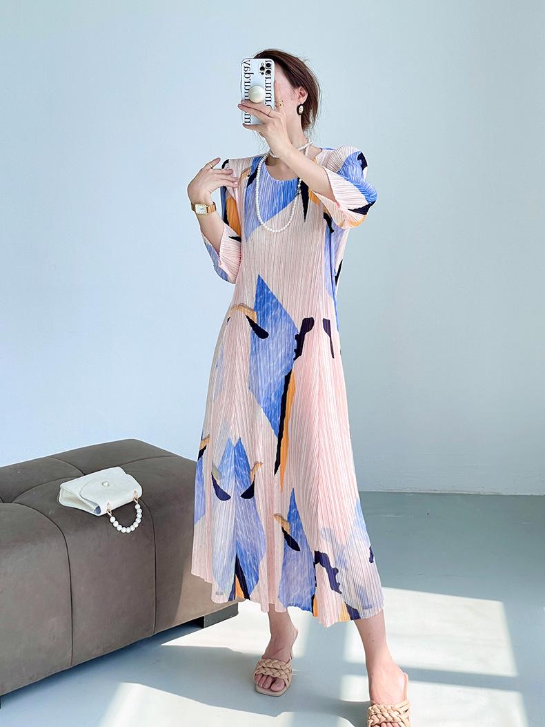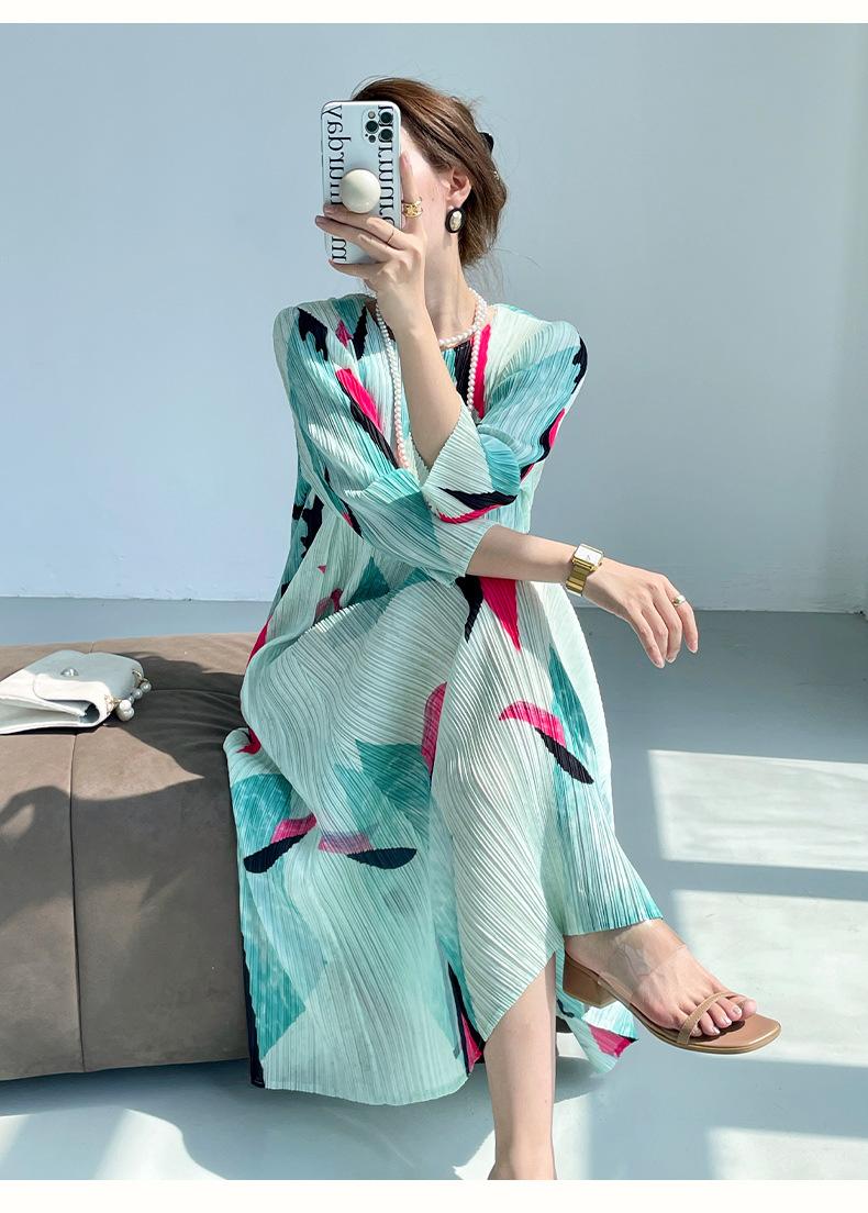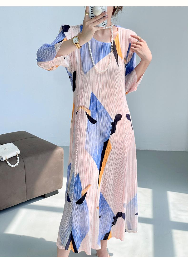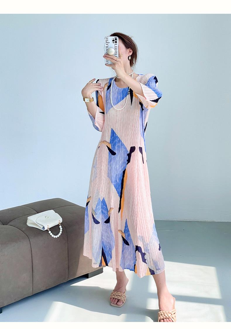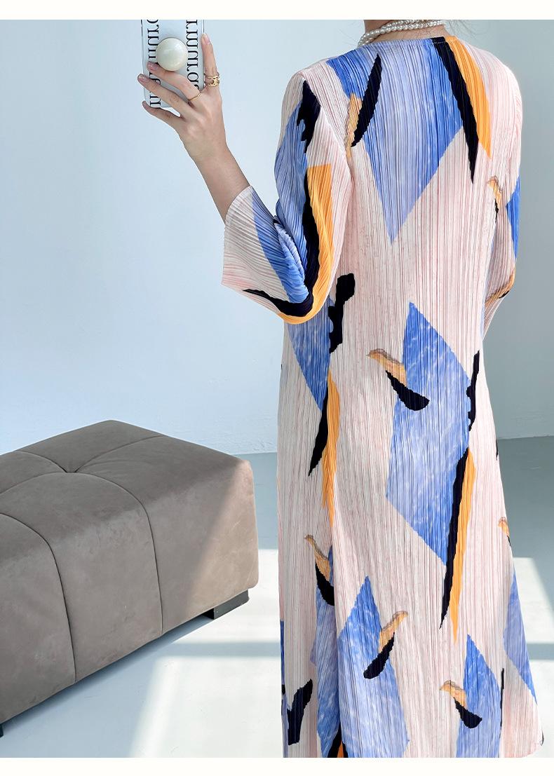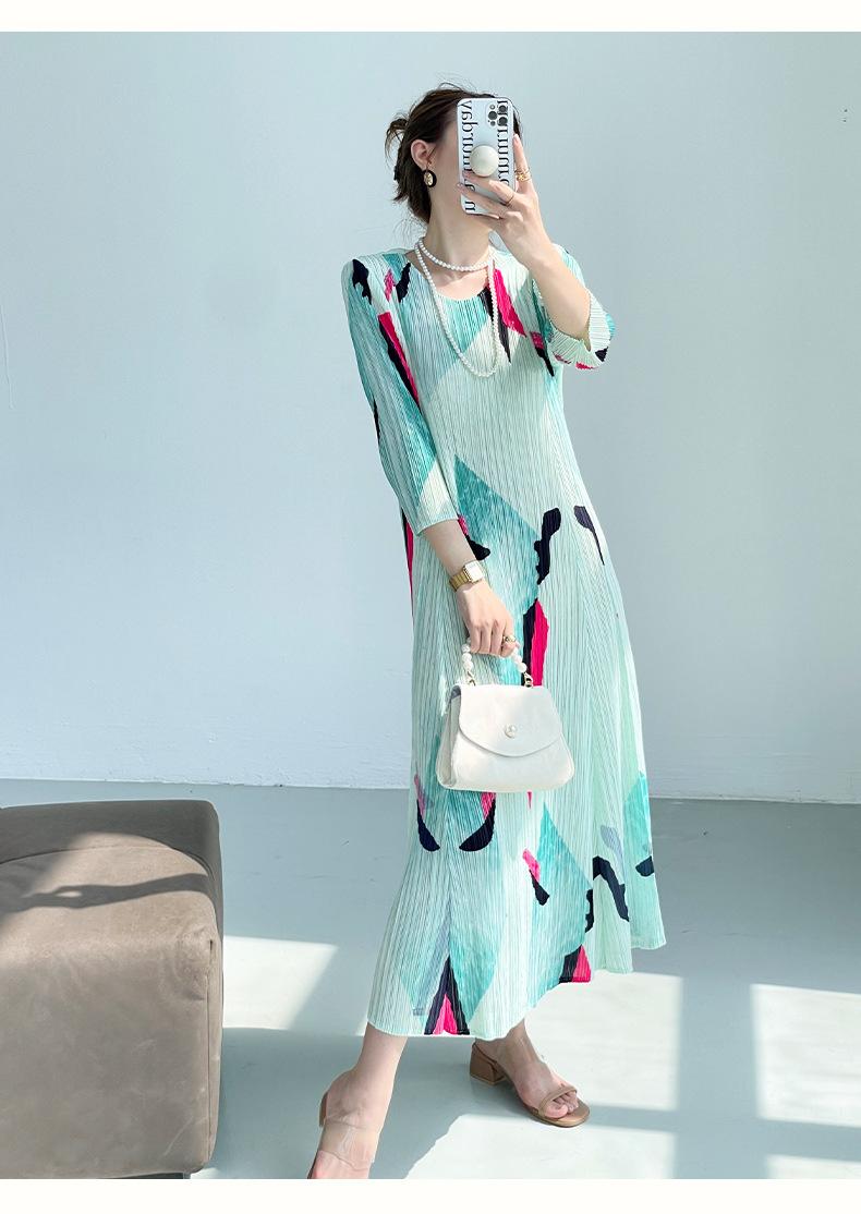 Compra Miyake 2025 Nuevo Otoño Moda Francesa Vestido Plisado Estampado Femenino Elegante Falda Midi al por mayor en Joom.pro