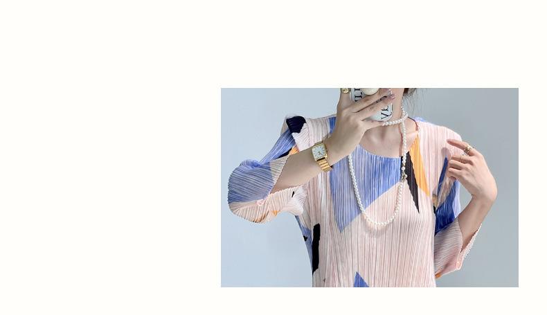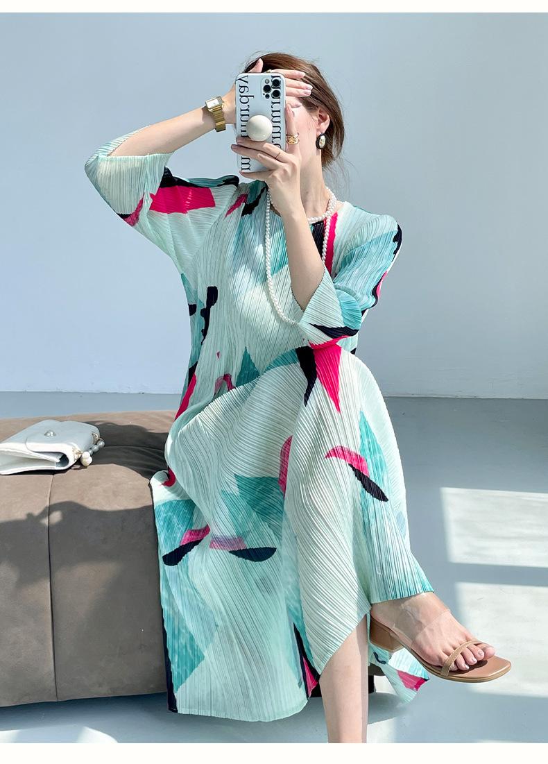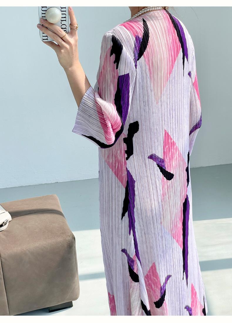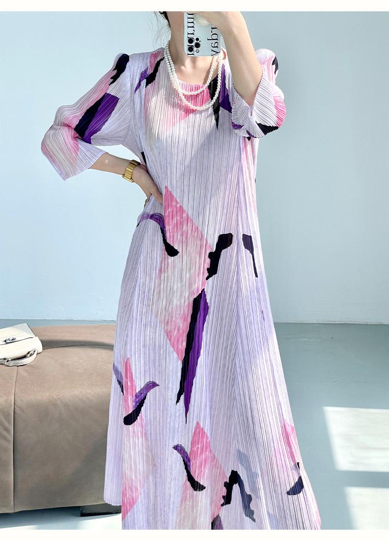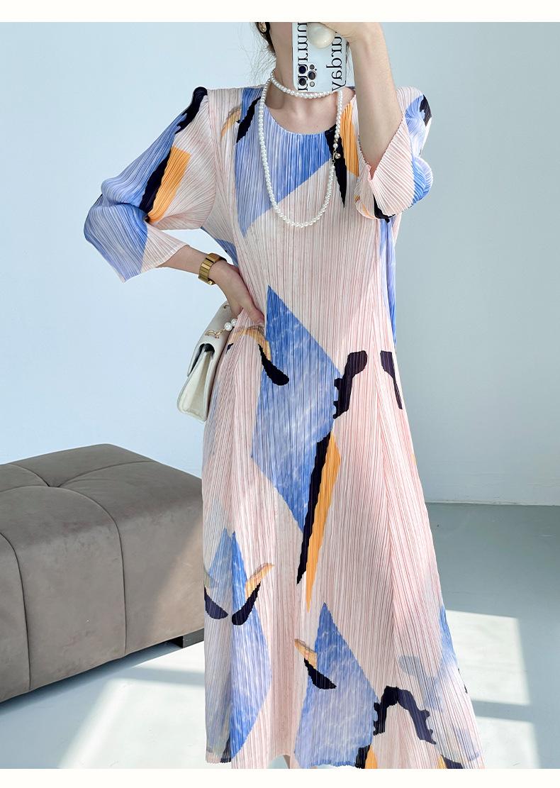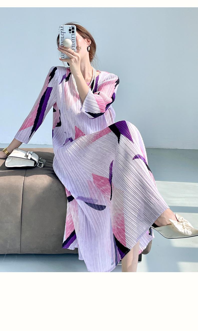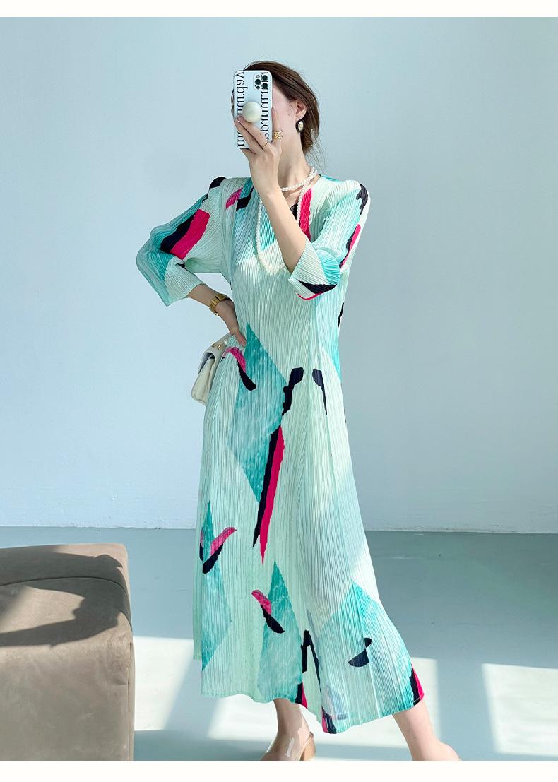 Compra Miyake 2025 Nuevo Otoño Moda Francesa Vestido Plisado Estampado Femenino Elegante Falda Midi al por mayor en Joom.pro