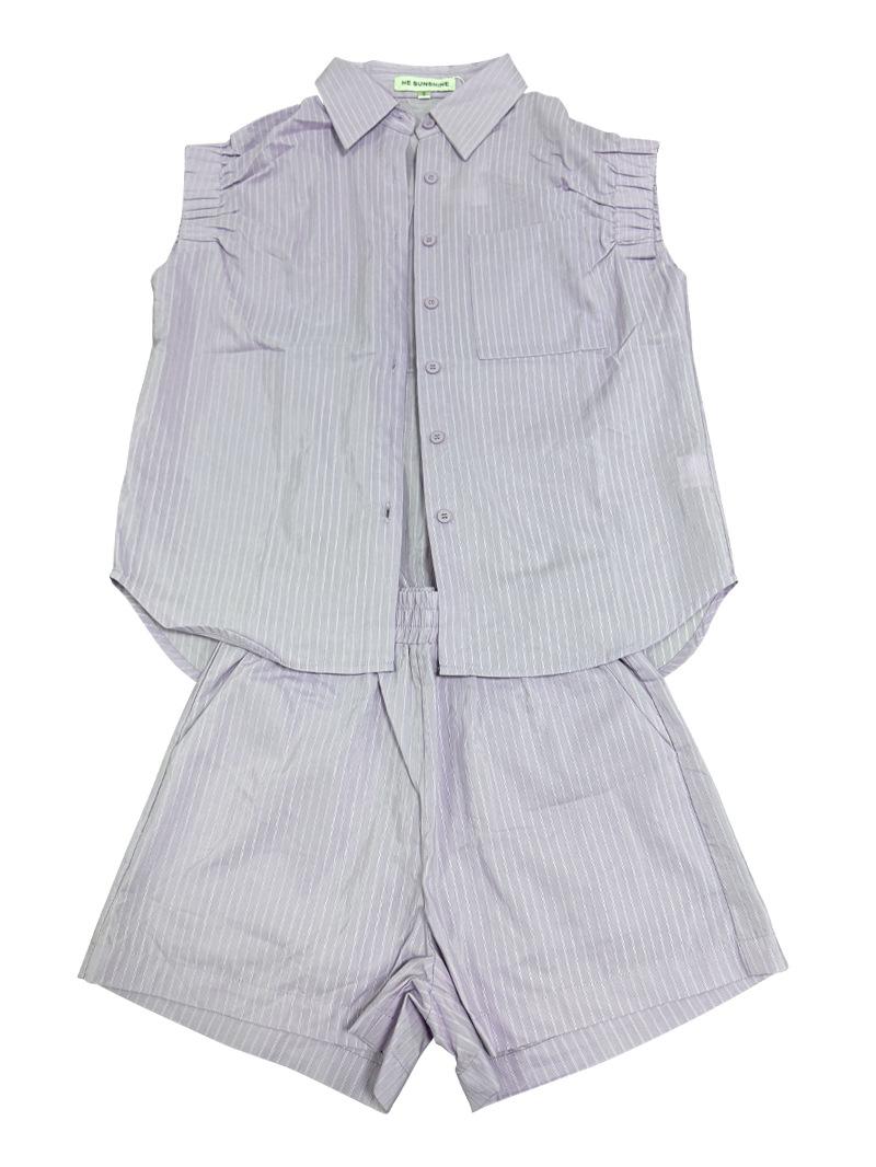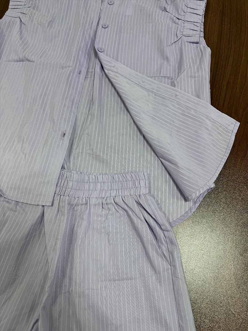 Conjunto de dos piezas de verano nuevo personalizado para mujer, estilo moderno y dulce que reduce la edad, camisa morada sin mangas y shorts.