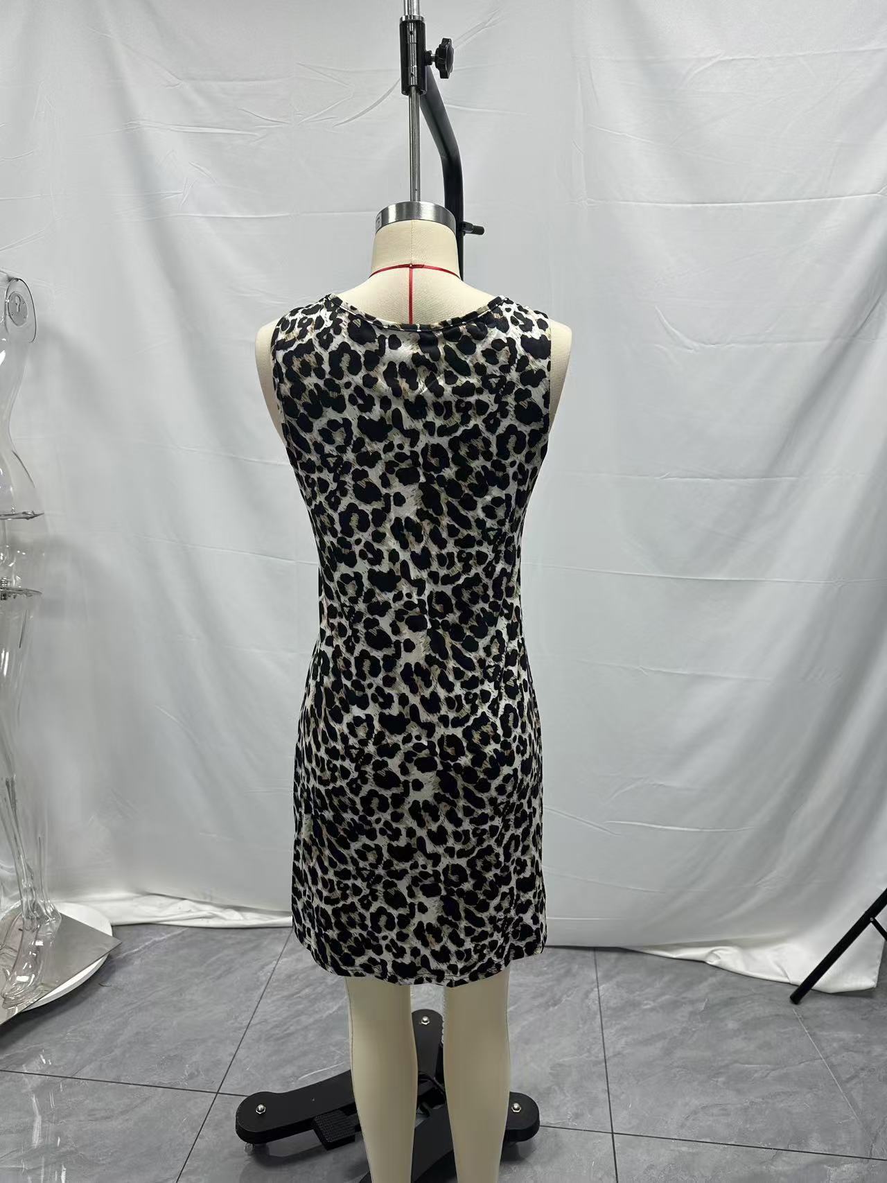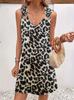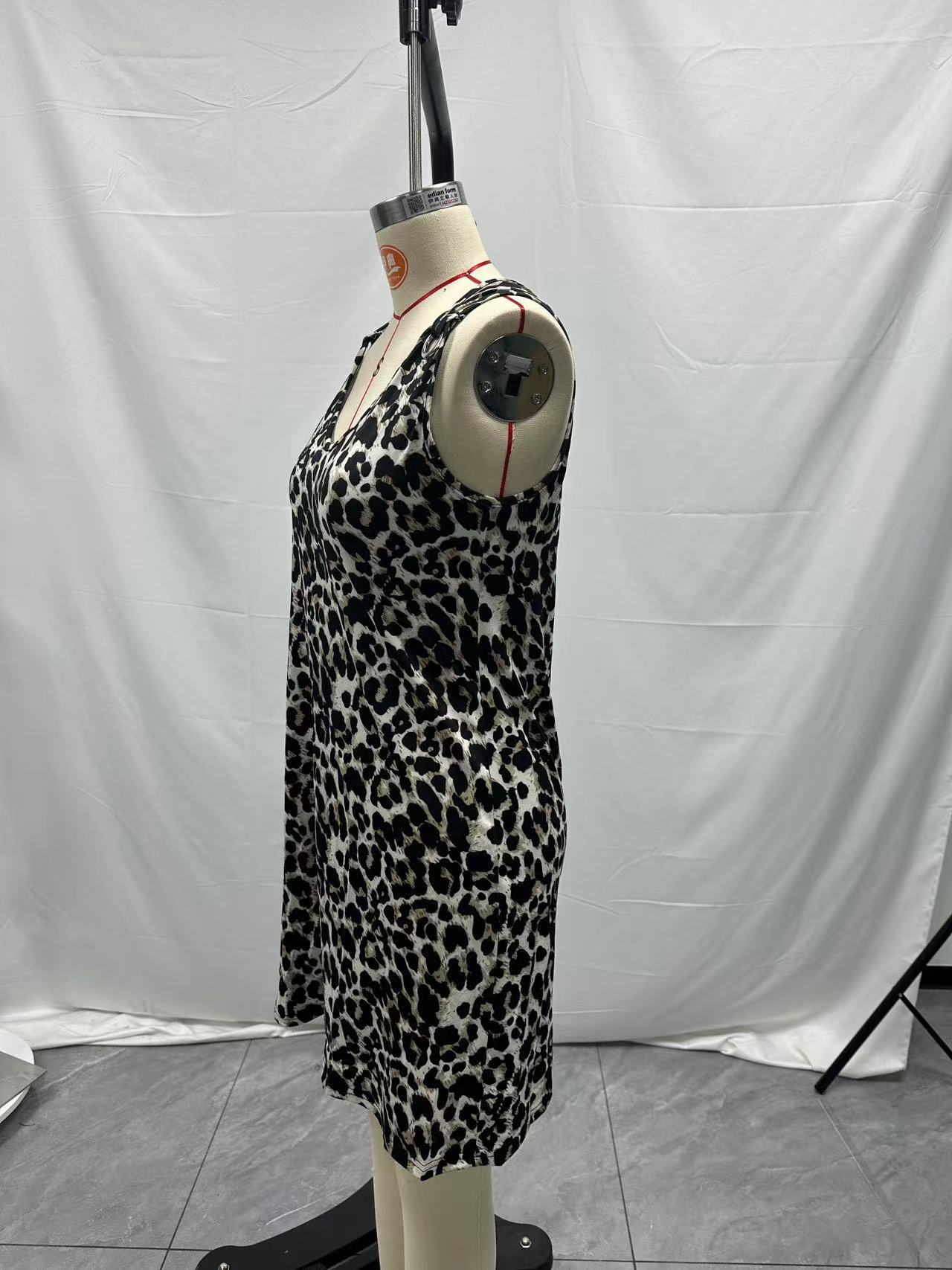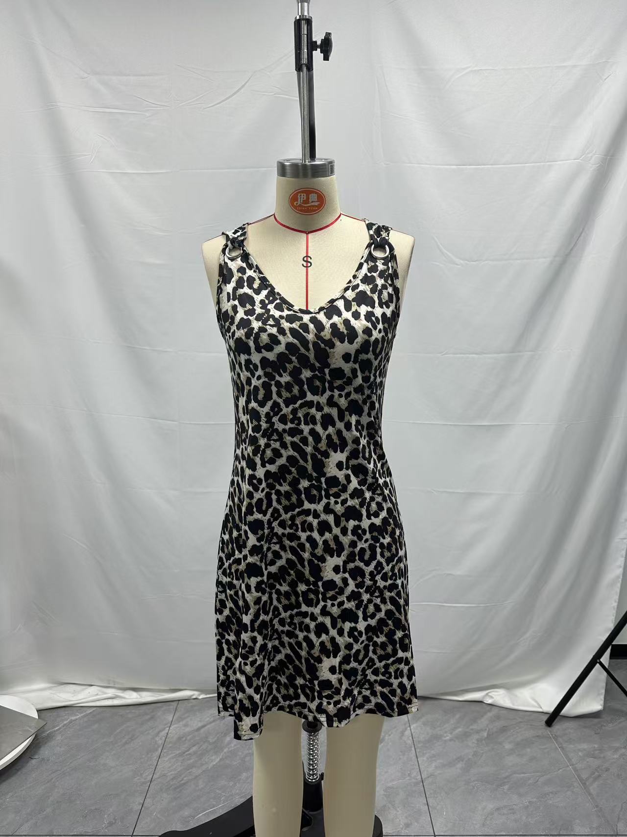 2025 Transfronterizo Europeo y Americano Amazon Estación Independiente Primavera y Verano Vestido sin Mangas con Cuello en V y Botones Metálicos para Mujer Estampado de Leopardo