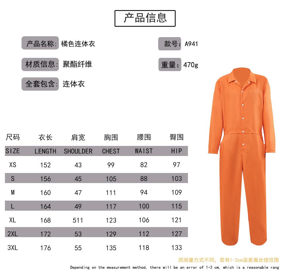 Disfraz de Prisionero de Halloween Disfraz de Prisionero Disfraz Unisex para Adulto Traje Disfraz de Personaje de Película Disfraz