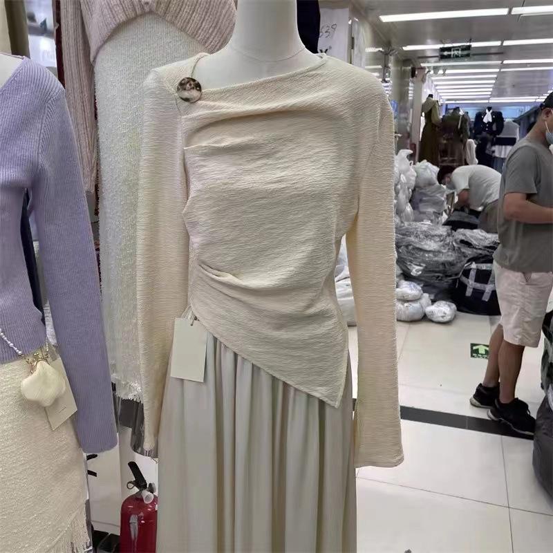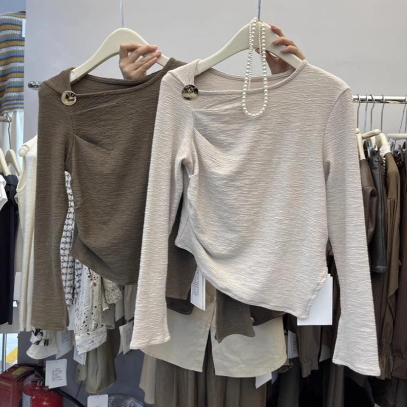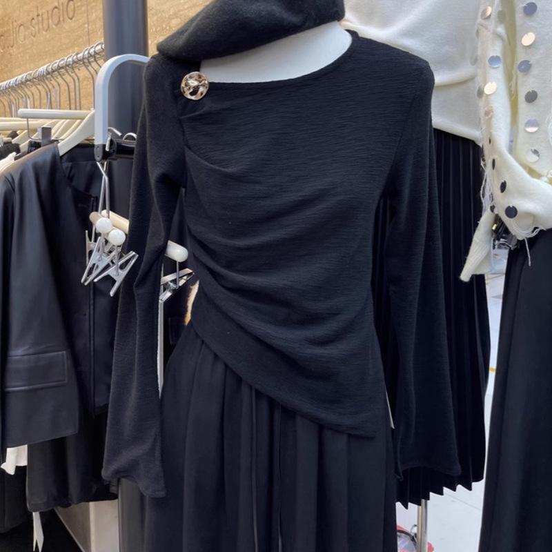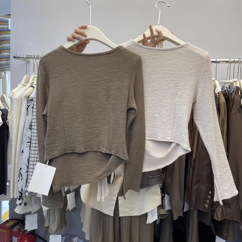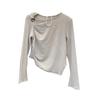Primavera 2024 nuevo elegante para mujer versátil dobladillo irregular adelgazante manga larga camiseta diseño sentido nicho top