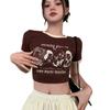 Playera Estampada Retro Americana de Verano 2025 para Mujer Color de Contraste Cuello Redondo Ombliguera Top Entallado de Manga Corta para Mujer