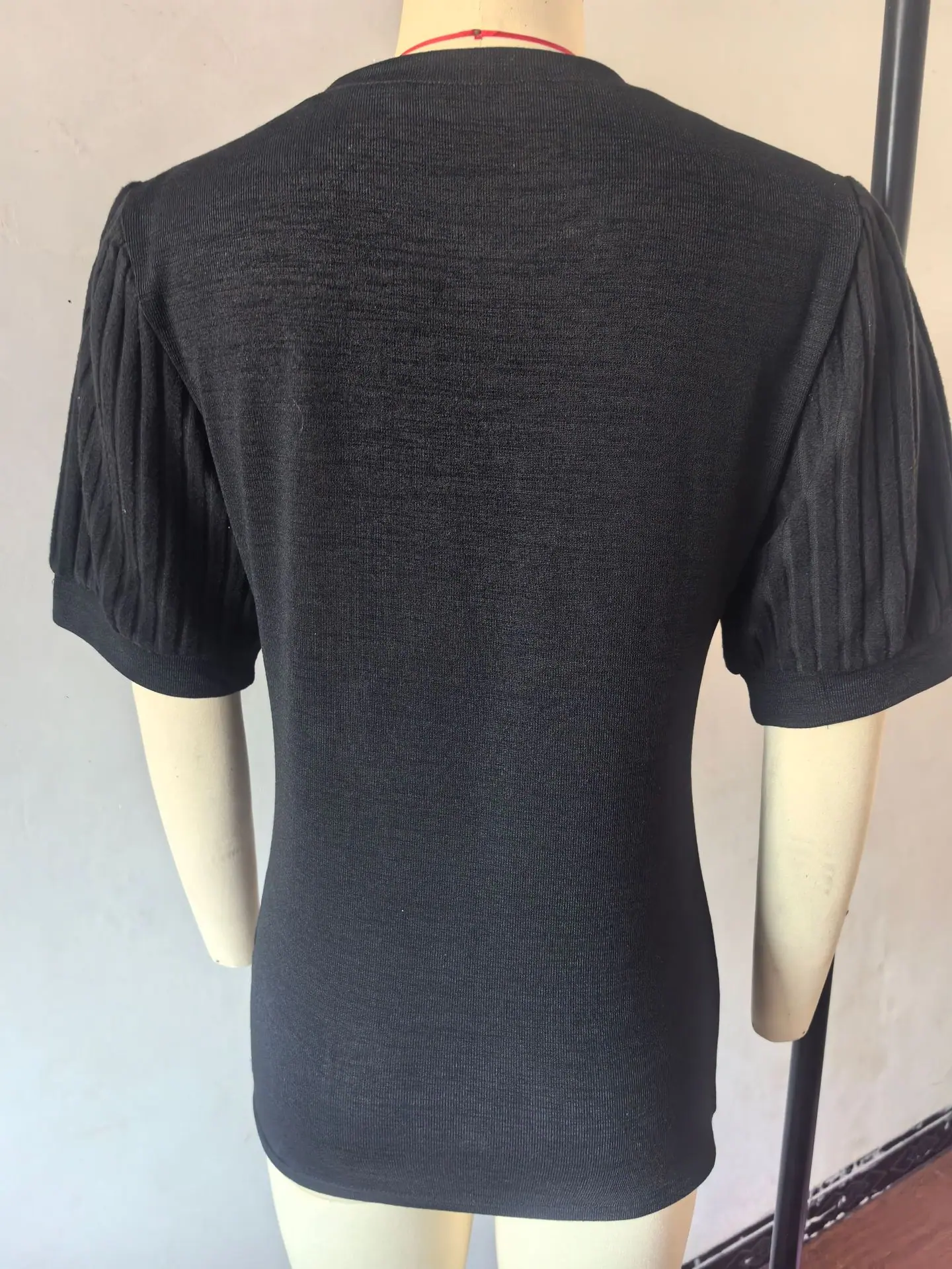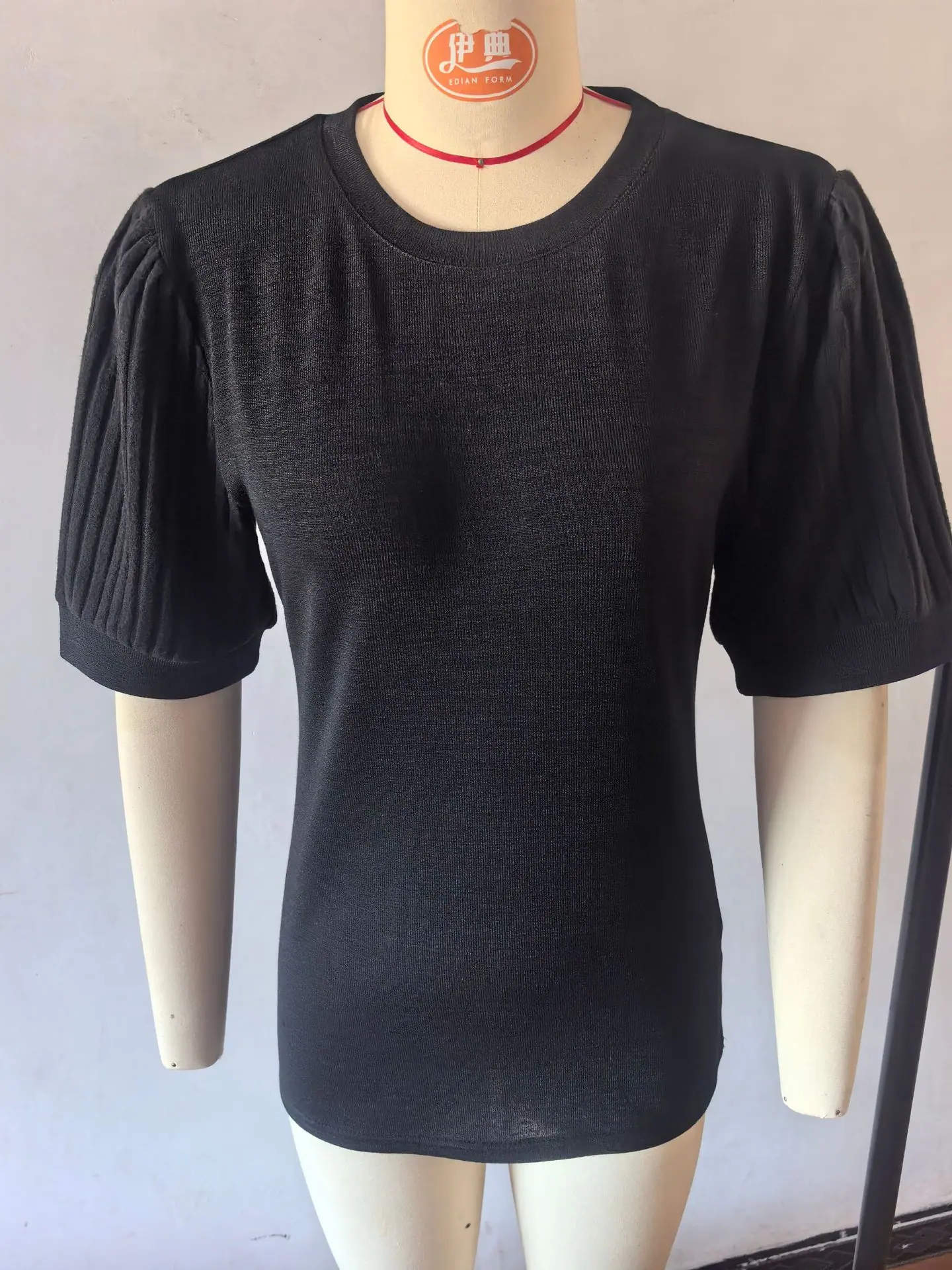 2025 Europeo y Americano Transfronterizo Nuevo Verano Casual Color Sólido Cuello Redondo Holgado Manga Corta Tops para Mujer