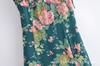 Europeo y Americano 2022 Verano Nuevo Mujer Cuello en V Estampado Tirantes Cintura Alta Abertura Retro Ajustado Adelgazante Vestido
