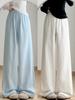 Pantalones blancos de verano para mujer, cintura alta, algodón y lino, mezclilla, pantalones de trapeador, versión estrecha, pierna ancha, pantalones casuales, delgados, holgados, largos