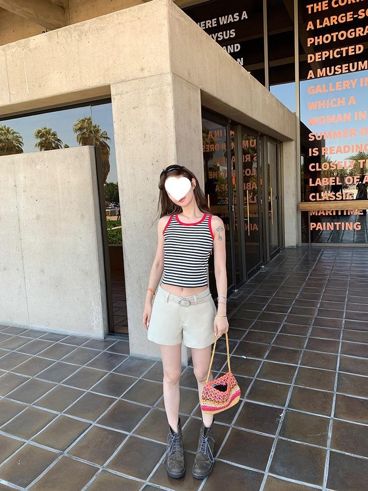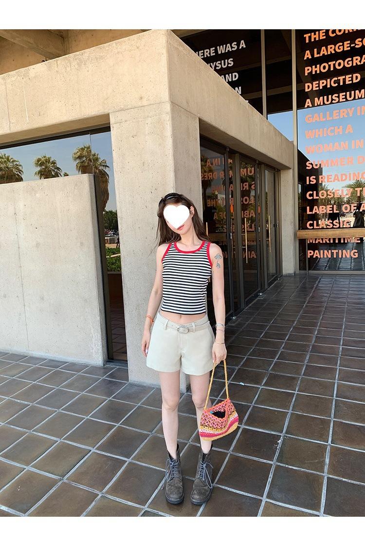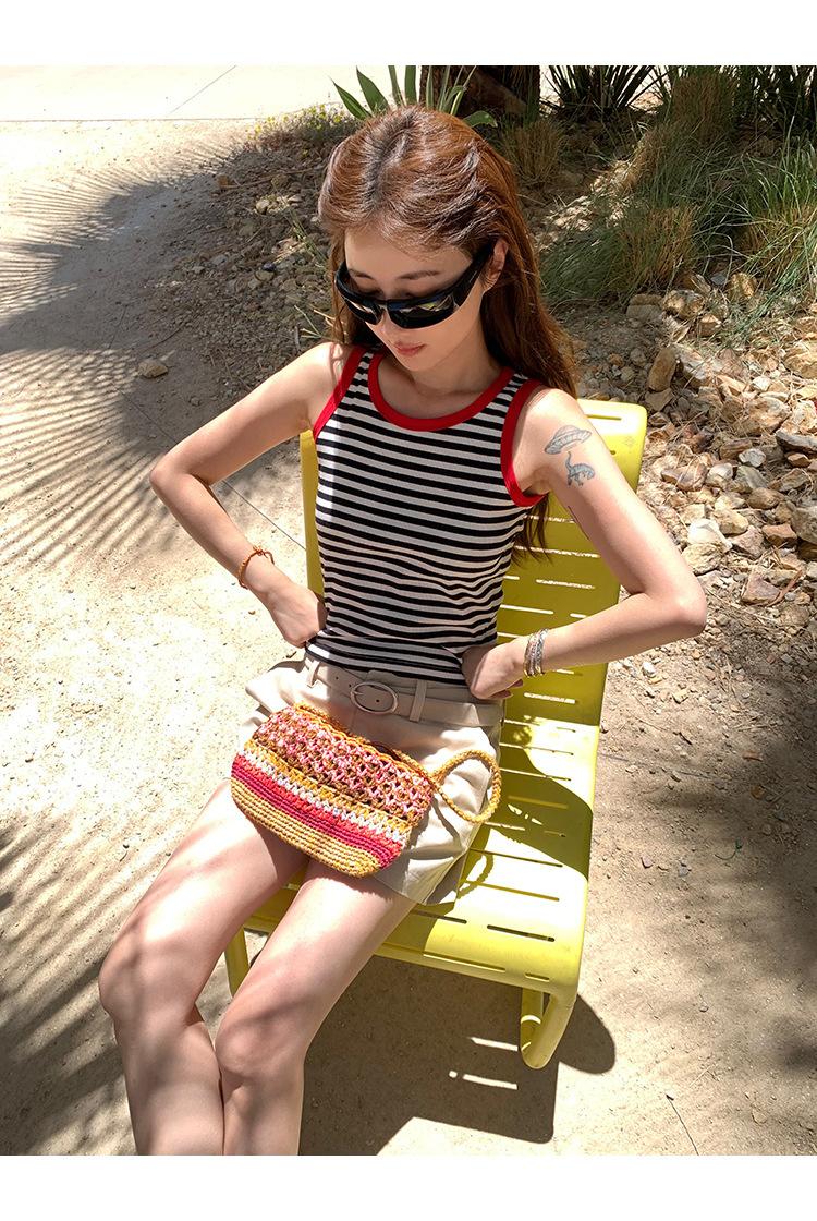 El chaleco a rayas está hecho de tela de mezcla de algodón