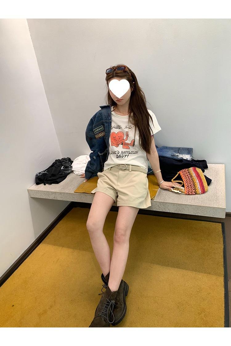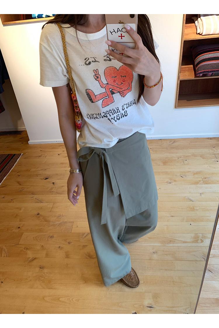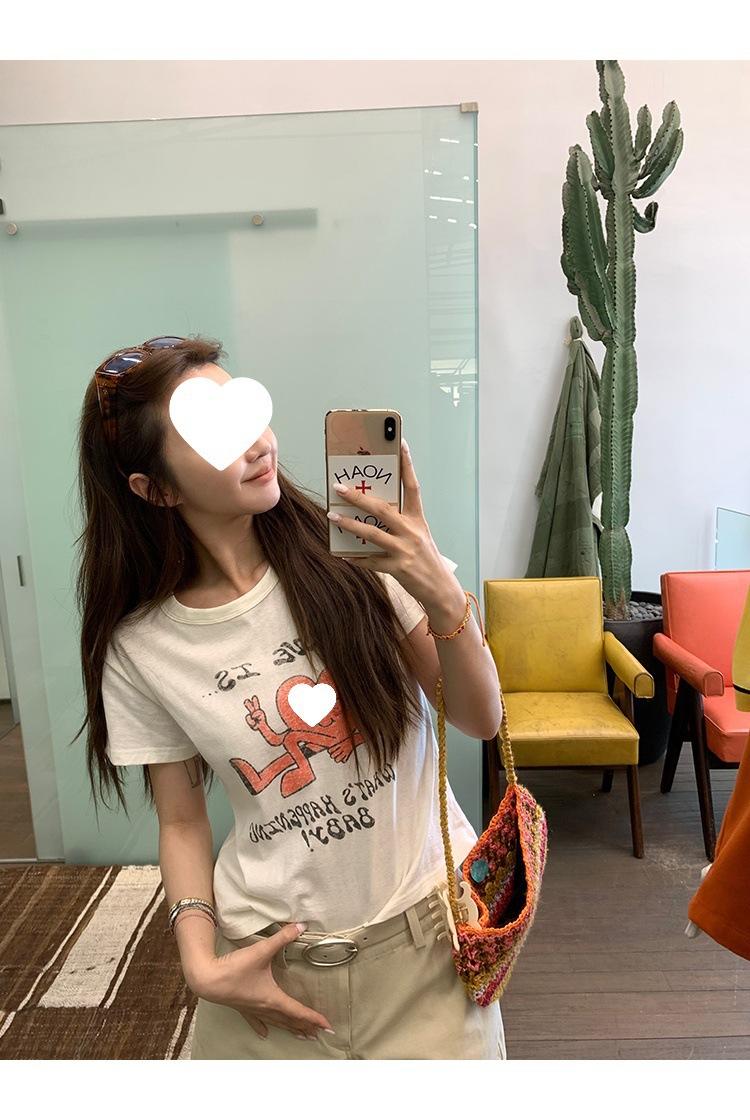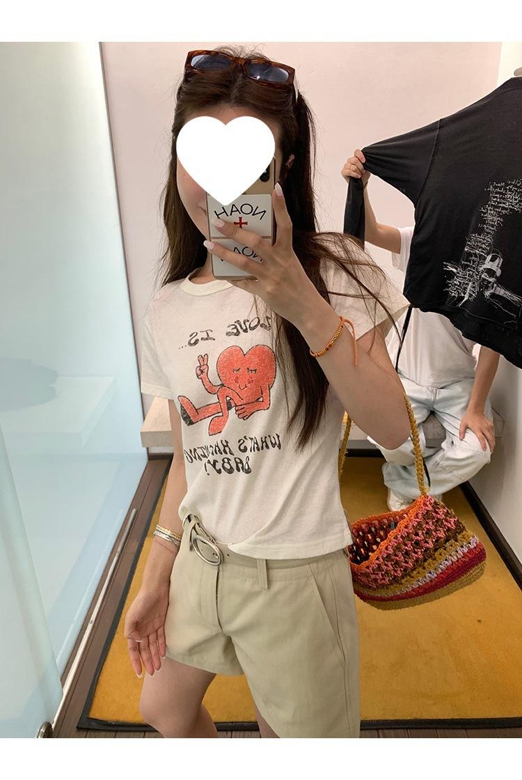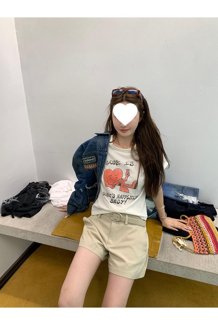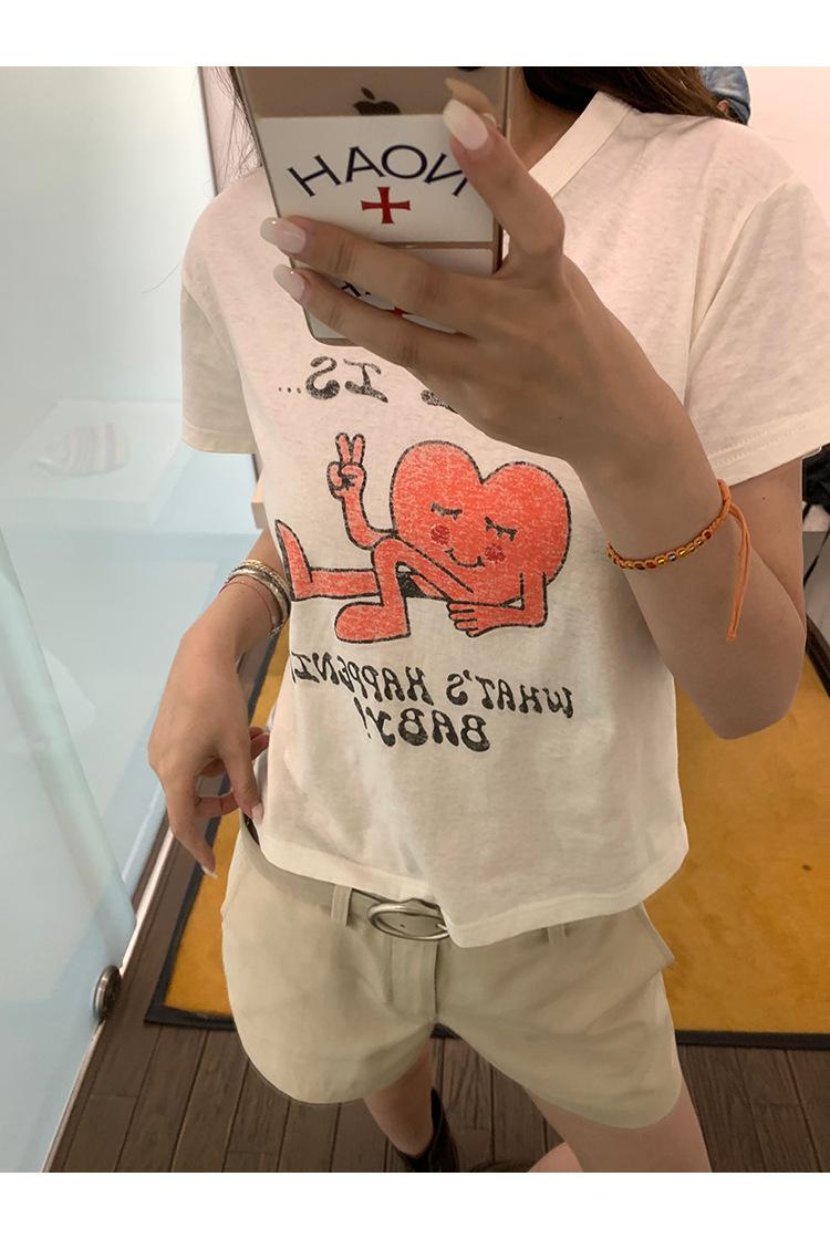 El frente presenta un patrón de hombrecito retro americano en forma de corazón