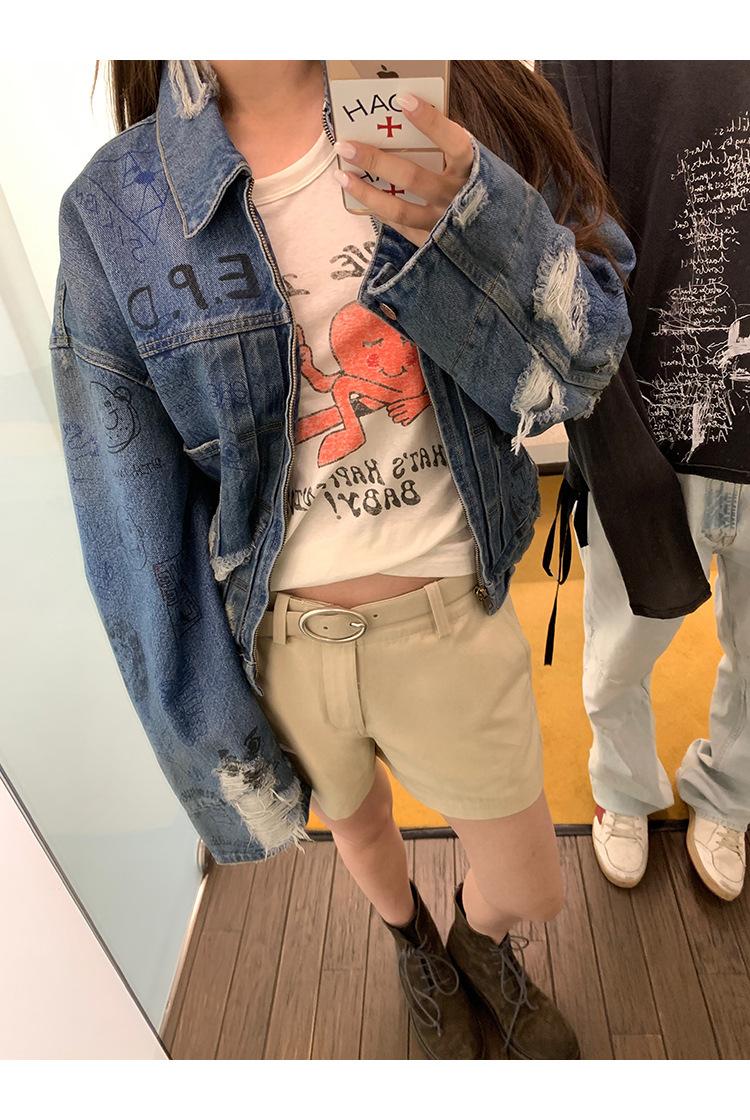 El cuerpo presenta estampados de letras de grafiti amarillas y estampados de grafiti negros desgastados.