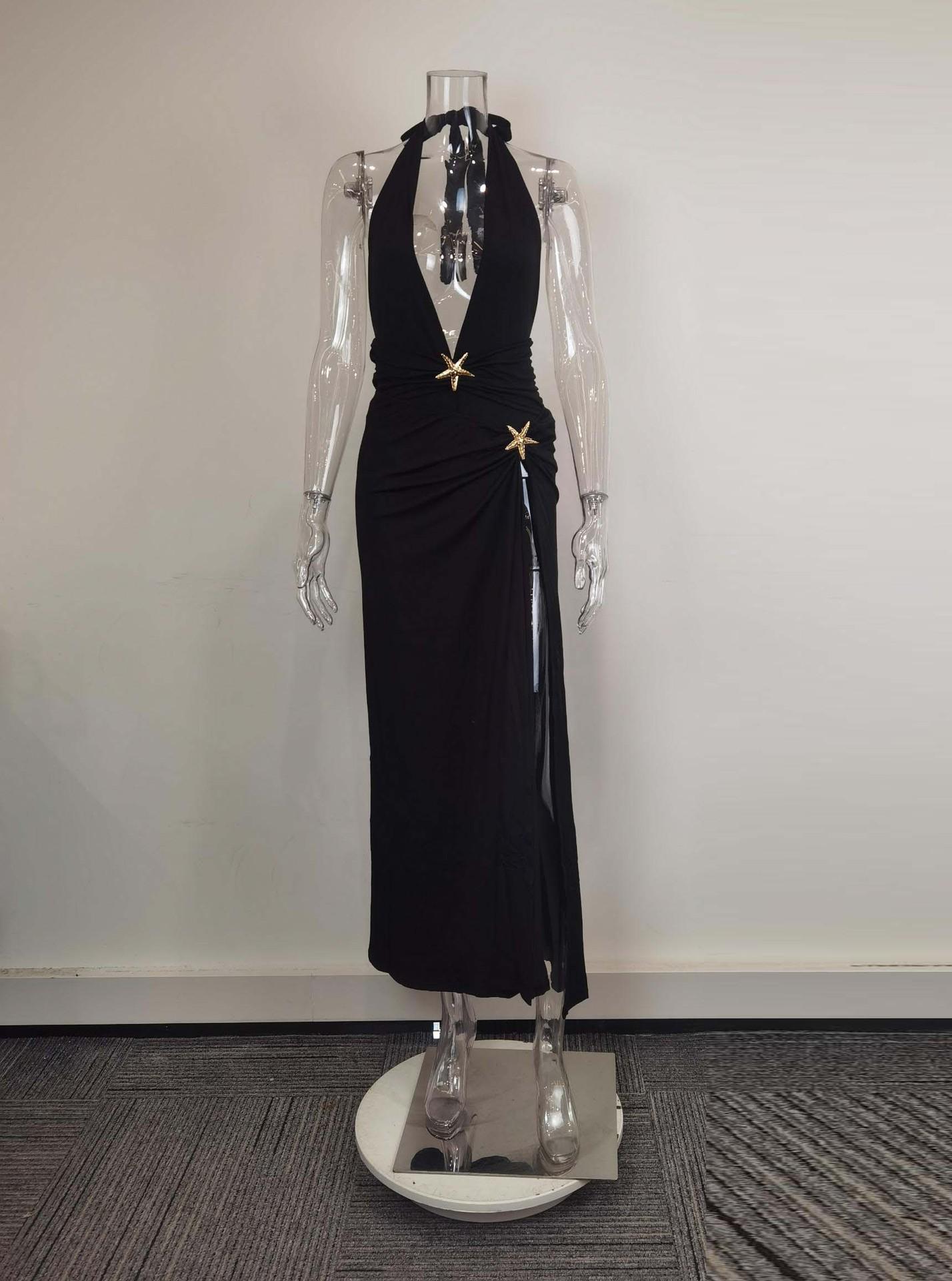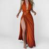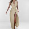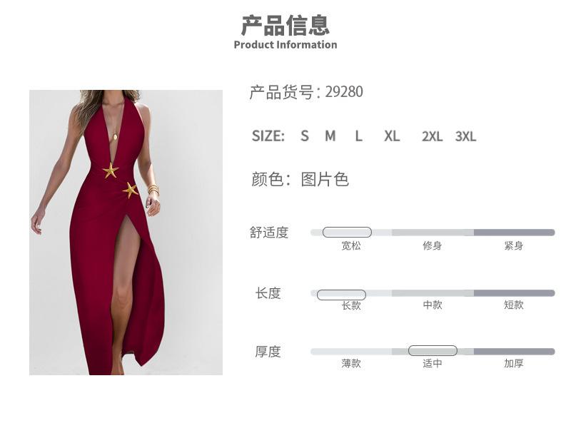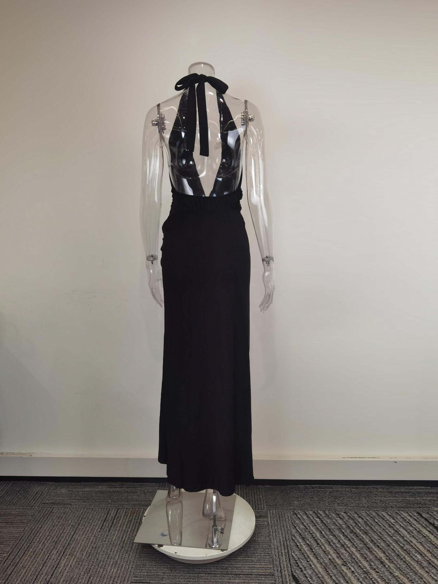 Compra Conjunto de dos piezas para mujer estilo vacacional europeo y americano 2025, falda sexy con abertura, cuello sexy, top sin espalda, traje para mujer al por mayor en Joom.pro