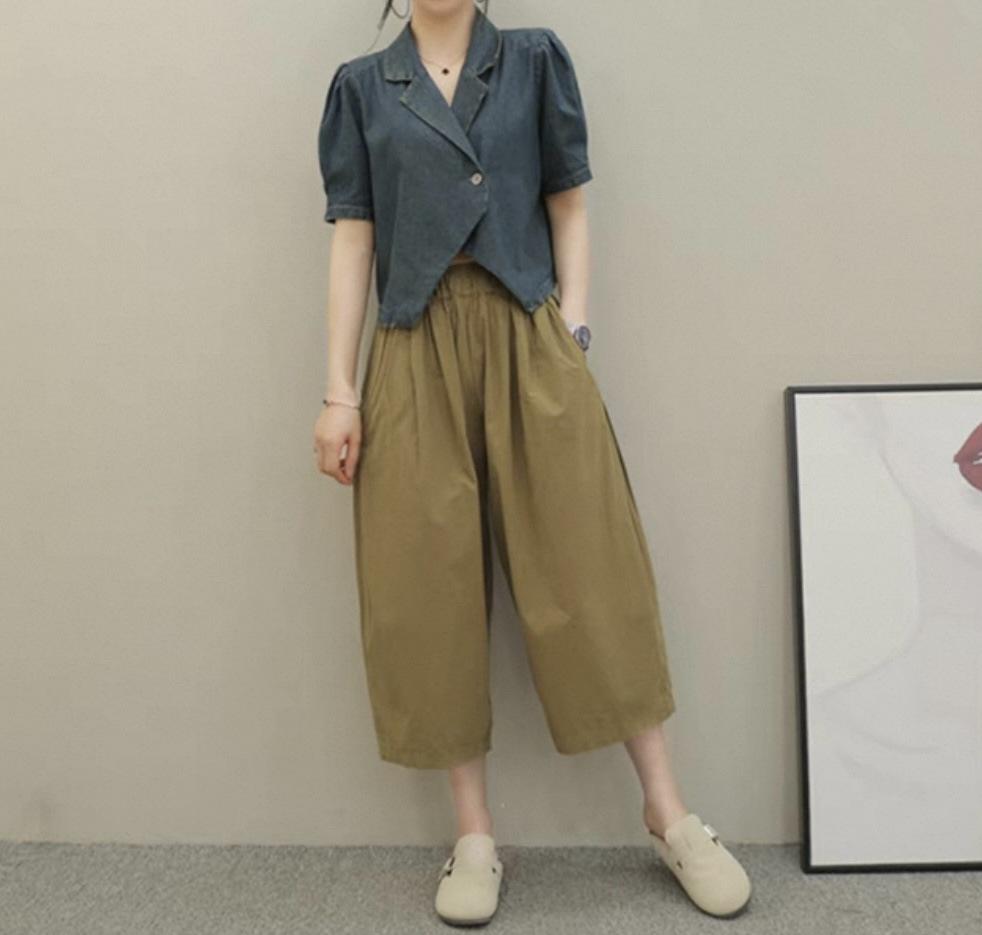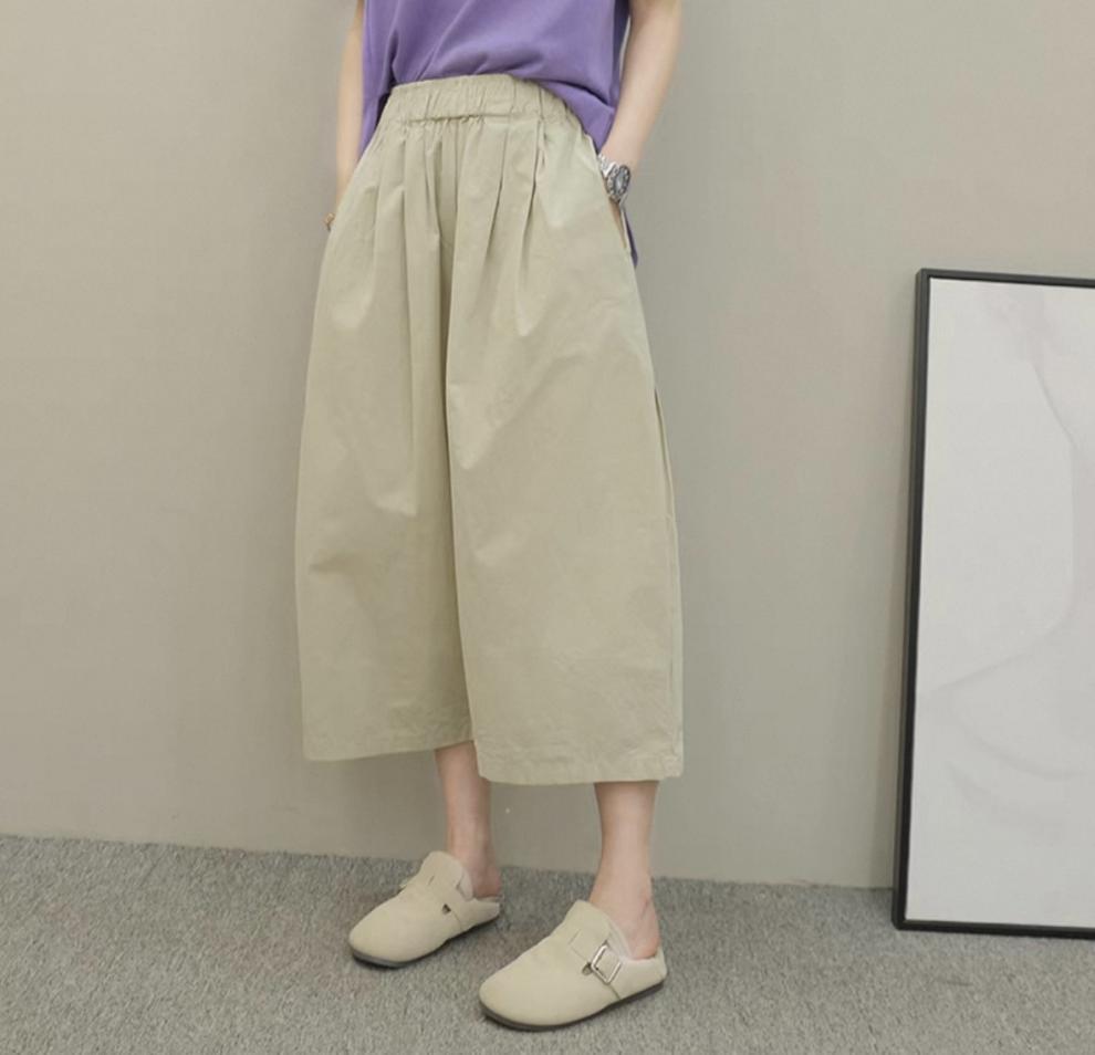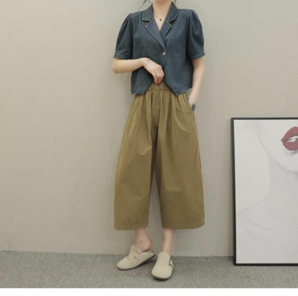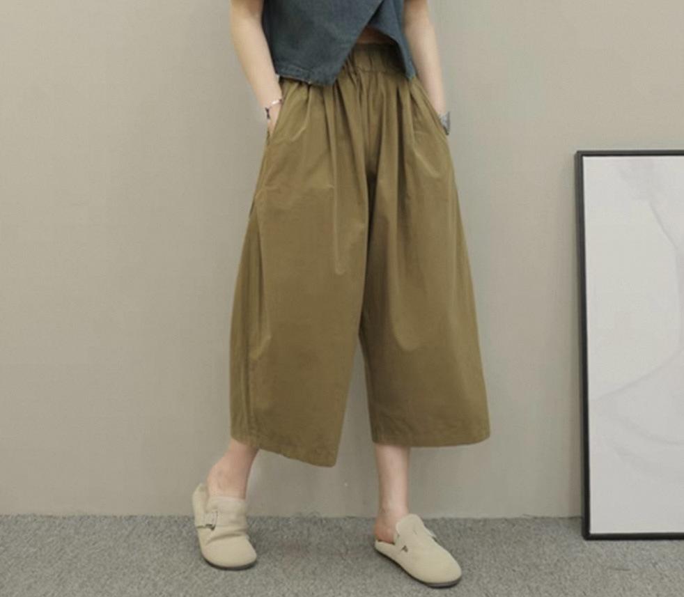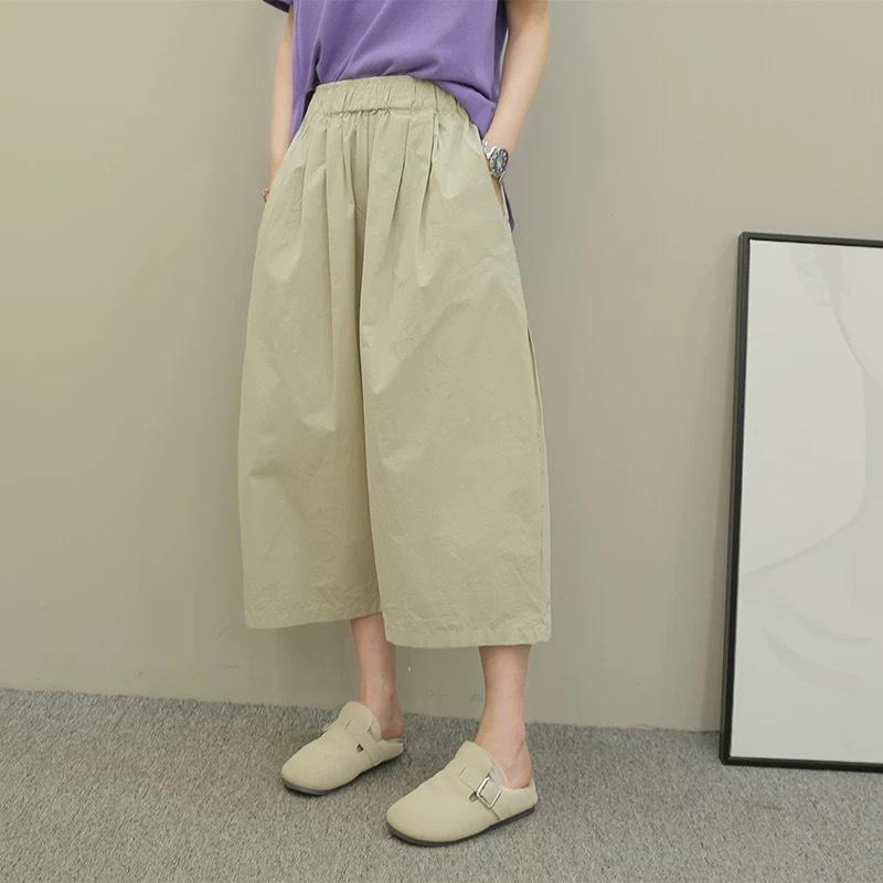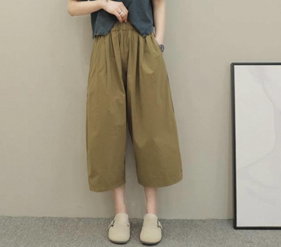 Compra 2025 Versátiles Algodón Talla Grande Cintura Alta Rectos Casuales Plátano Pierna Ancha Pantalones Sueltos Pierna Grande Pantalones Recortados para Mujer al por mayor en Joom.pro