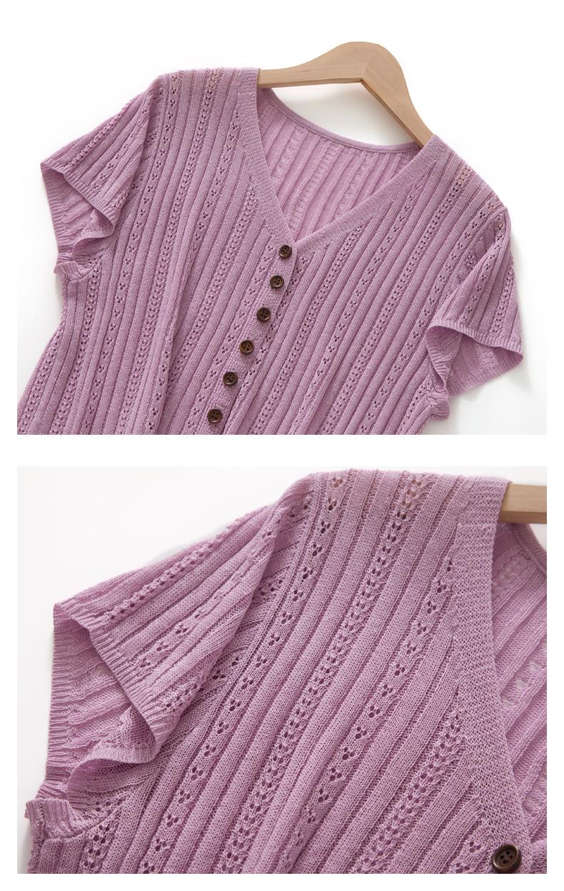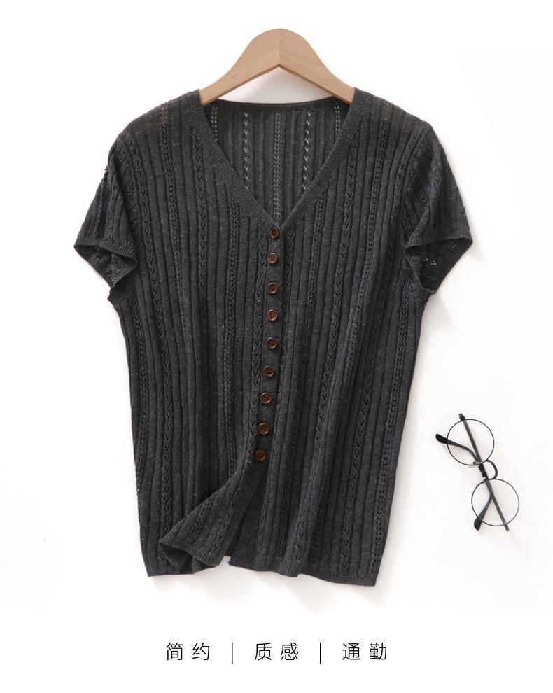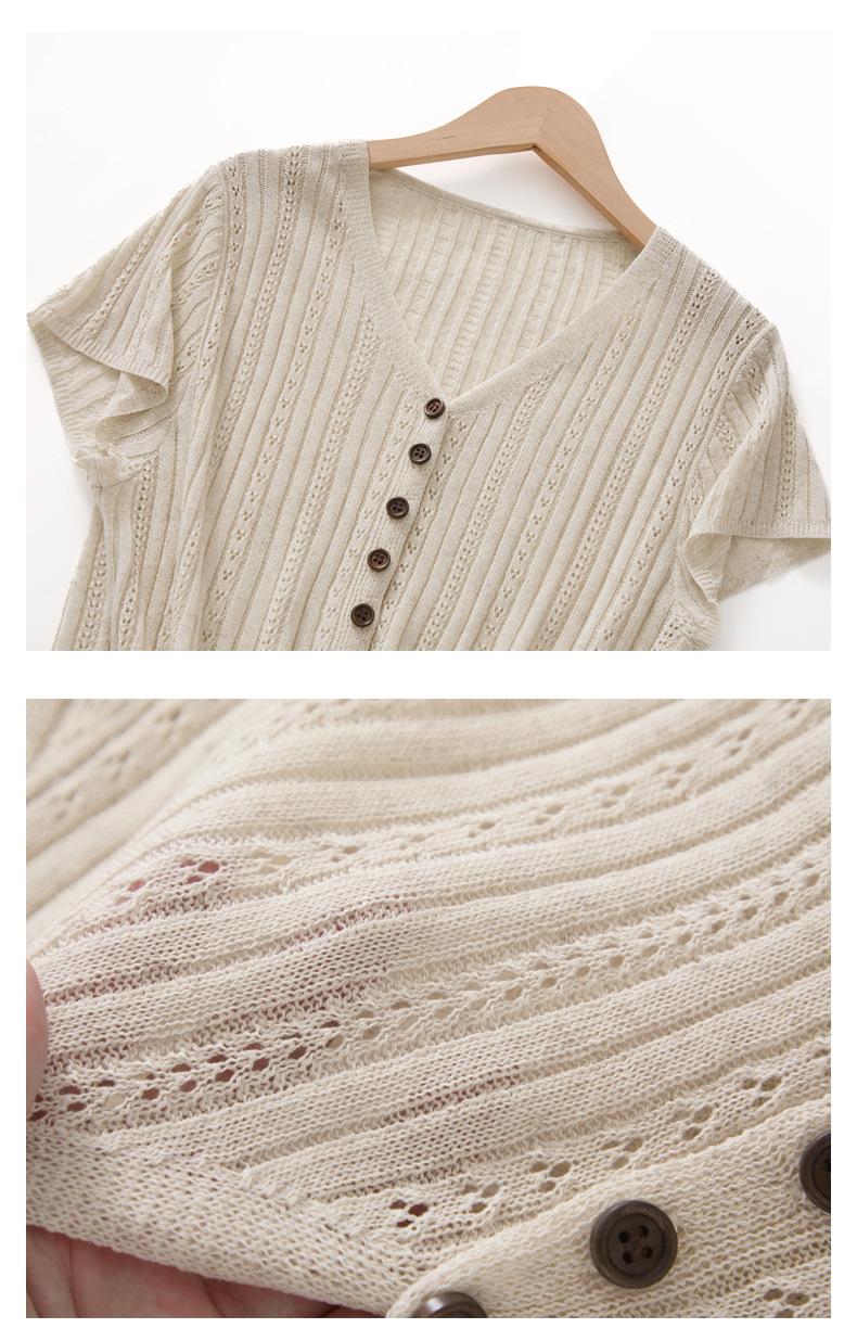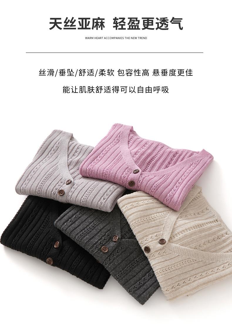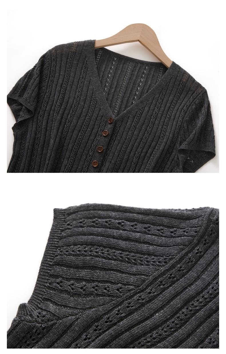 Cárdigan de Punto de Verano Nuevo 2025 de Lino Tencel con Cuello en V y Manga Corta para Mujer, Color Puro, Calado, Holgado, Versátil