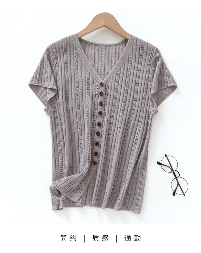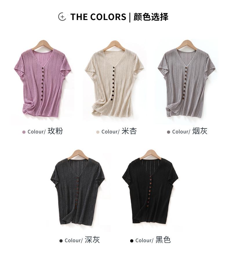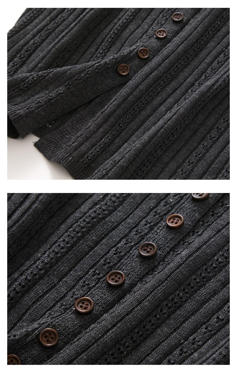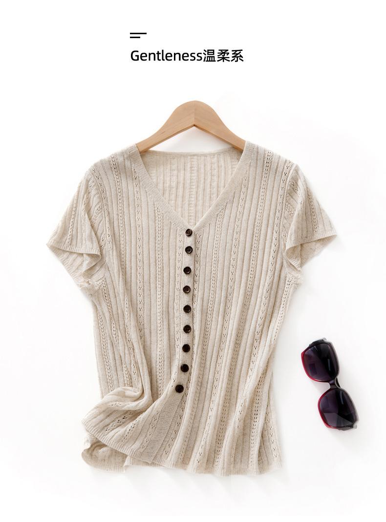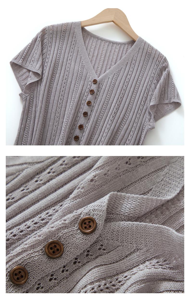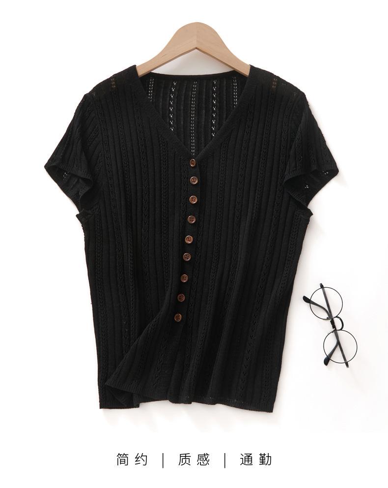 Cárdigan de Punto de Verano Nuevo 2025 de Lino Tencel con Cuello en V y Manga Corta para Mujer, Color Puro, Calado, Holgado, Versátil