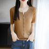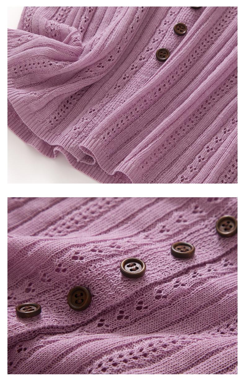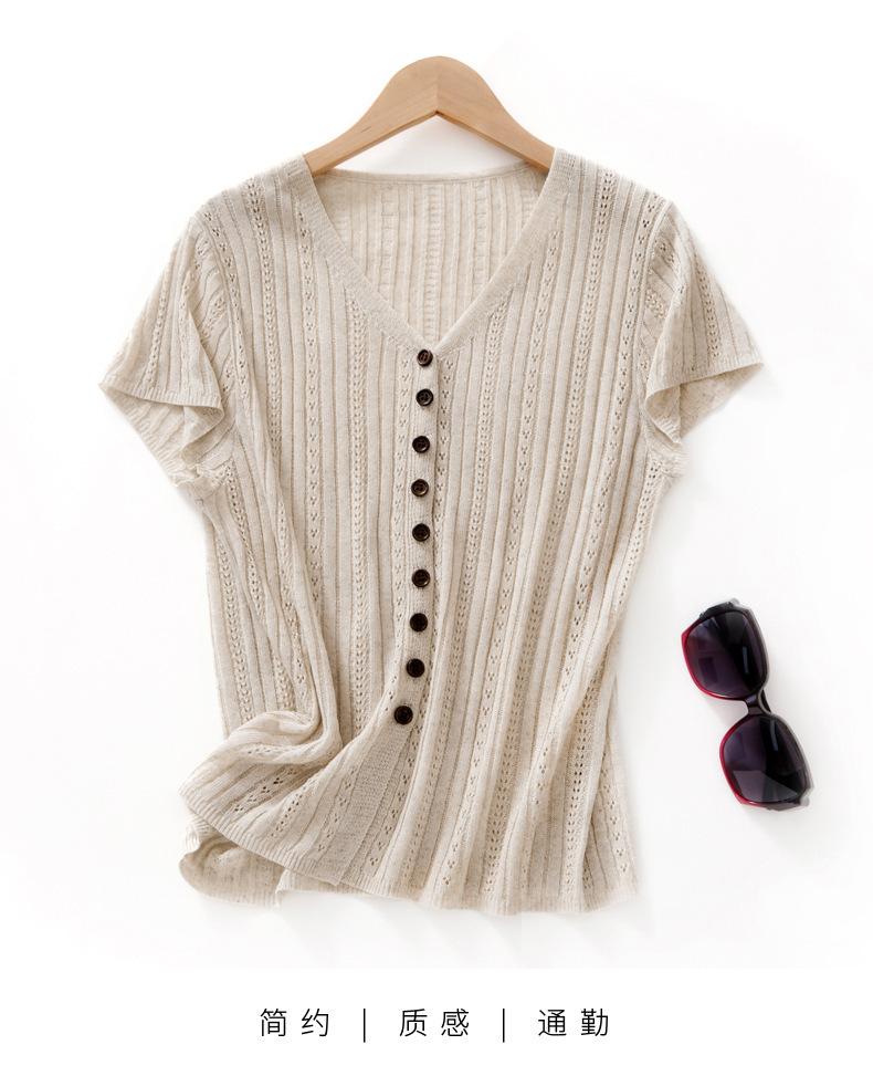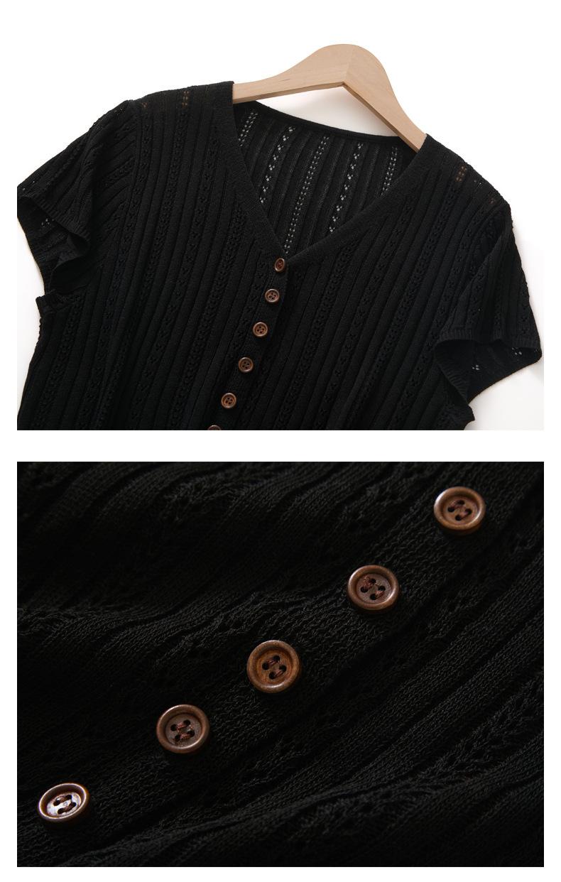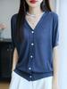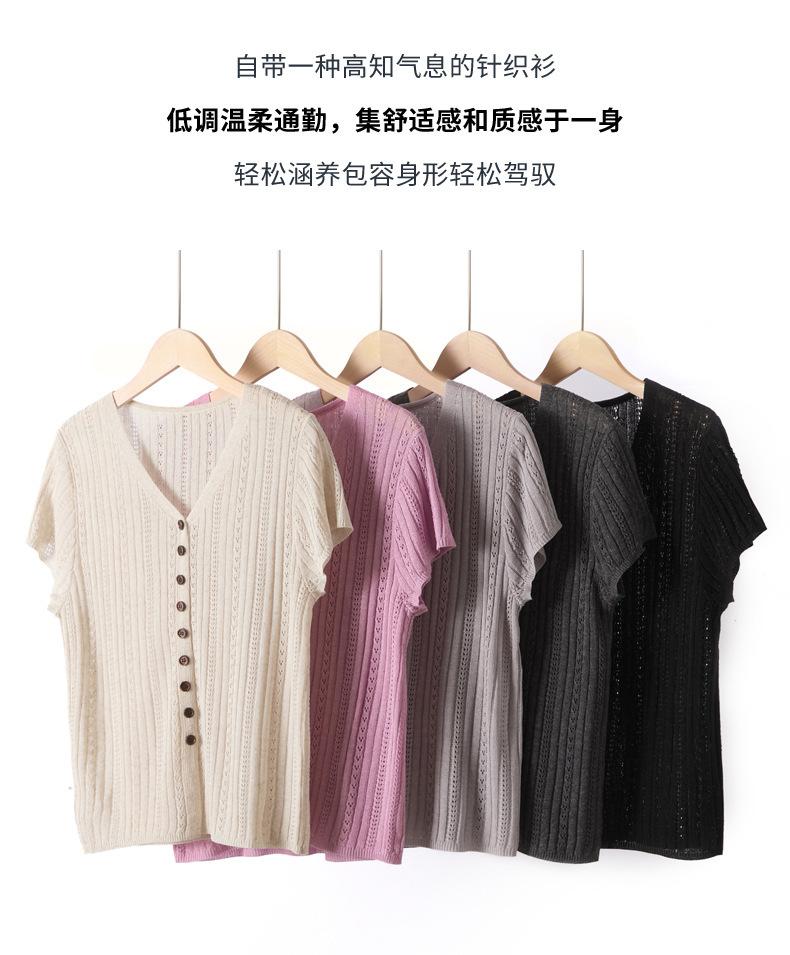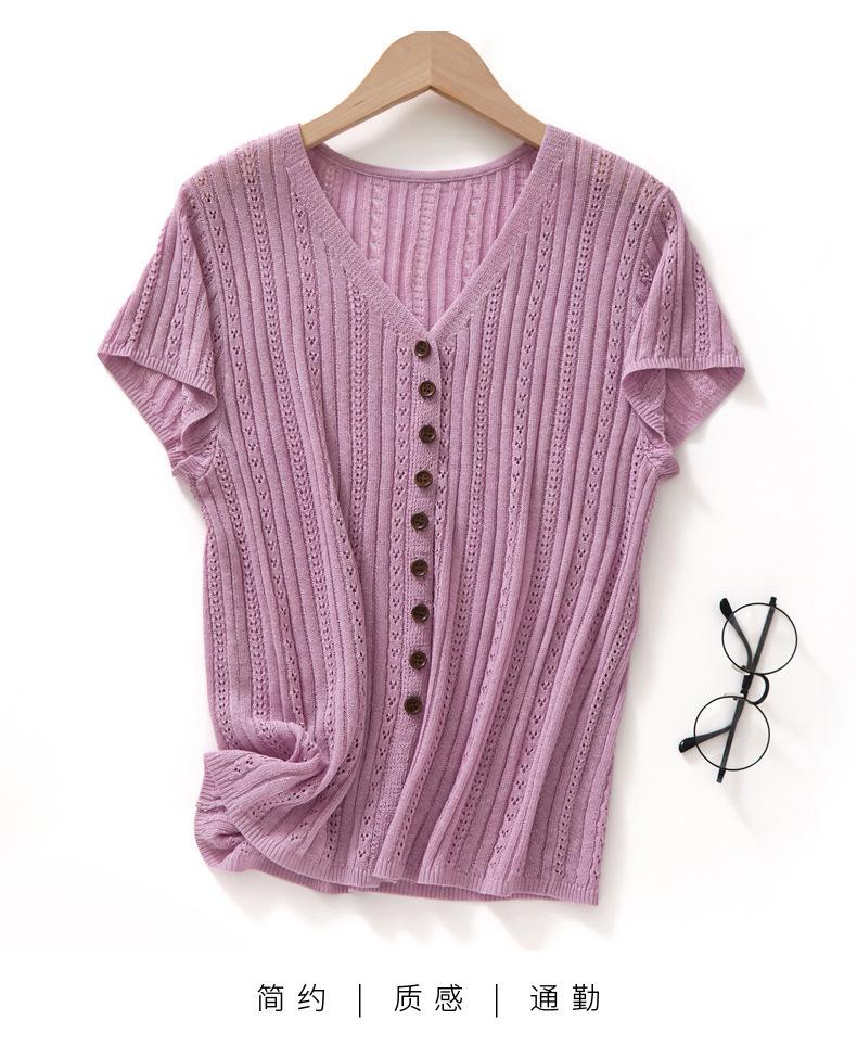 Cárdigan de Punto de Verano Nuevo 2025 de Lino Tencel con Cuello en V y Manga Corta para Mujer, Color Puro, Calado, Holgado, Versátil