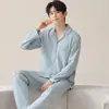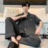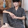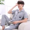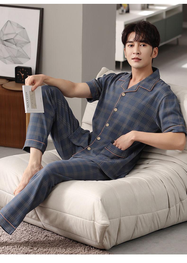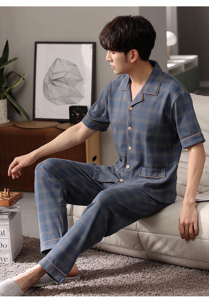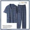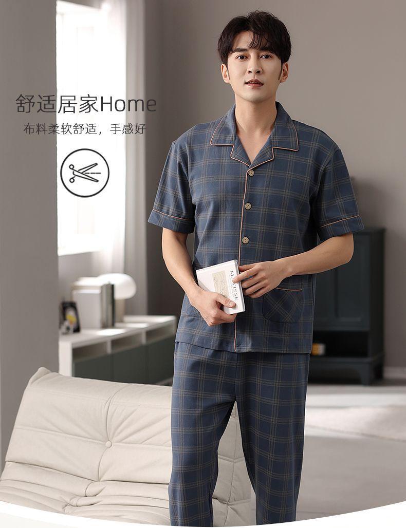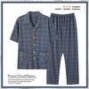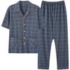 Pijama de Verano de Algodón para Hombre de Manga Corta Pantalones Ropa de Exterior Talla Extra Cuadros Cárdigan Delgado Sencillo Casual Ropa para el Hogar