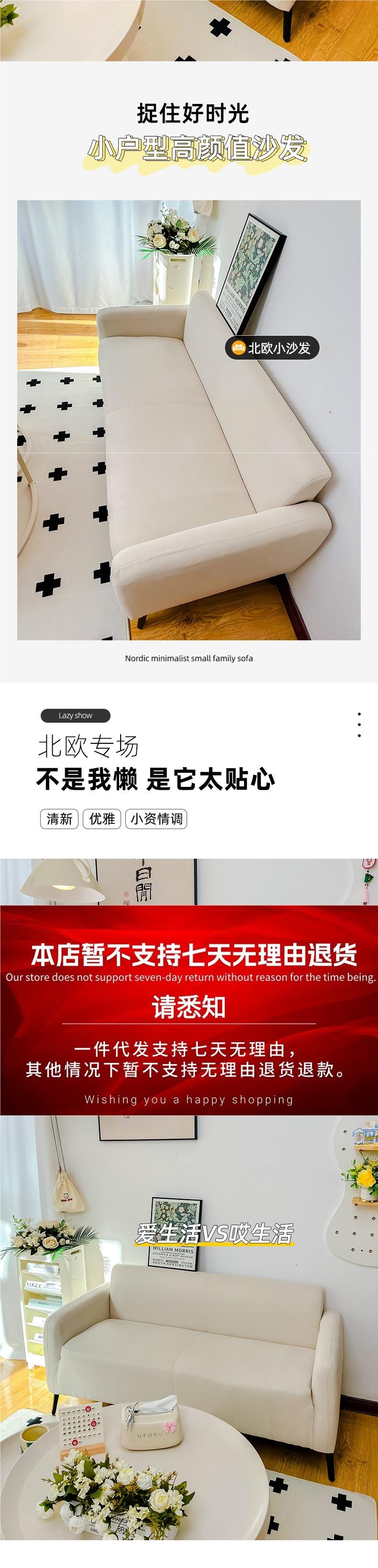 Sofá Sala de Estar de Apartamento Pequeño Simple Casa de Alquiler Dormitorio Apartamento Área de Descanso Recepción Doble Tela Perezoso Fuente de Sueños