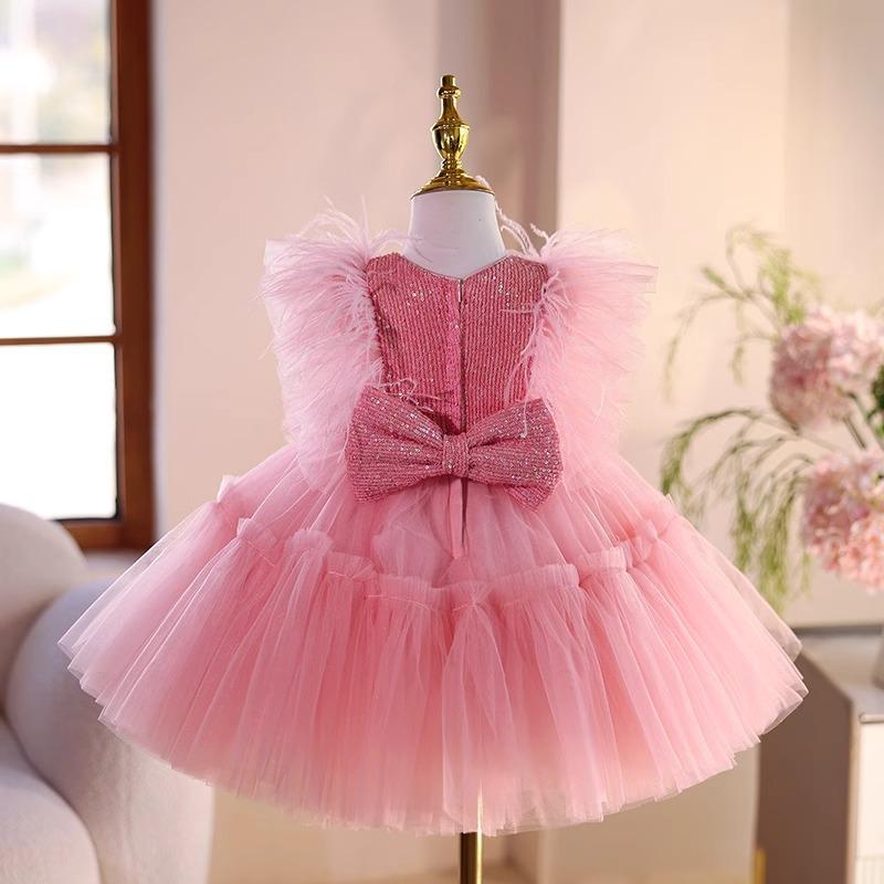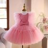 Vestido de Anfitriona Fiesta de Cumpleaños de Niña Vestido de Princesa de Un Año Hilo Esponjoso para Tocar el Piano para Niños